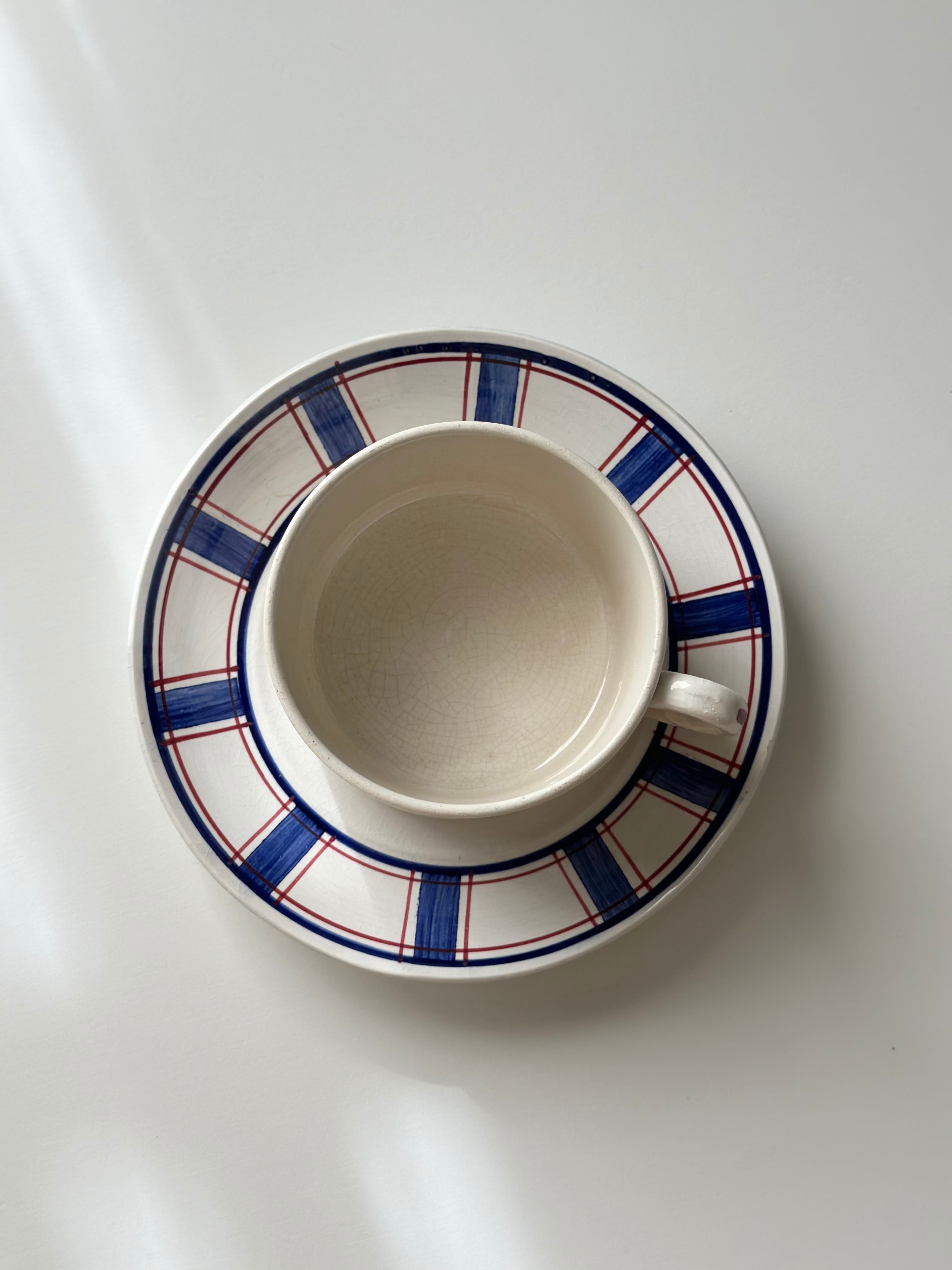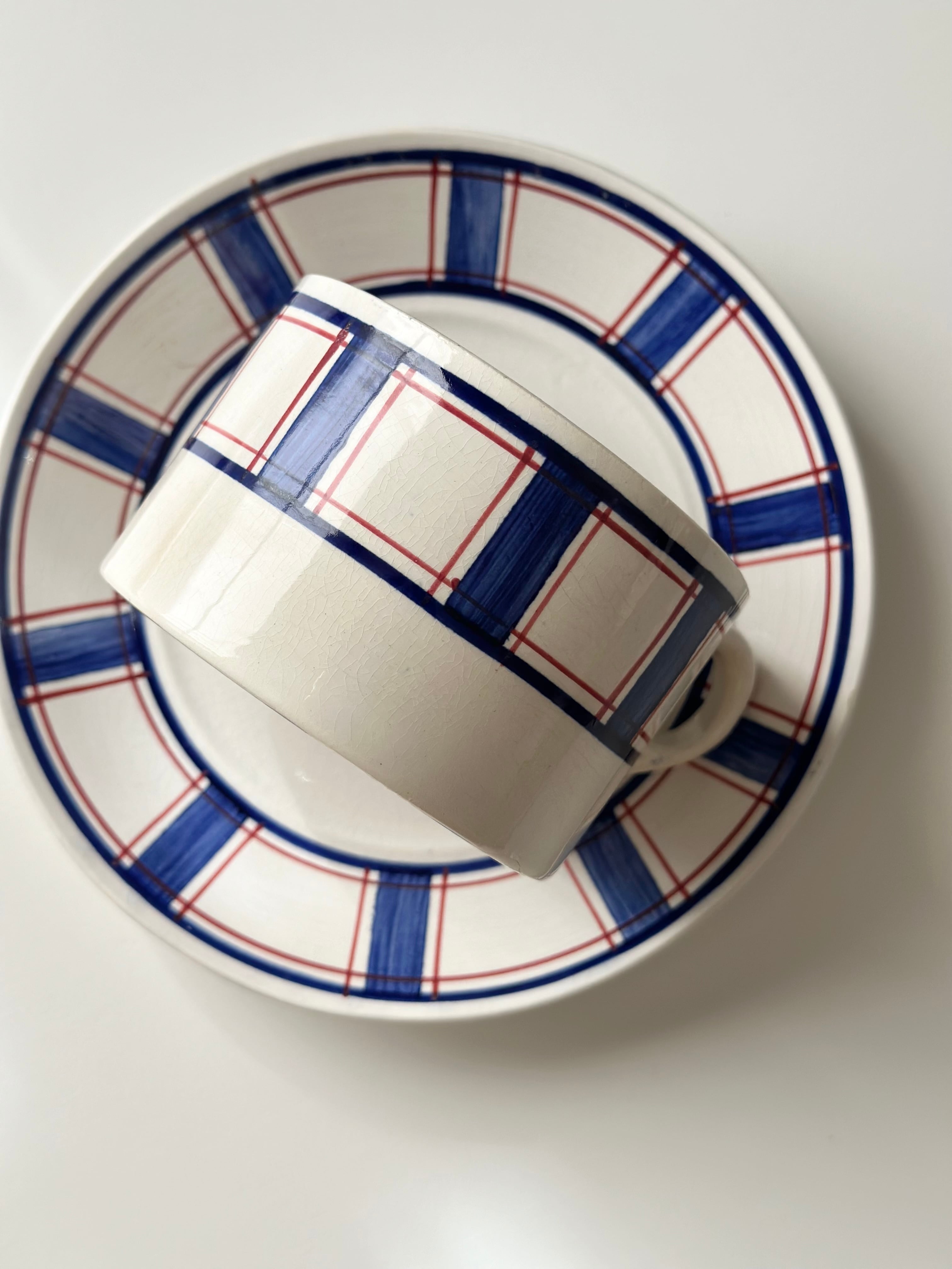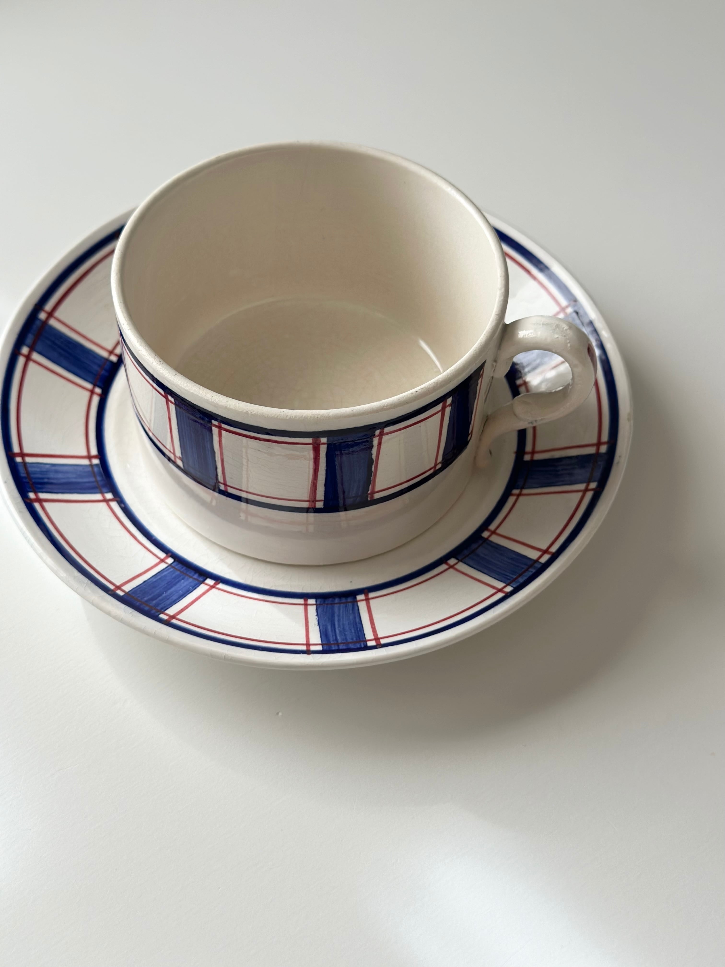Sarreguemines サルグミンヌ / “ECOSSE” タータン柄のカップ&ソーサー b