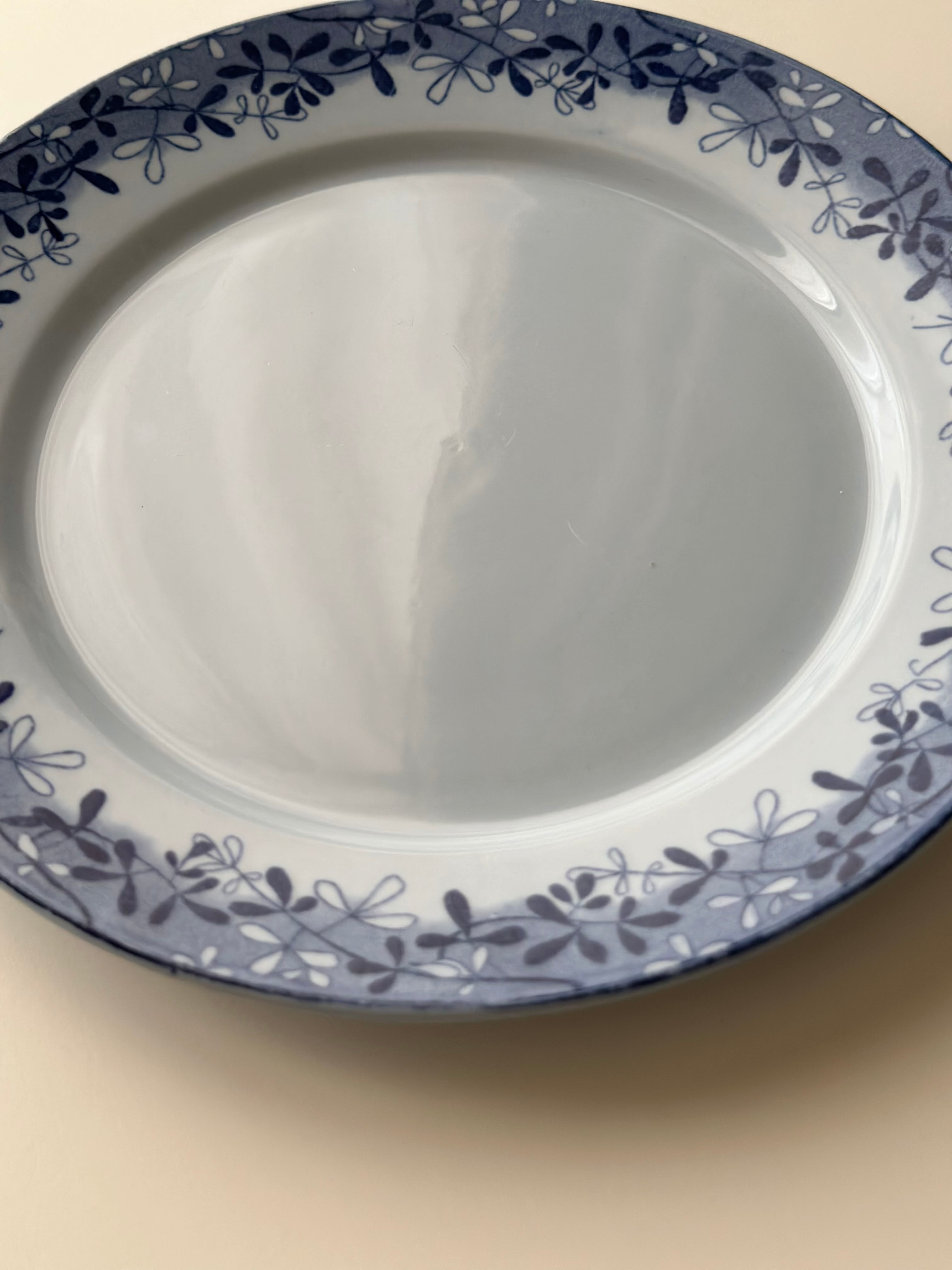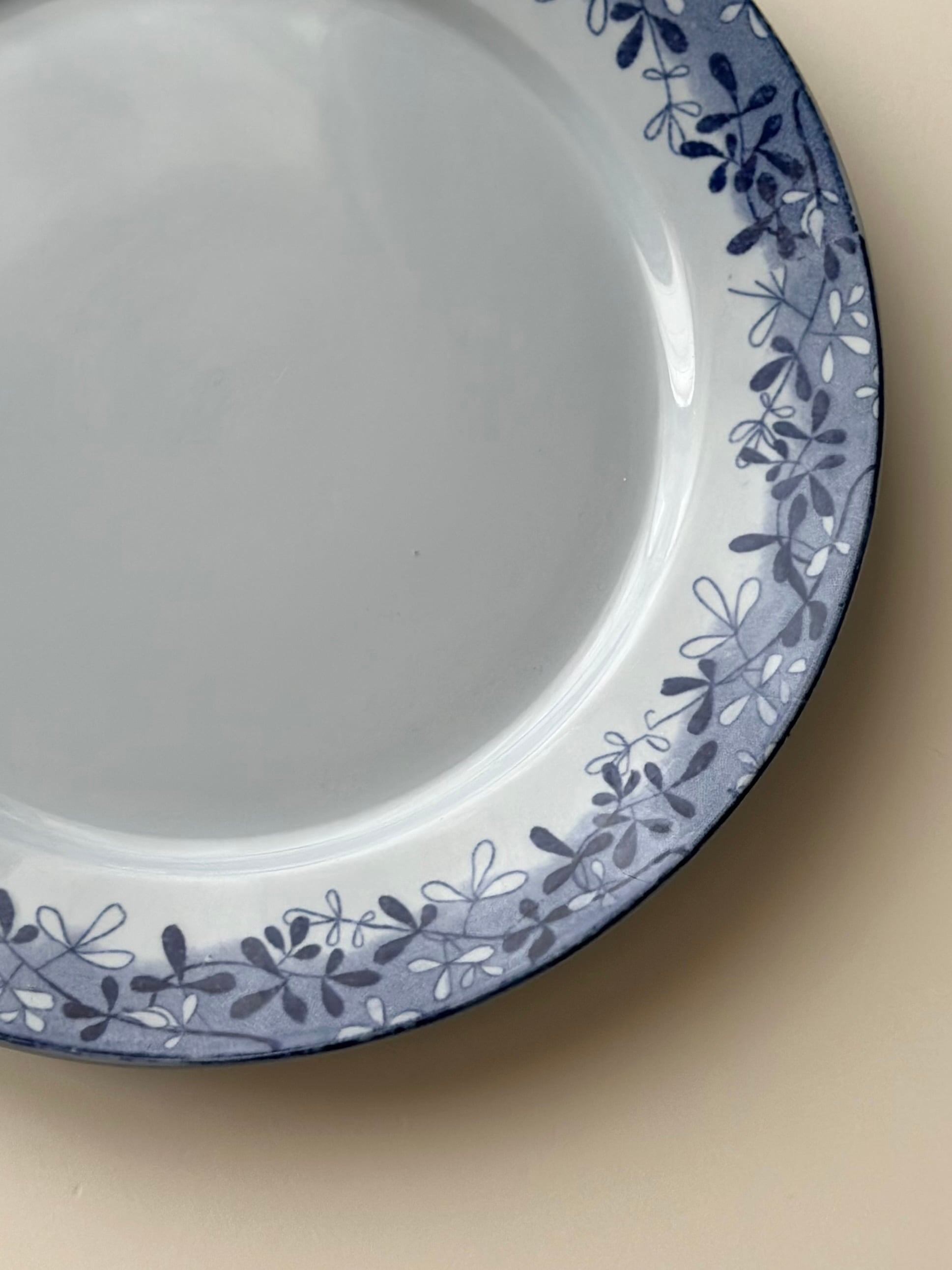 淡く優しいブルーグレーのベースに、濃淡のあるインディゴブルーで表現された葉模様がリズミカルに並び、一風変わった雰囲気に。