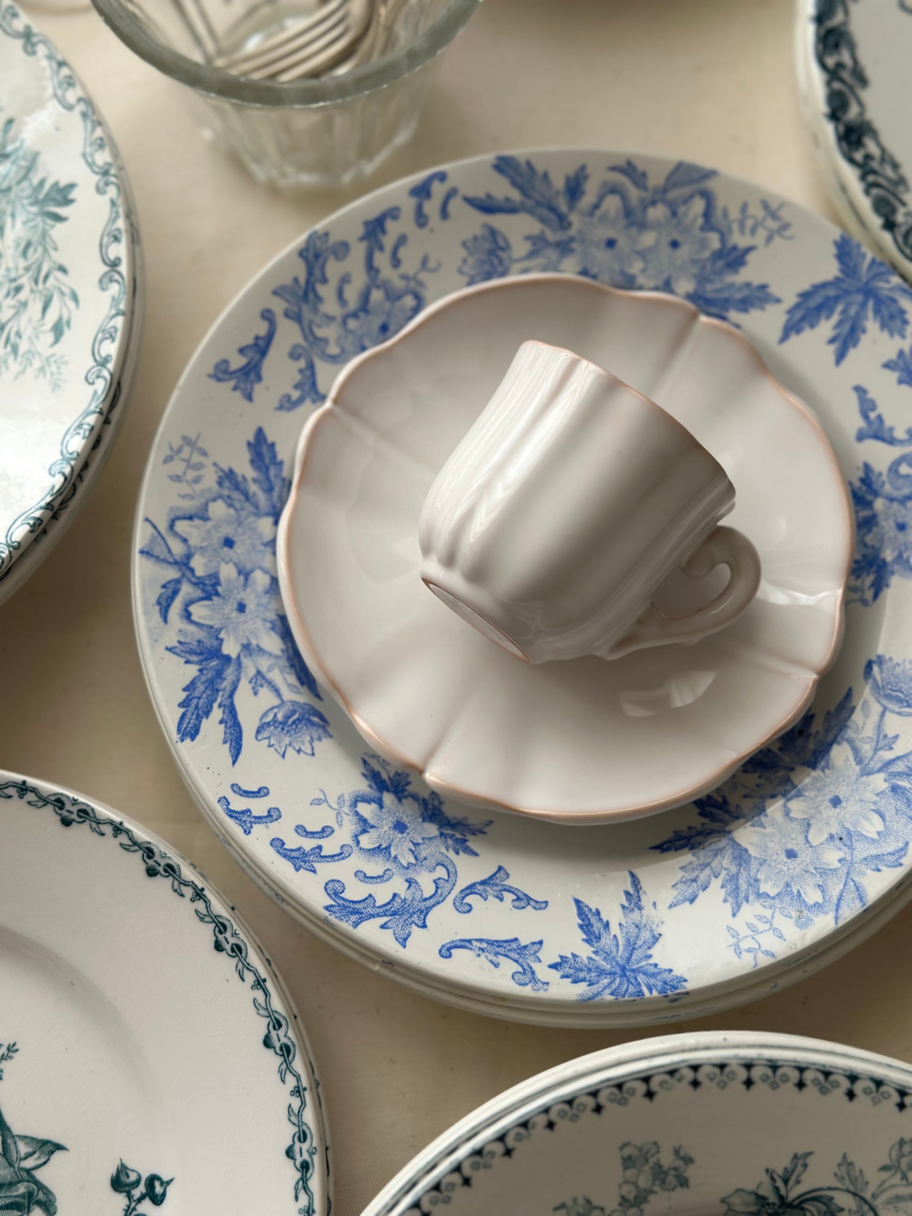 Gien ジアン / 白釉の美しいデミタスカップ&ソーサー d