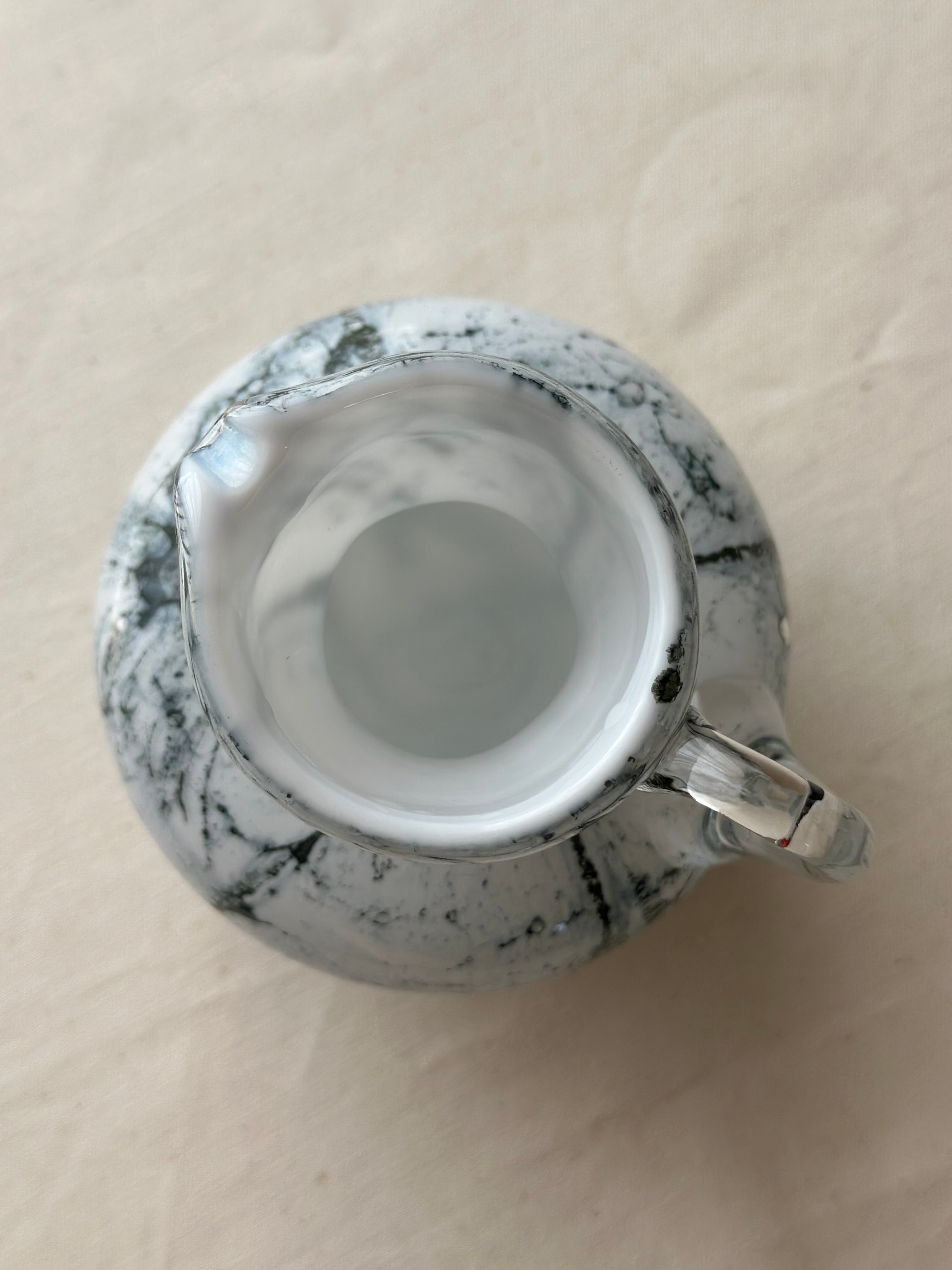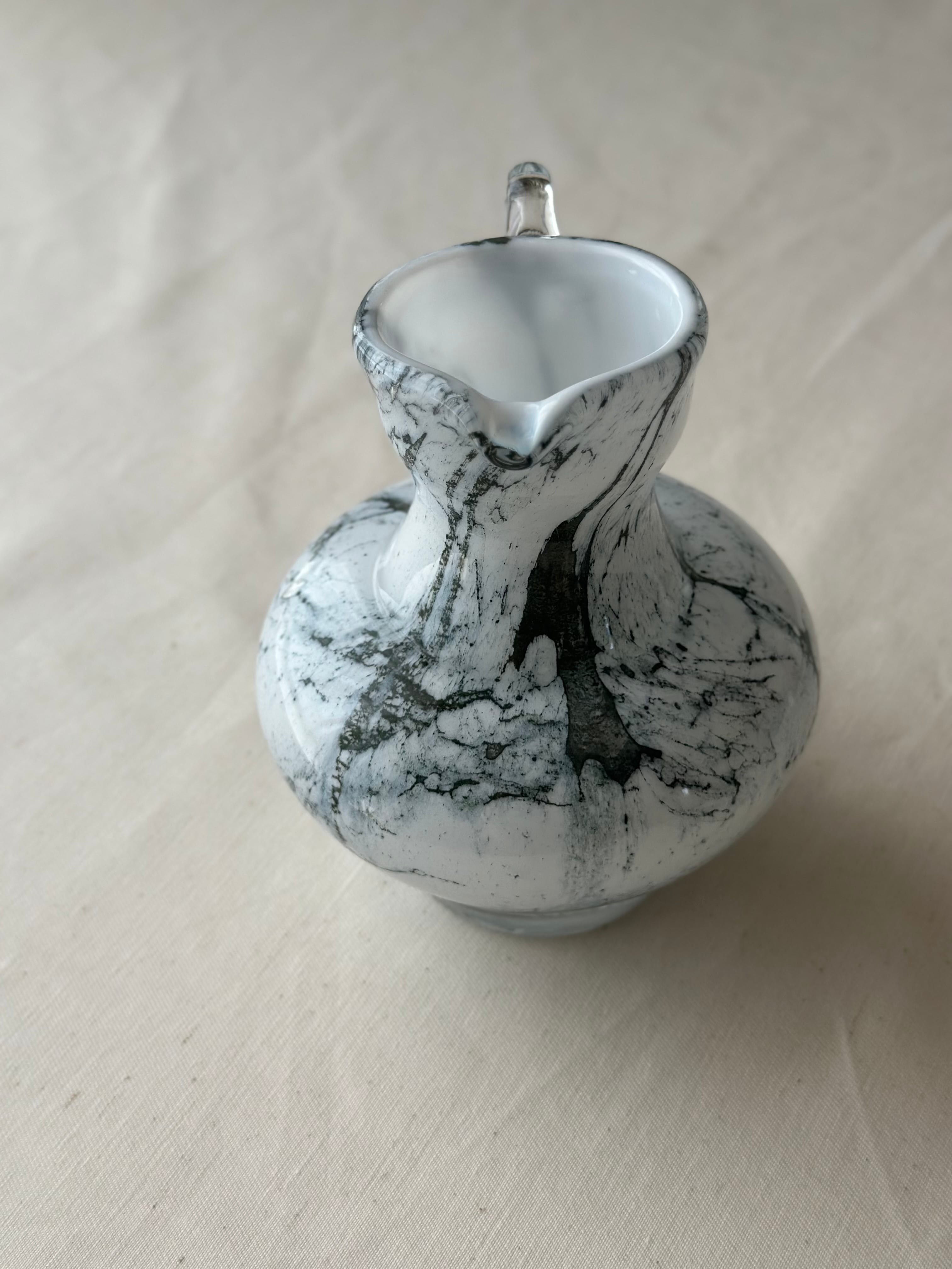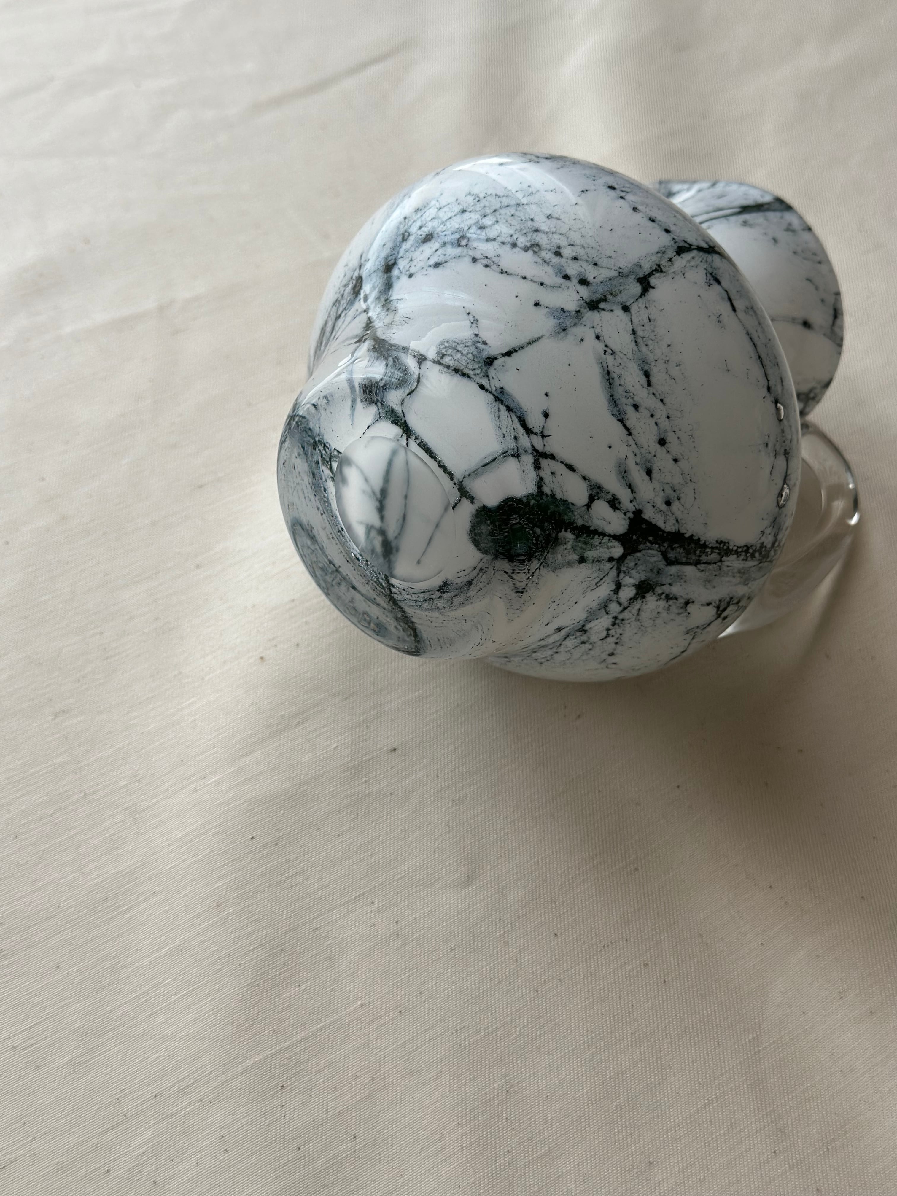 無垢な白に、グレーのマーブル模様が流れるように広がるヴィンテージガラスベース。