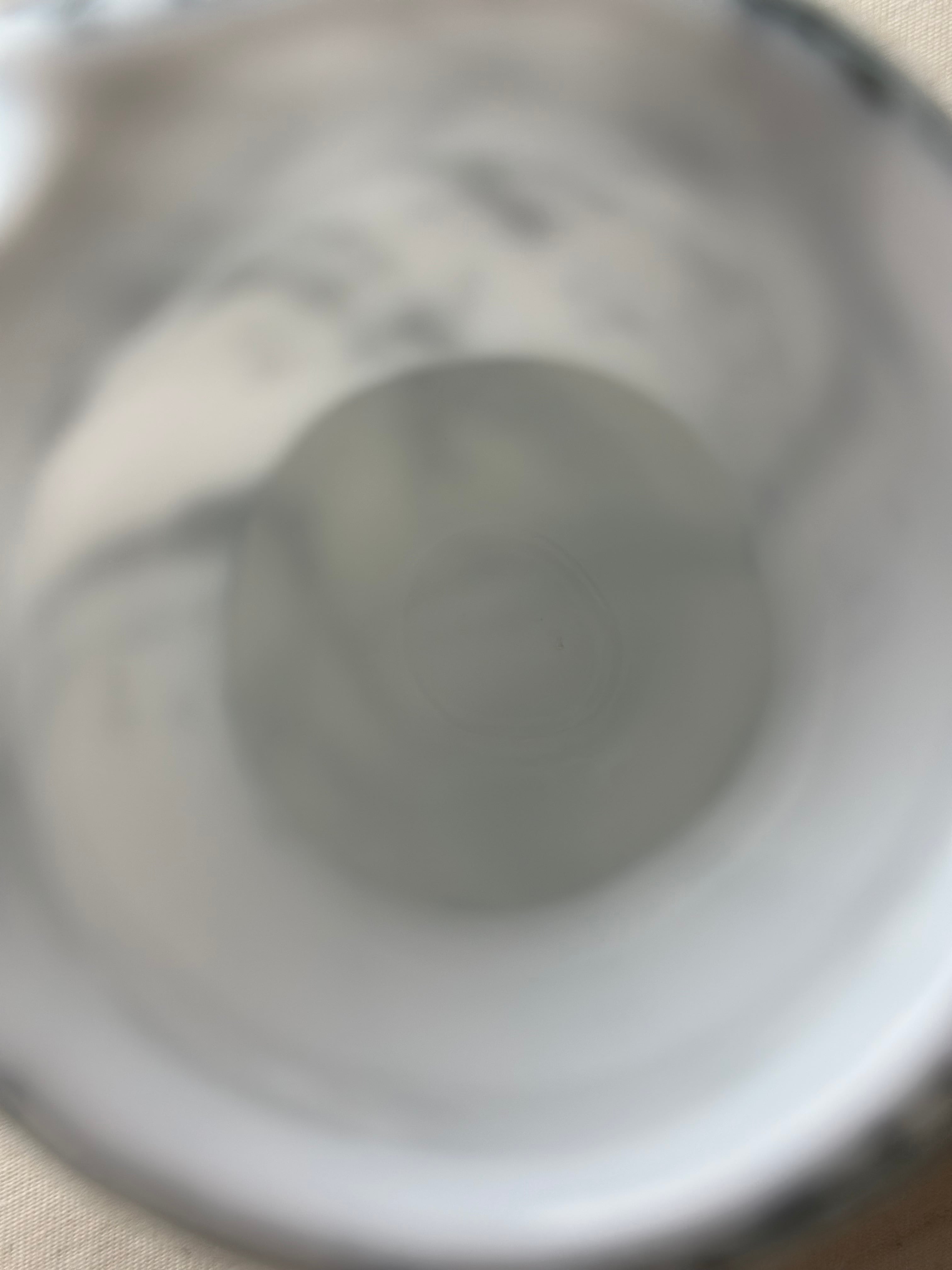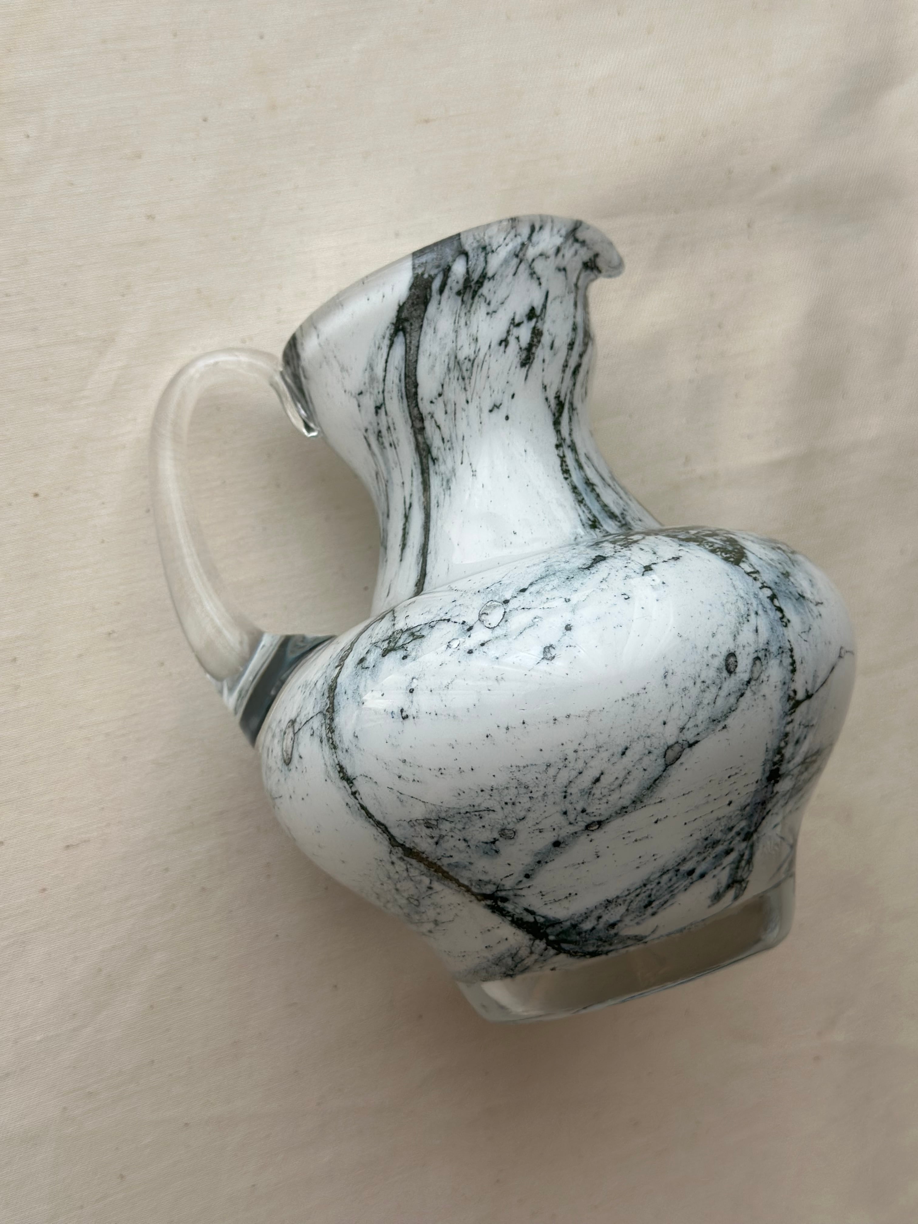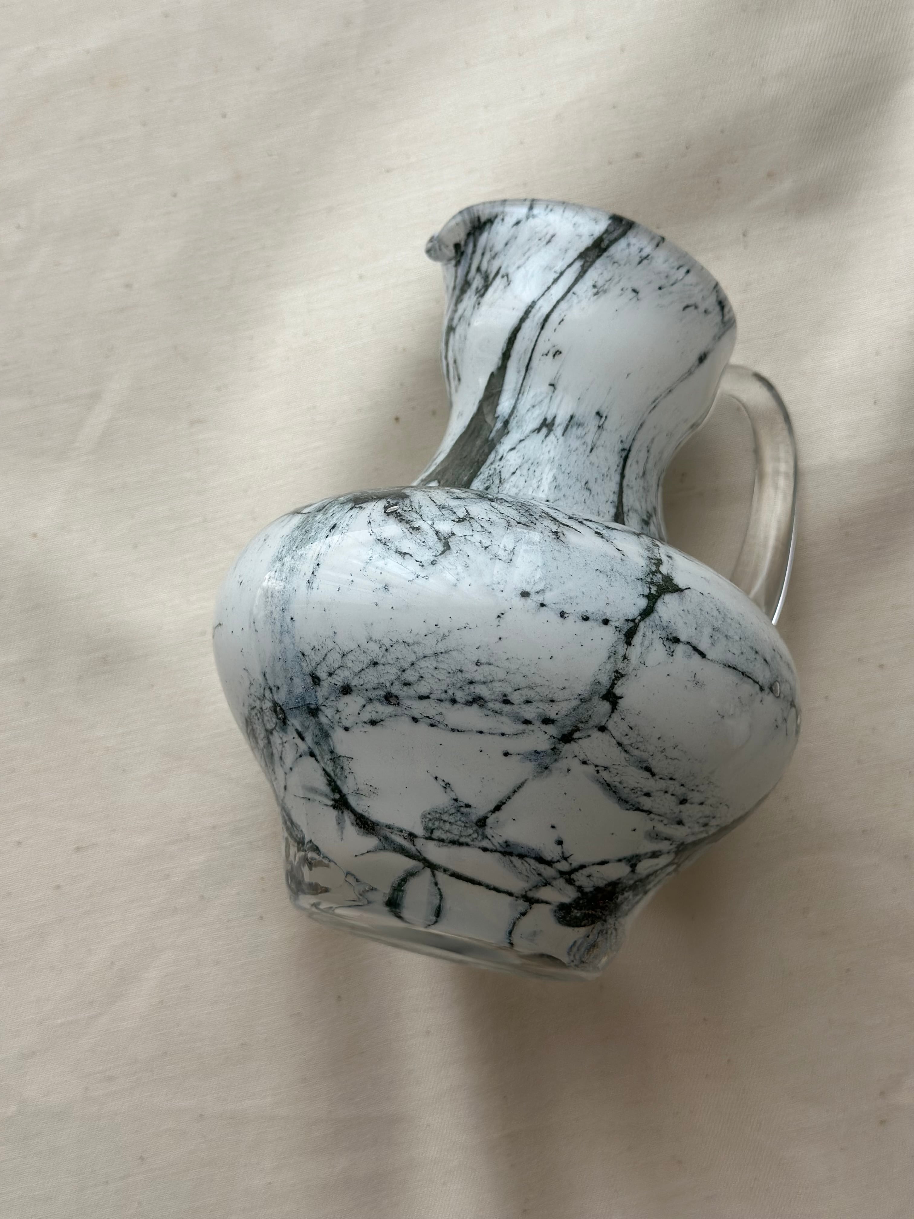 無垢な白に、グレーのマーブル模様が流れるように広がるヴィンテージガラスベース。