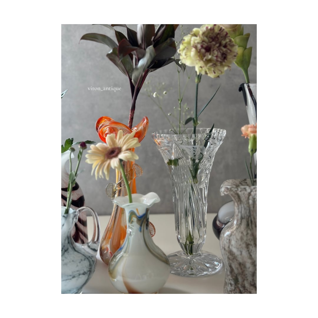 Italian vintage vase / カットガラスのフラワーベース h23.3cm