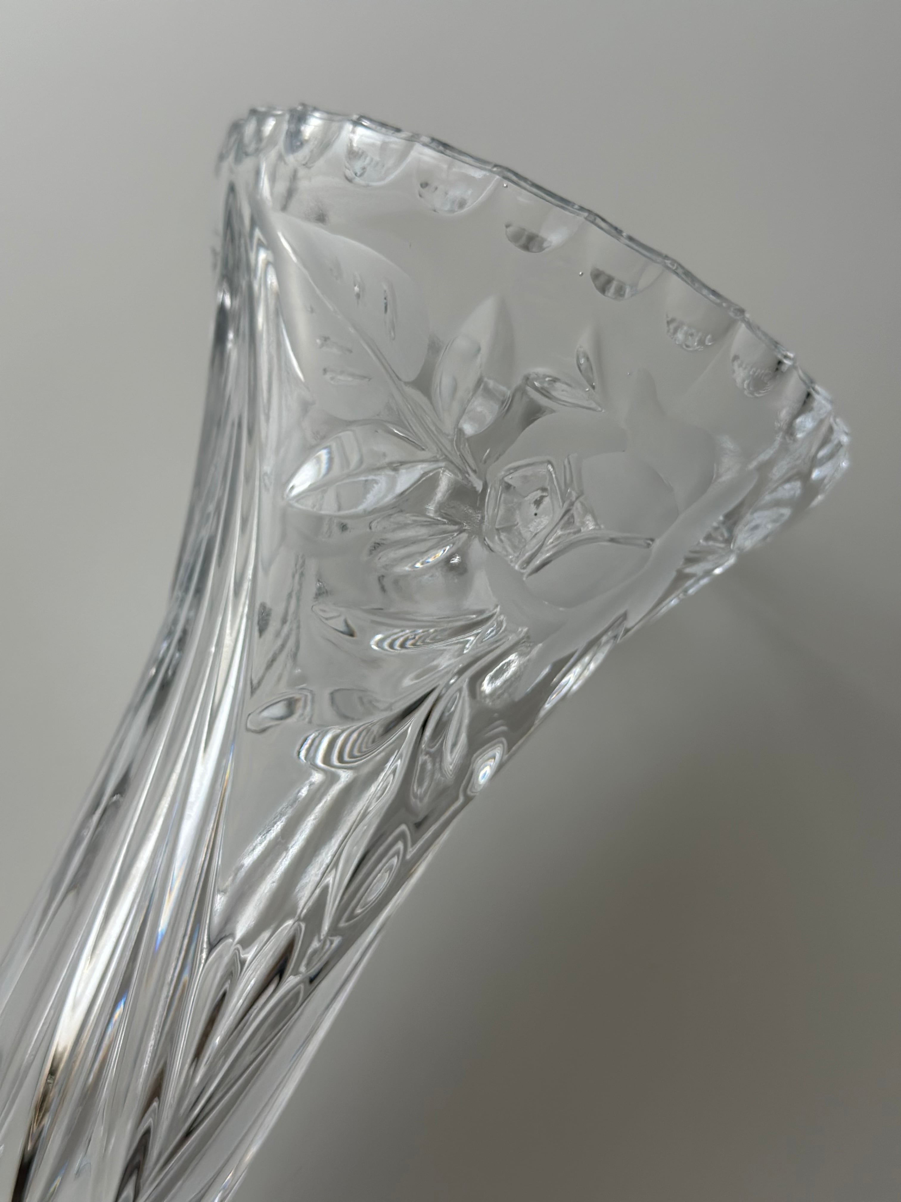 繊細なカットが施されたクリアガラスのフラワーベース。