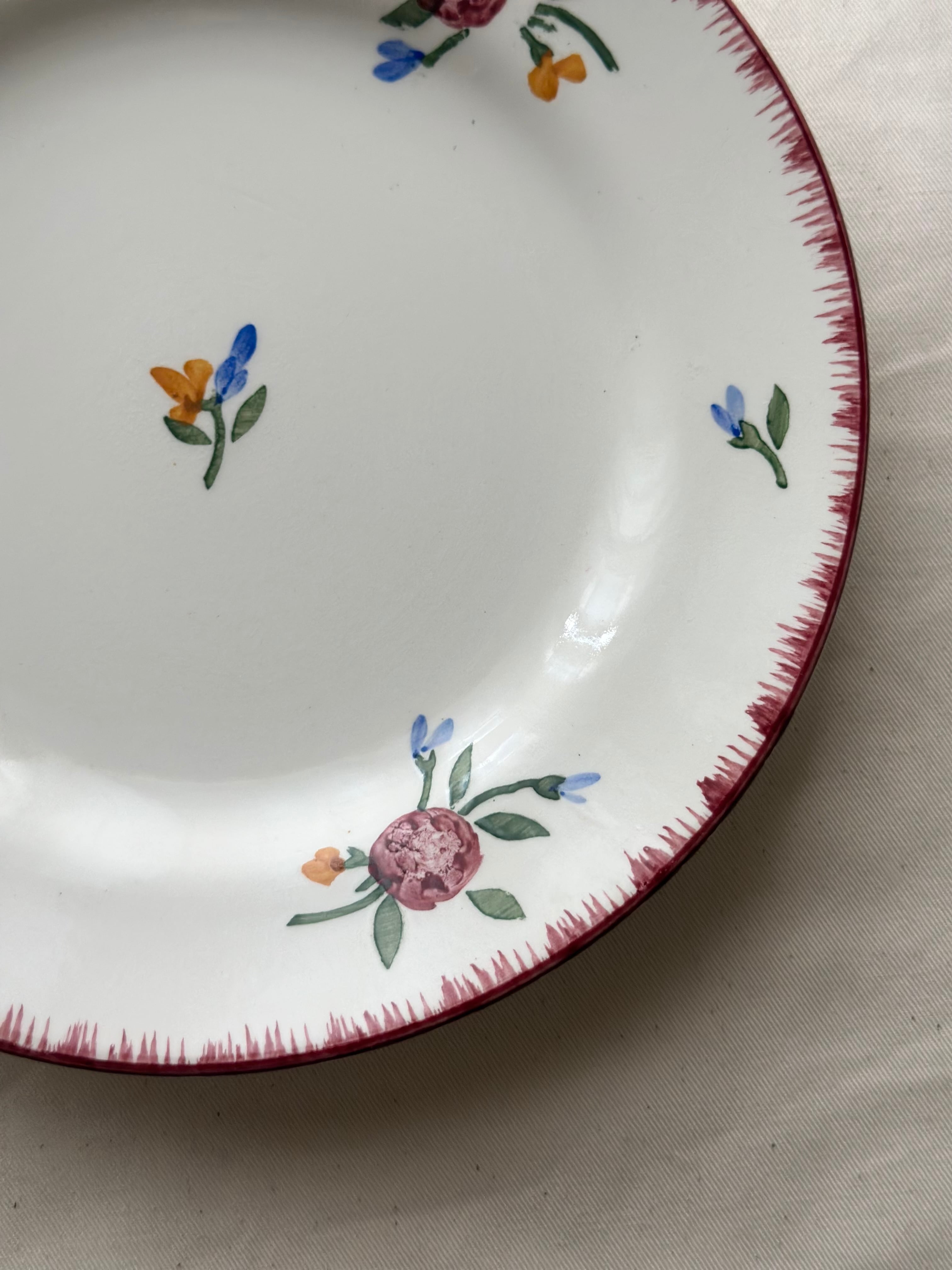 Sarreguemines サルグミンヌ / “DIDIER” 手書きの花模様 平皿プレート φ22.8cm (b)