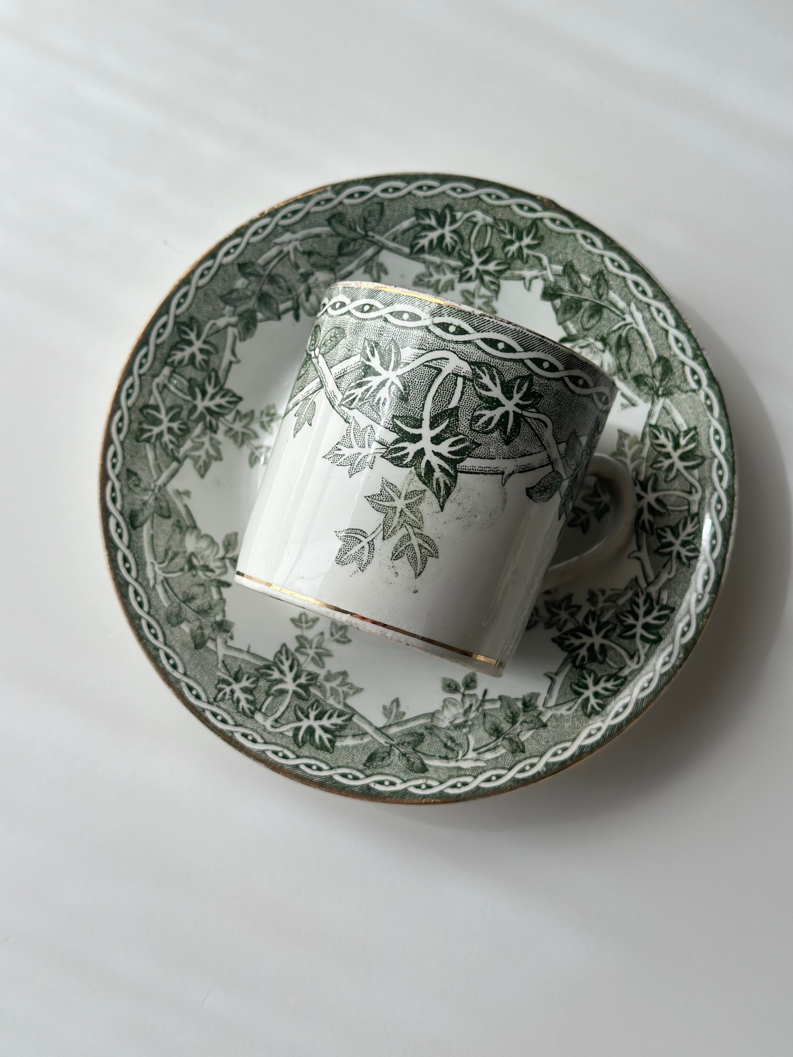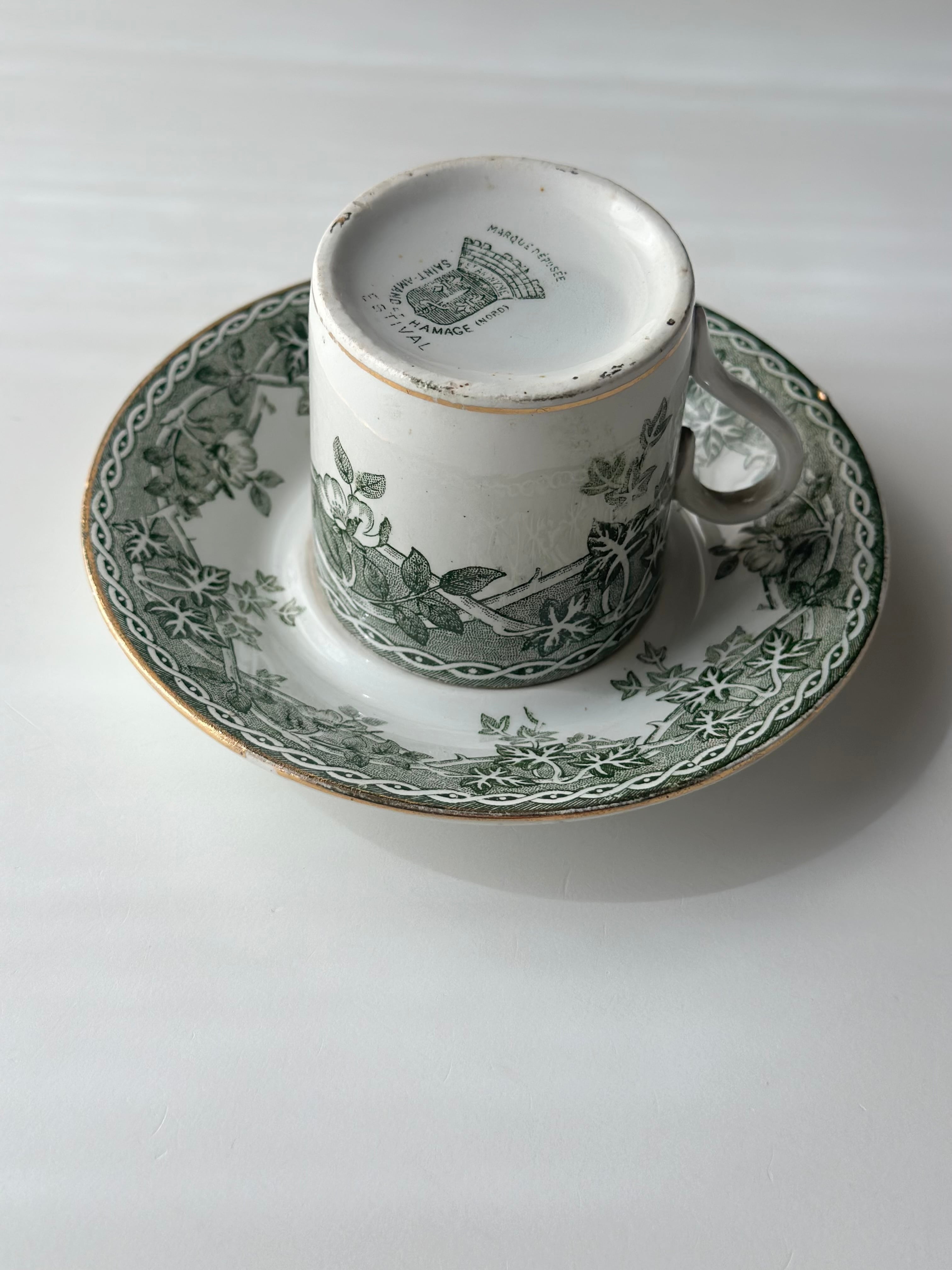 Saint amand サンタマン / “ESTIVAL” グリーンリーフのデミタスカップ&ソーサー b