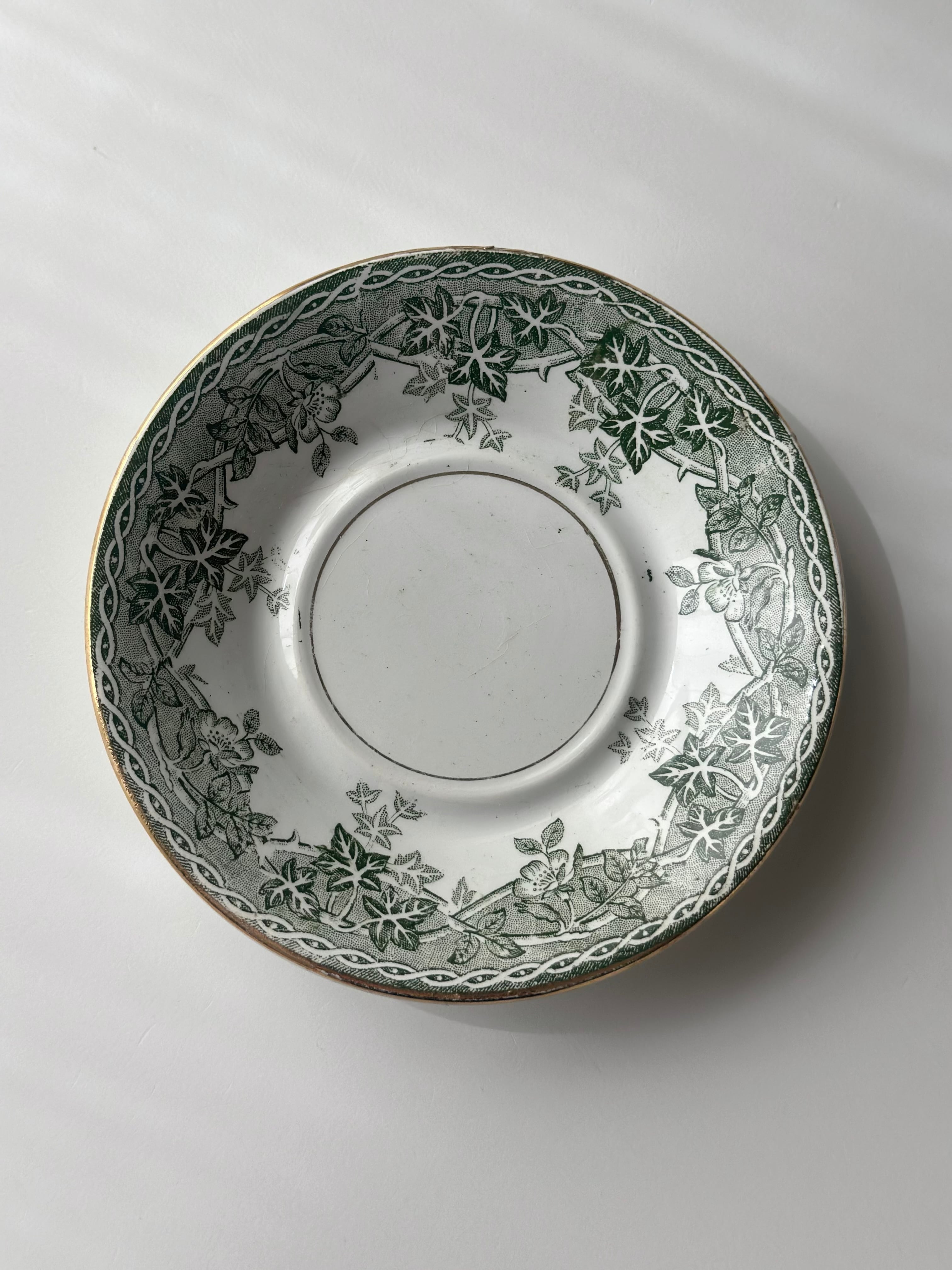 綺麗な白の陶肌に、深みのあるグリーンで描かれたアイビー文様。