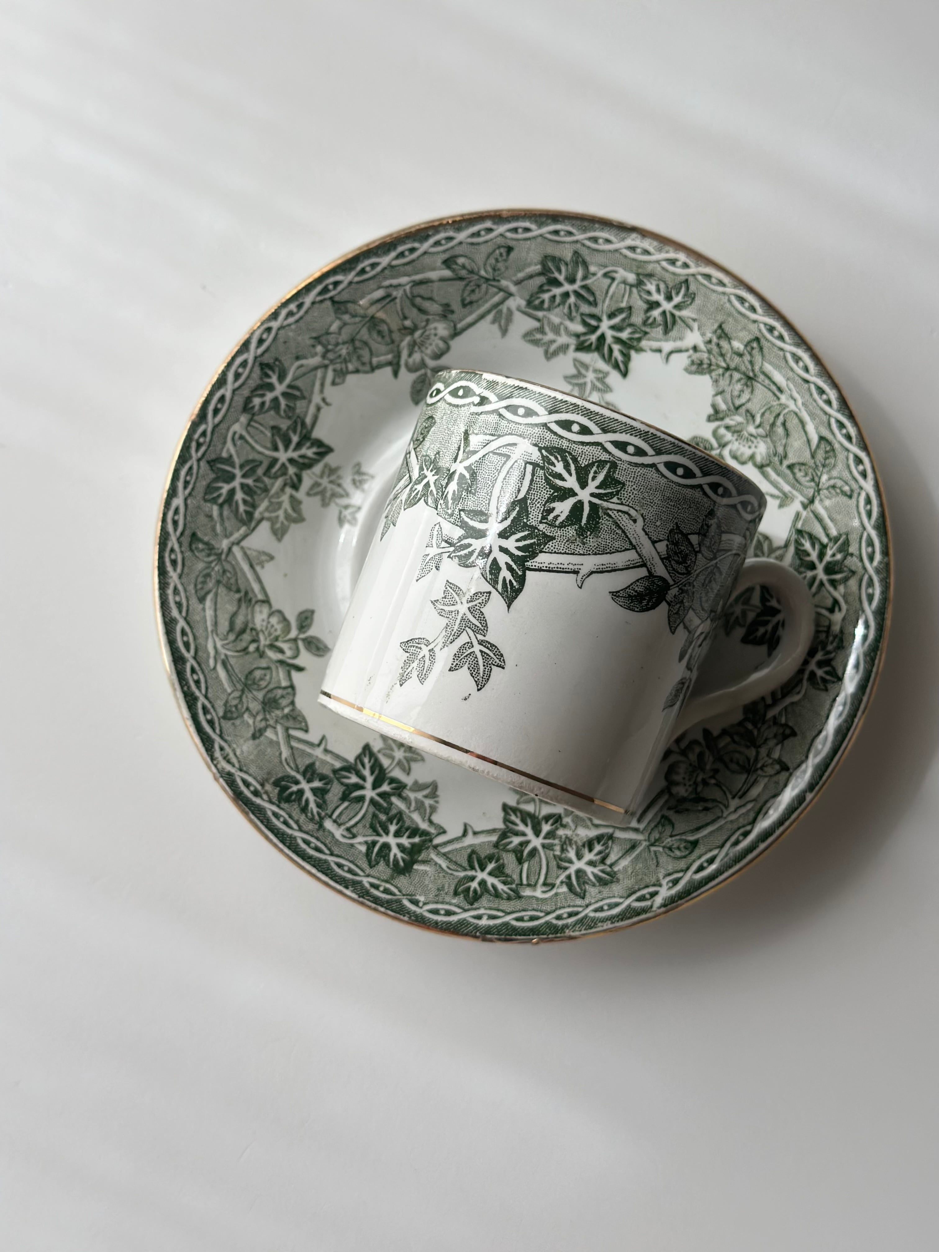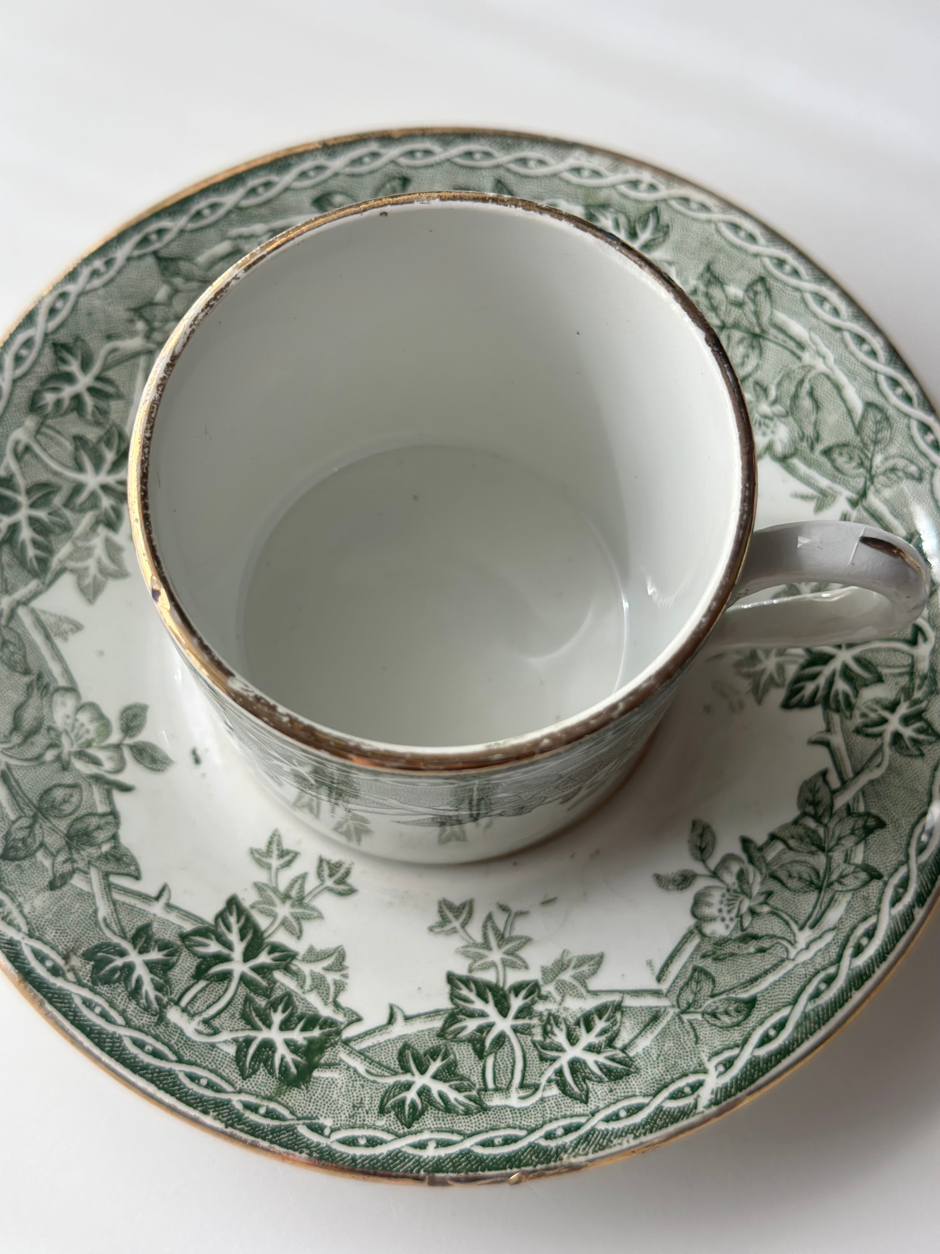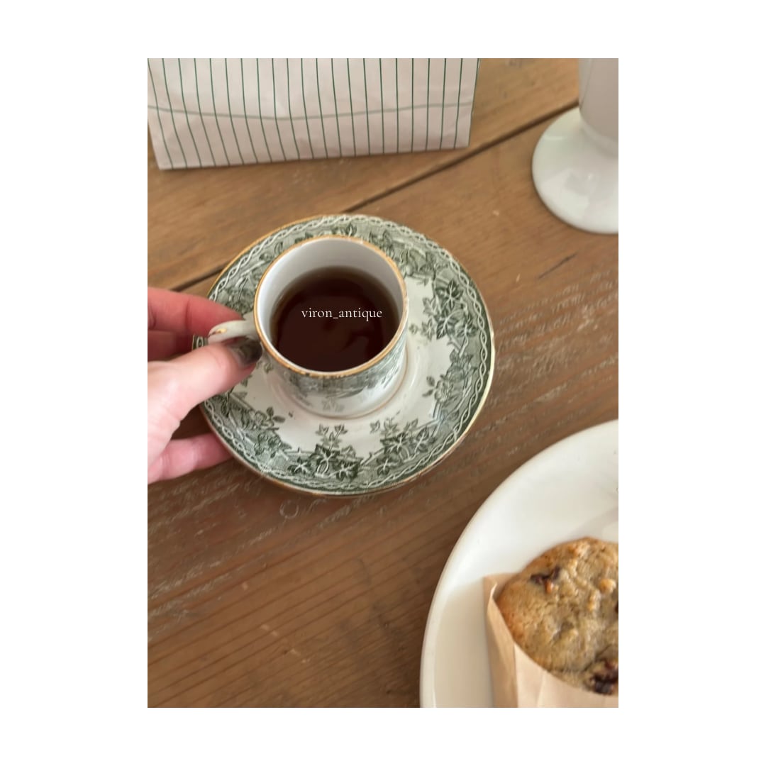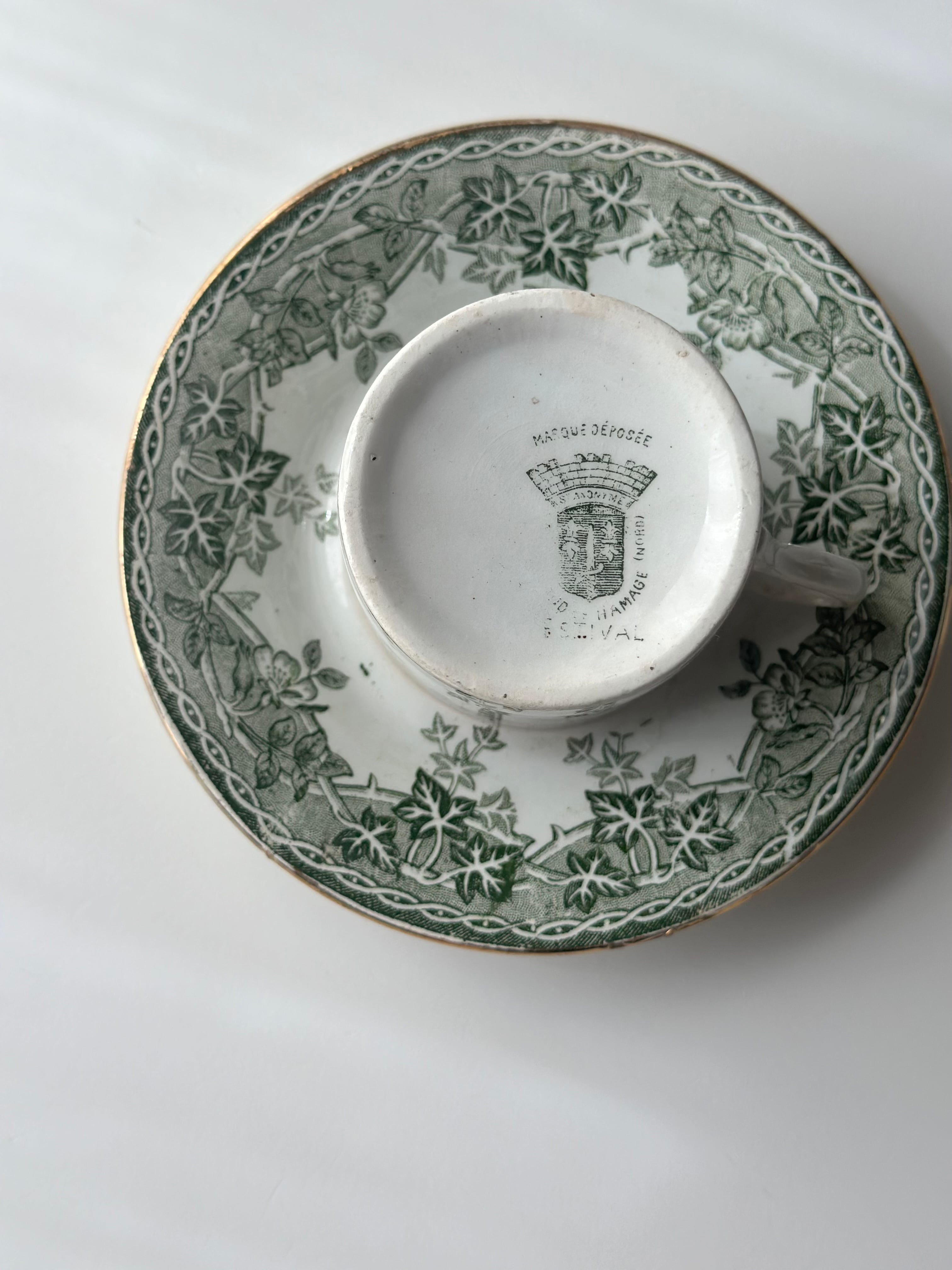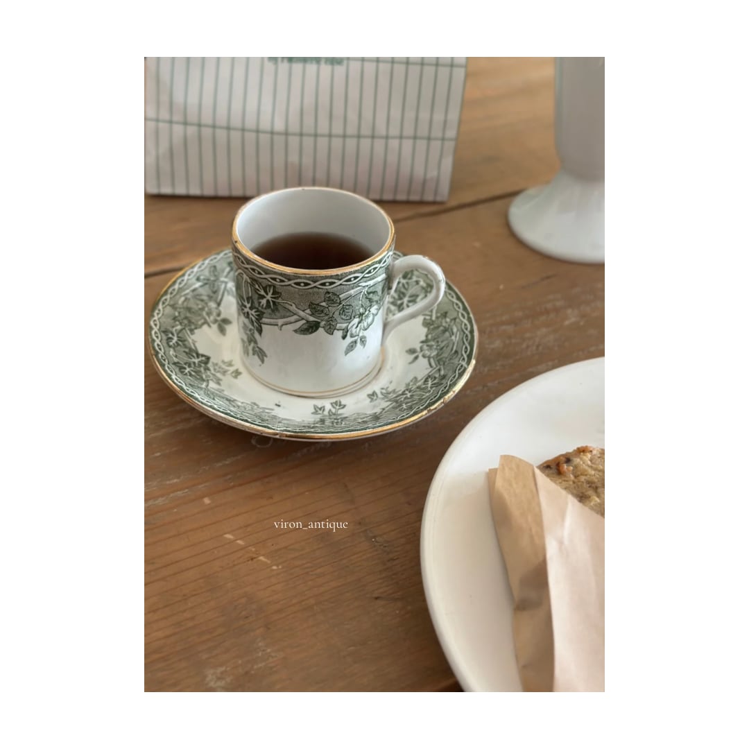 Saint amand サンタマン / “ESTIVAL” グリーンリーフのデミタスカップ&ソーサー c
