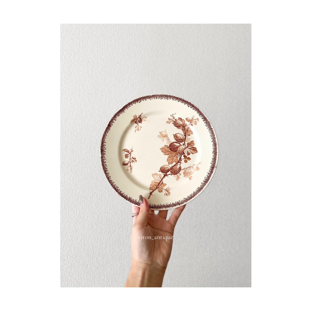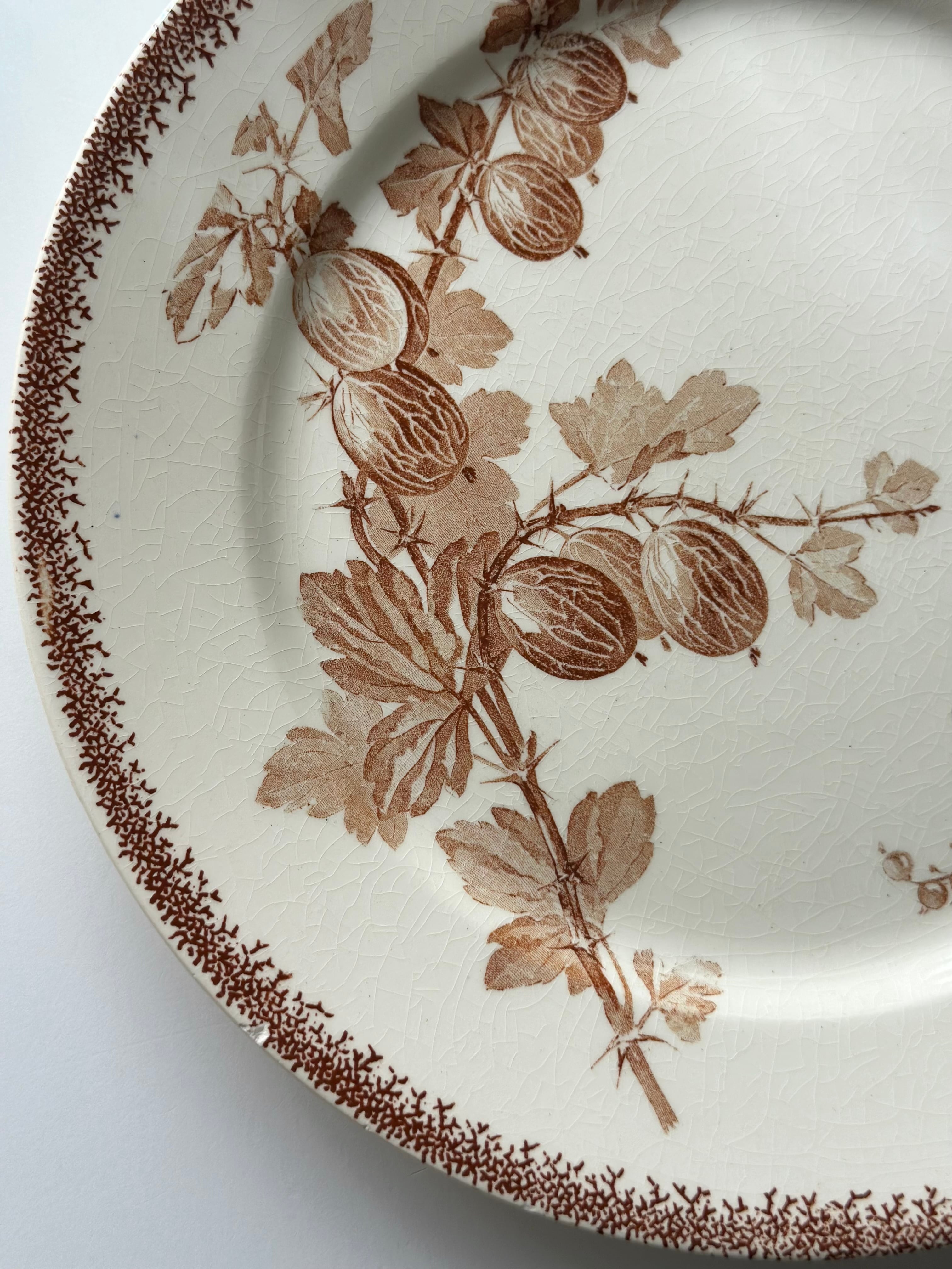 Sarreguemines サルグミンヌ / “GROSEILLES” brown スグリの平皿プレート f