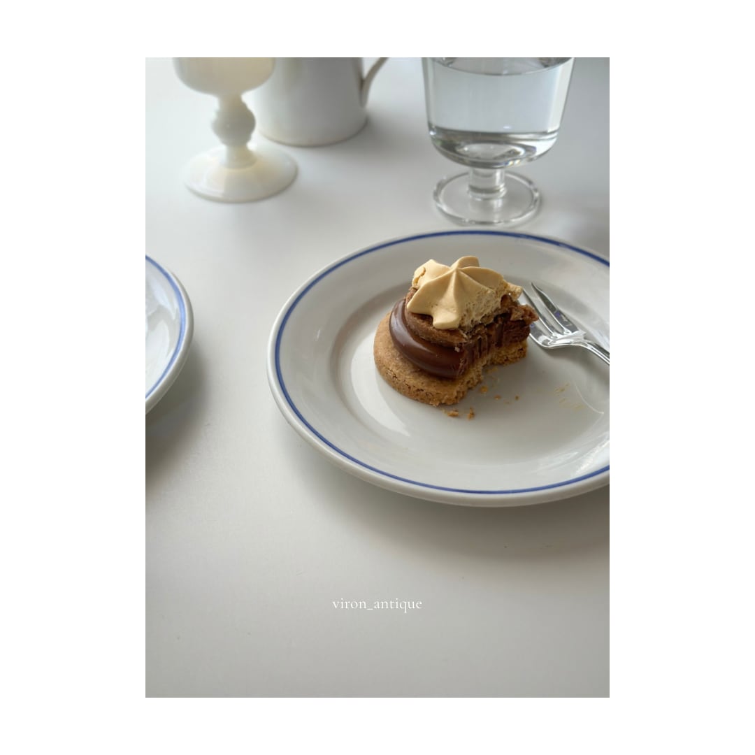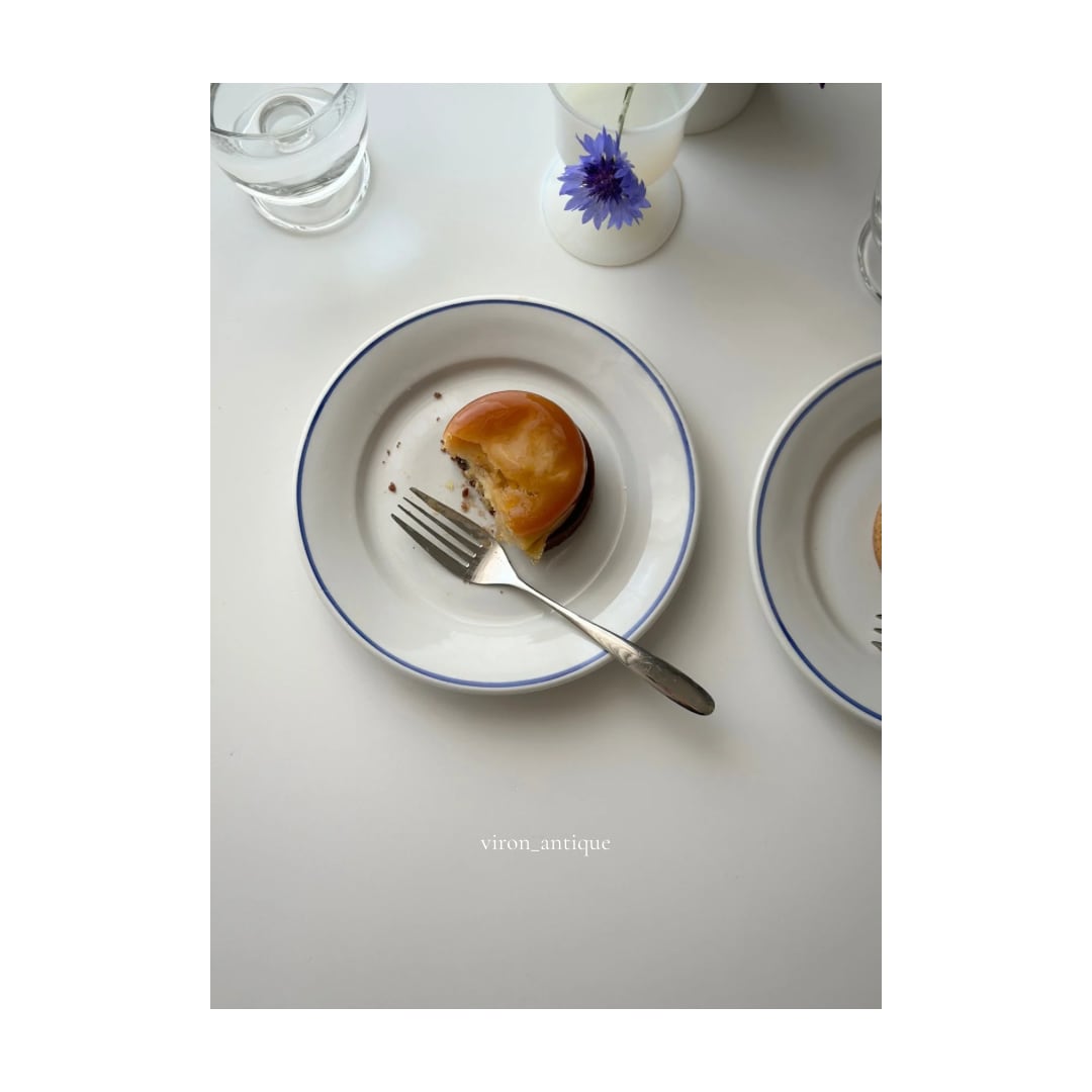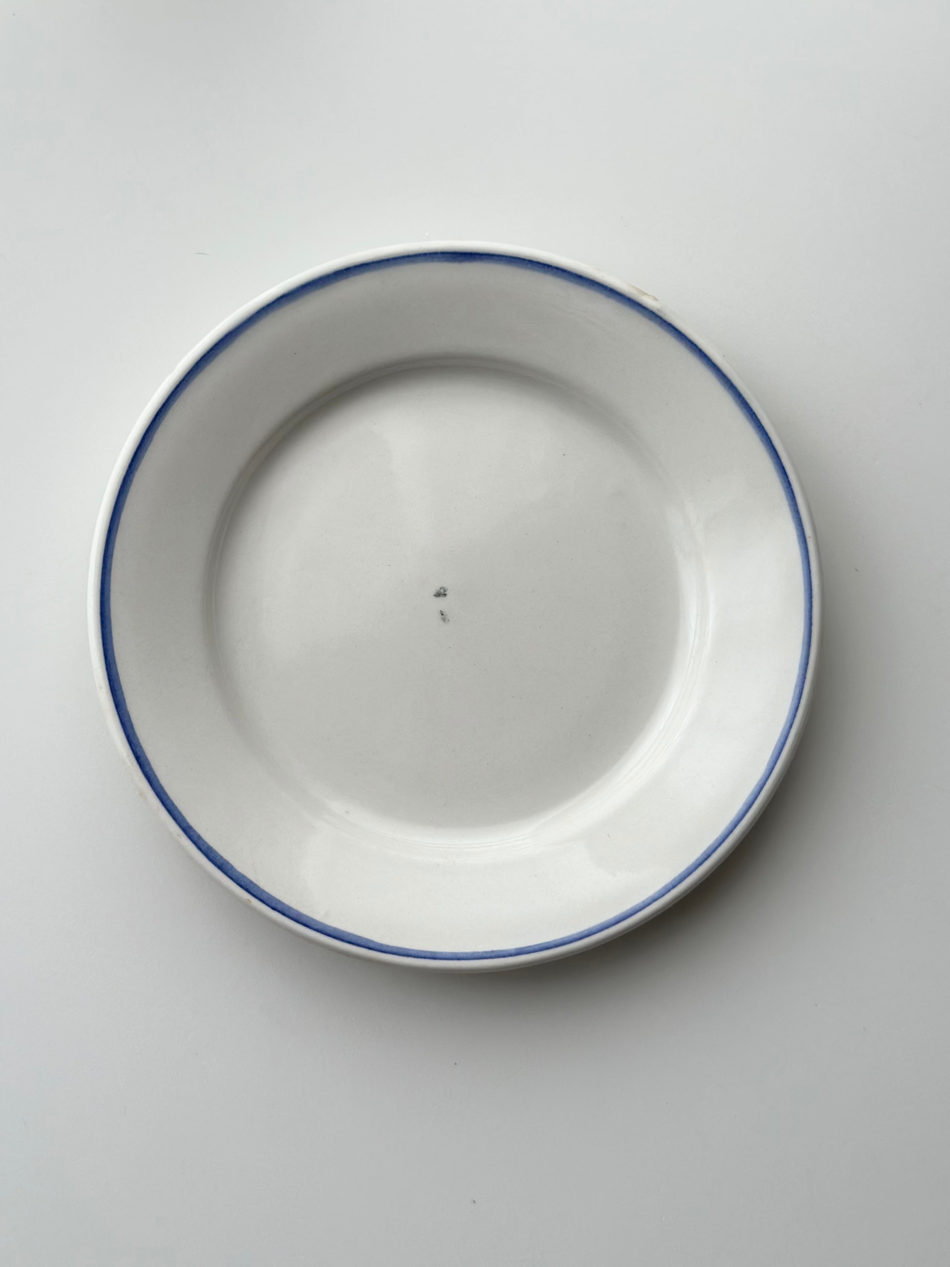 フランス ジアン窯より、白地にブルーラインが入ったプレート。