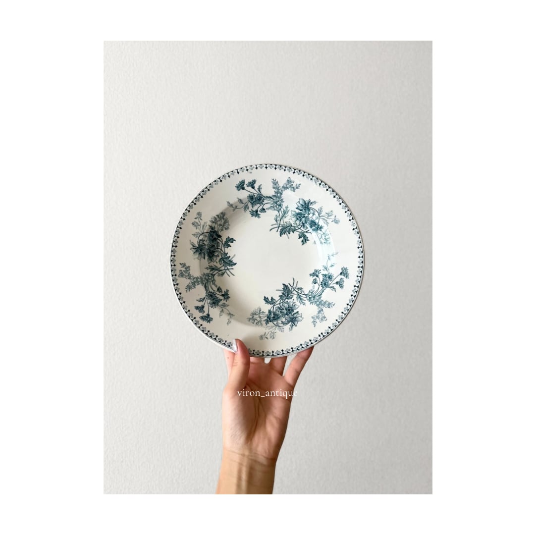 綺麗な白の陶肌にグリーンがかったブルーの絵柄が美しく映える素敵な1枚。