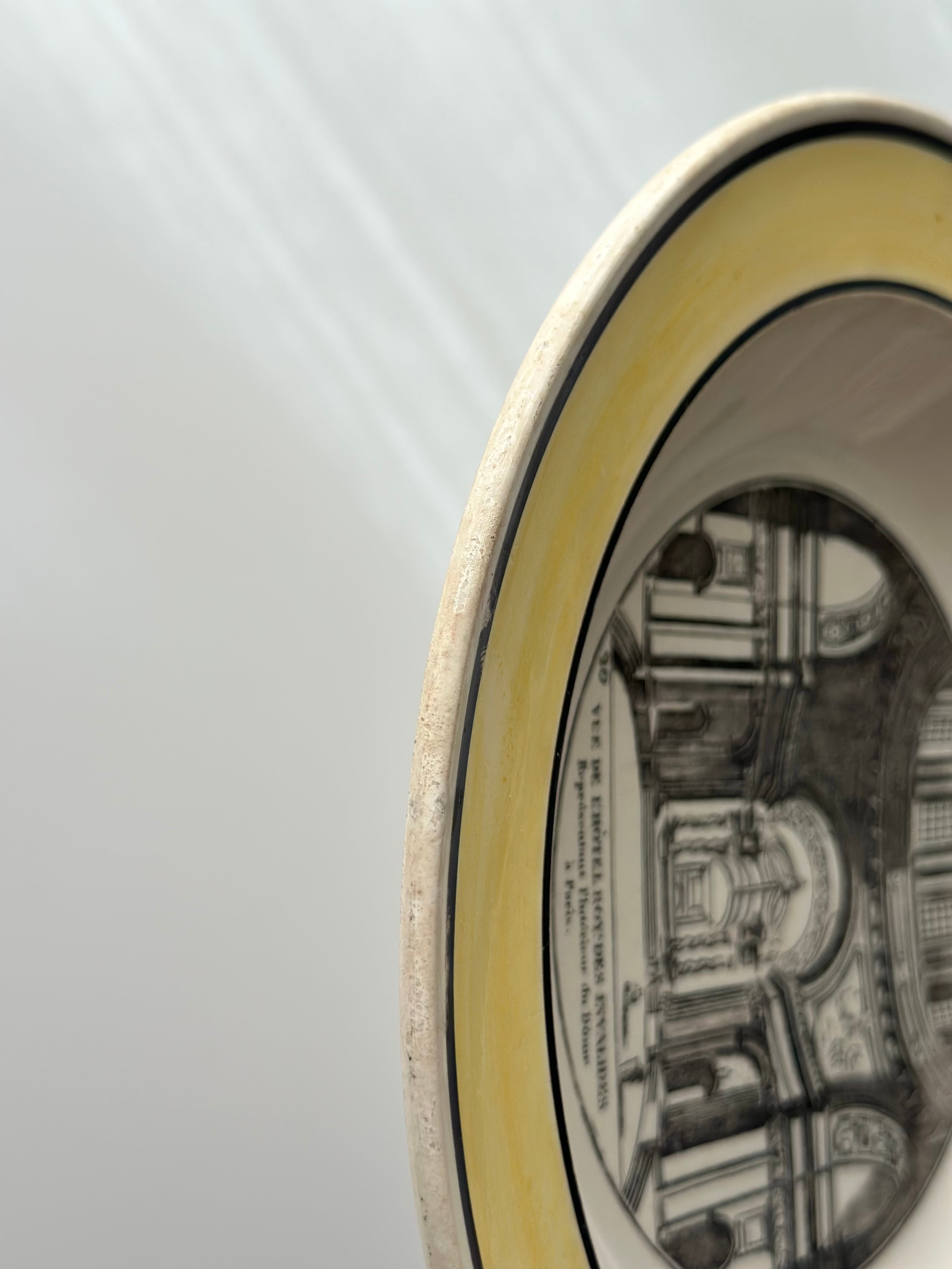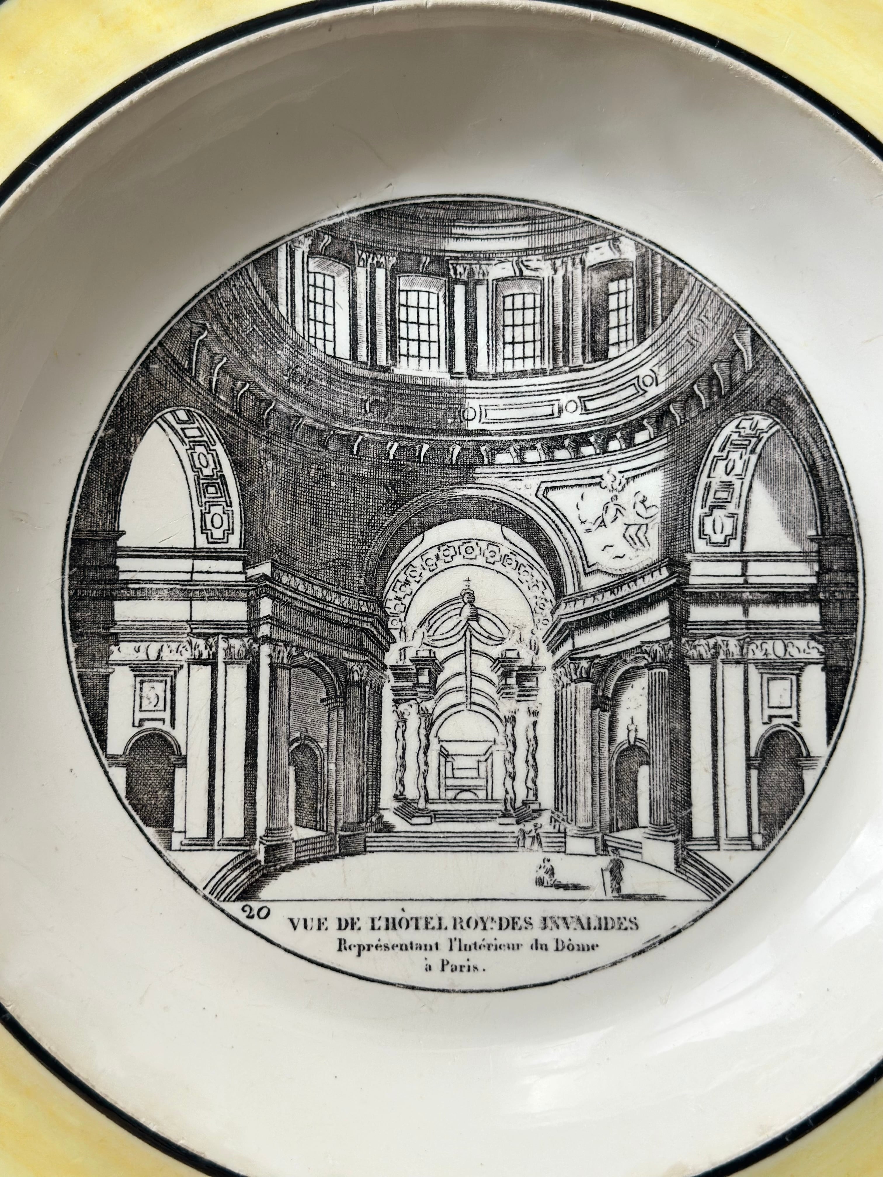 Choisy le roi ショワジールロワ / イエローリムのグリザイユプレート “Hôtel Royal des Invalides”