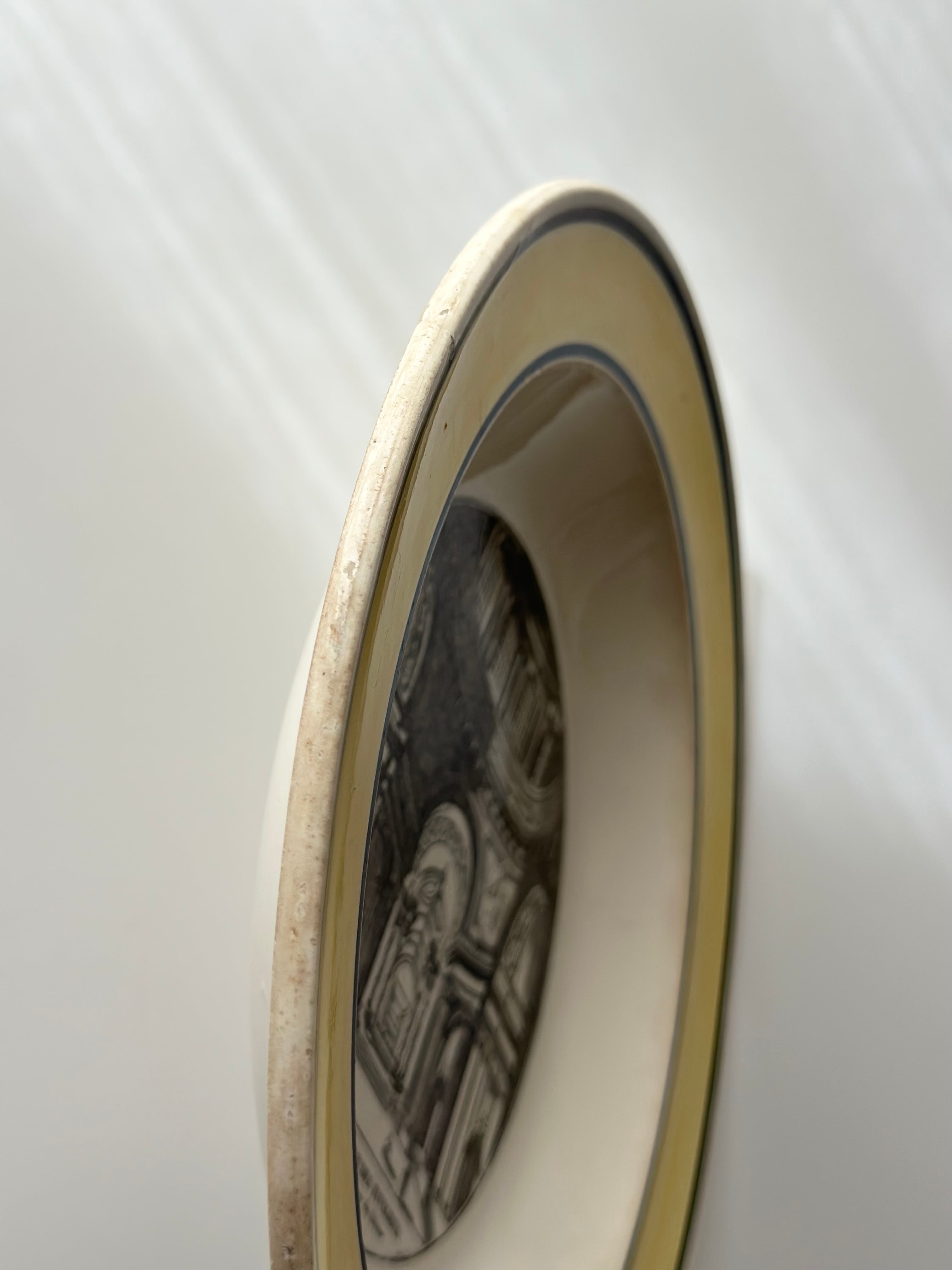 壮麗なアーチと荘厳な装飾が精緻に表現され、当時の建築美がそのまま転写陶器の中に閉じ込められています。
