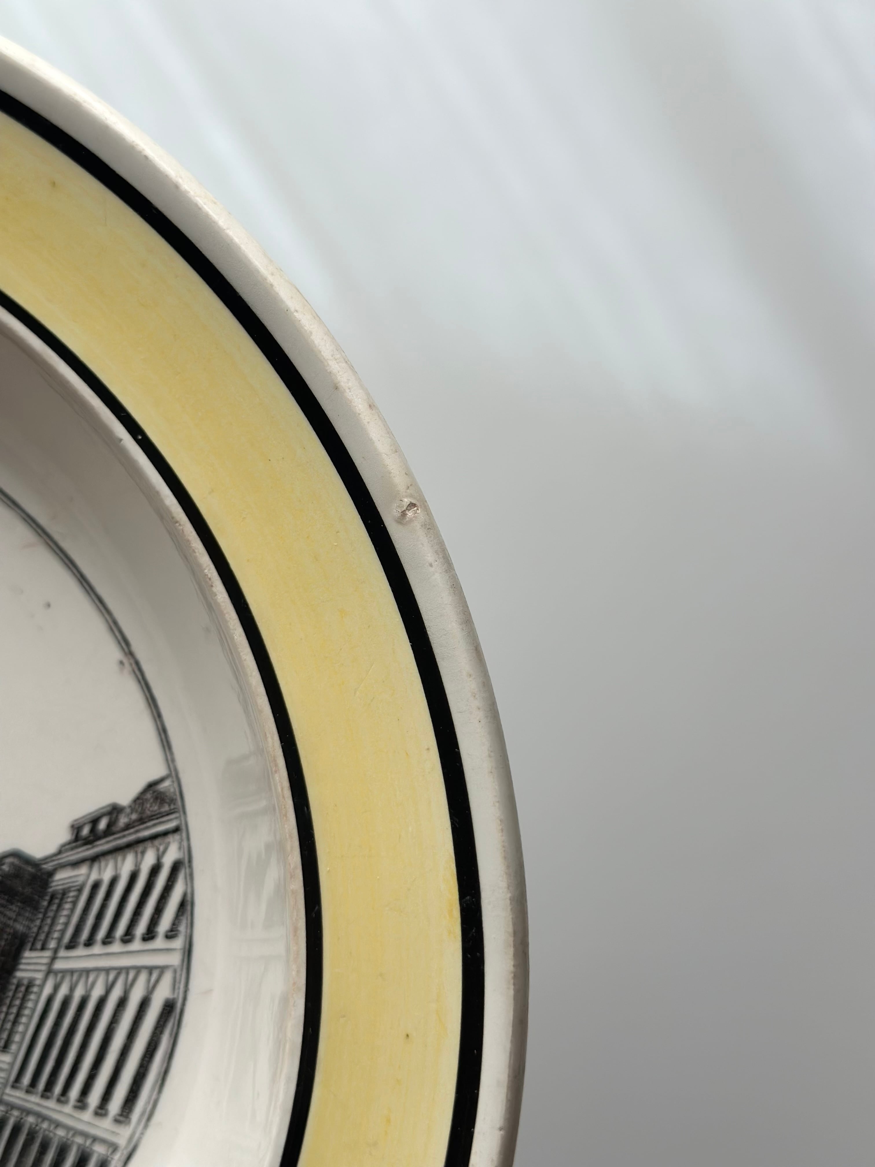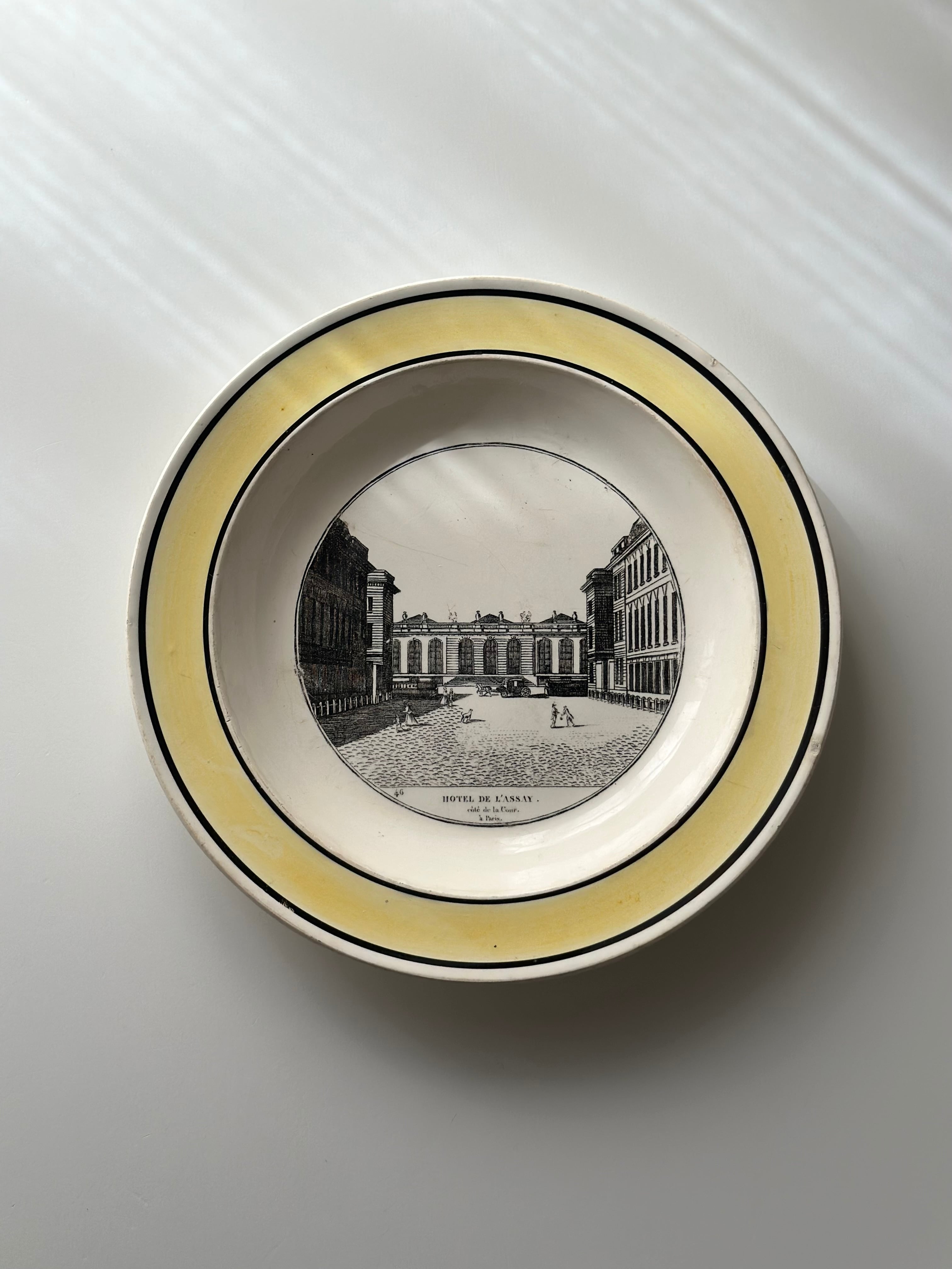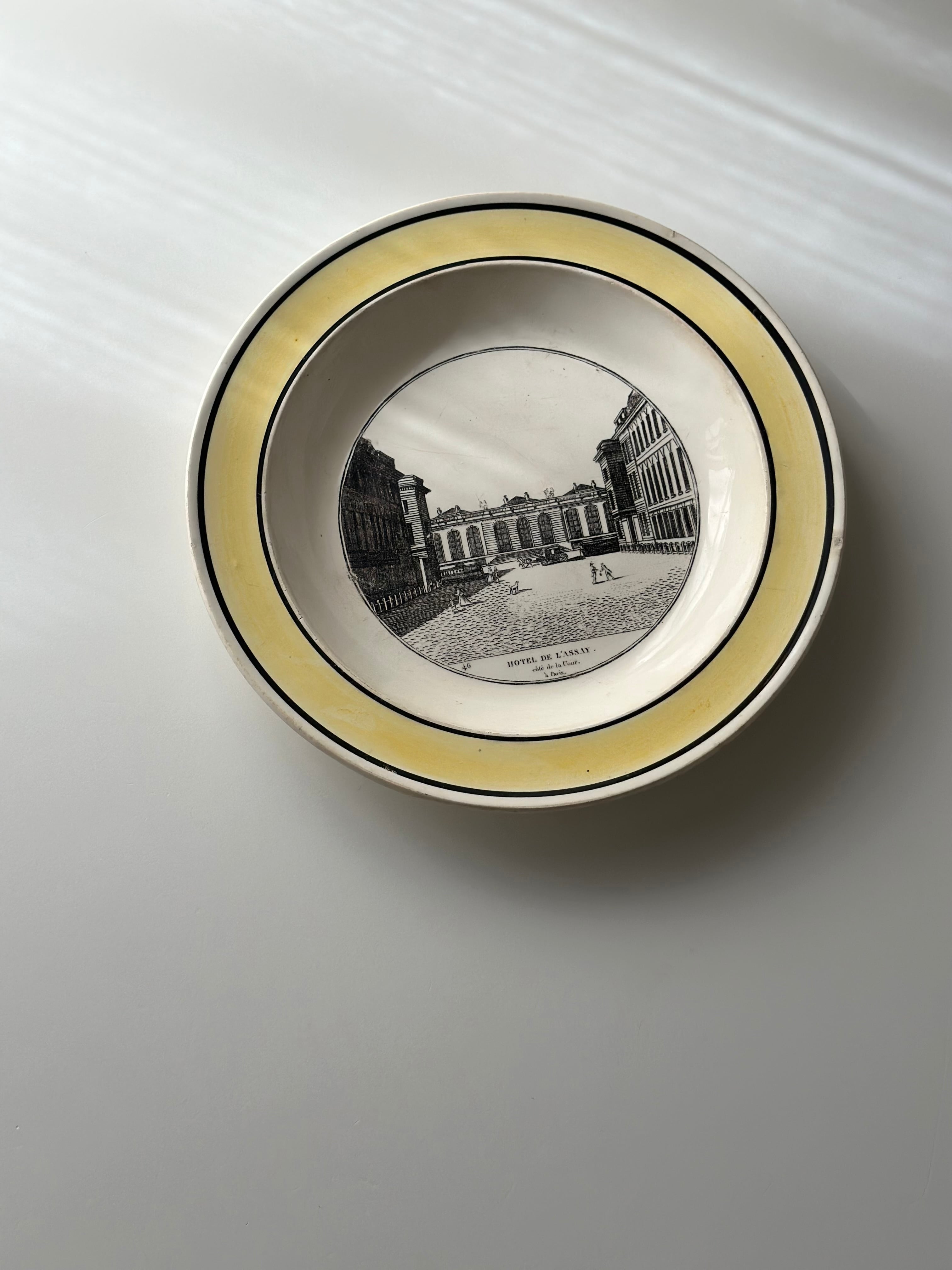 Choisy le roi ショワジールロワ / イエローリムのグリザイユプレート “Hôtel de l’Assay”