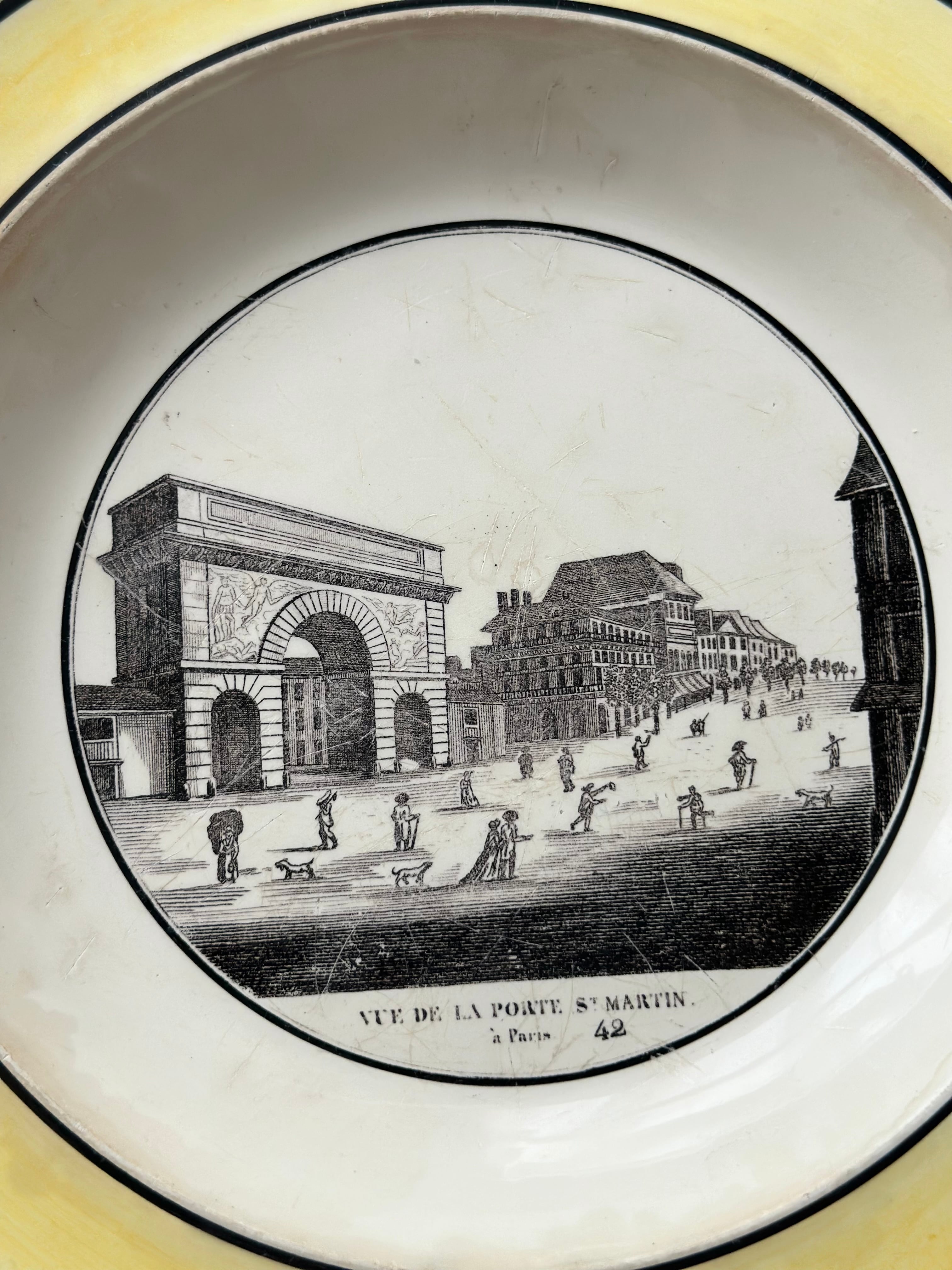 Choisy le roi ショワジールロワ / イエローリムのグリザイユプレート “Porte Saint-Martin”