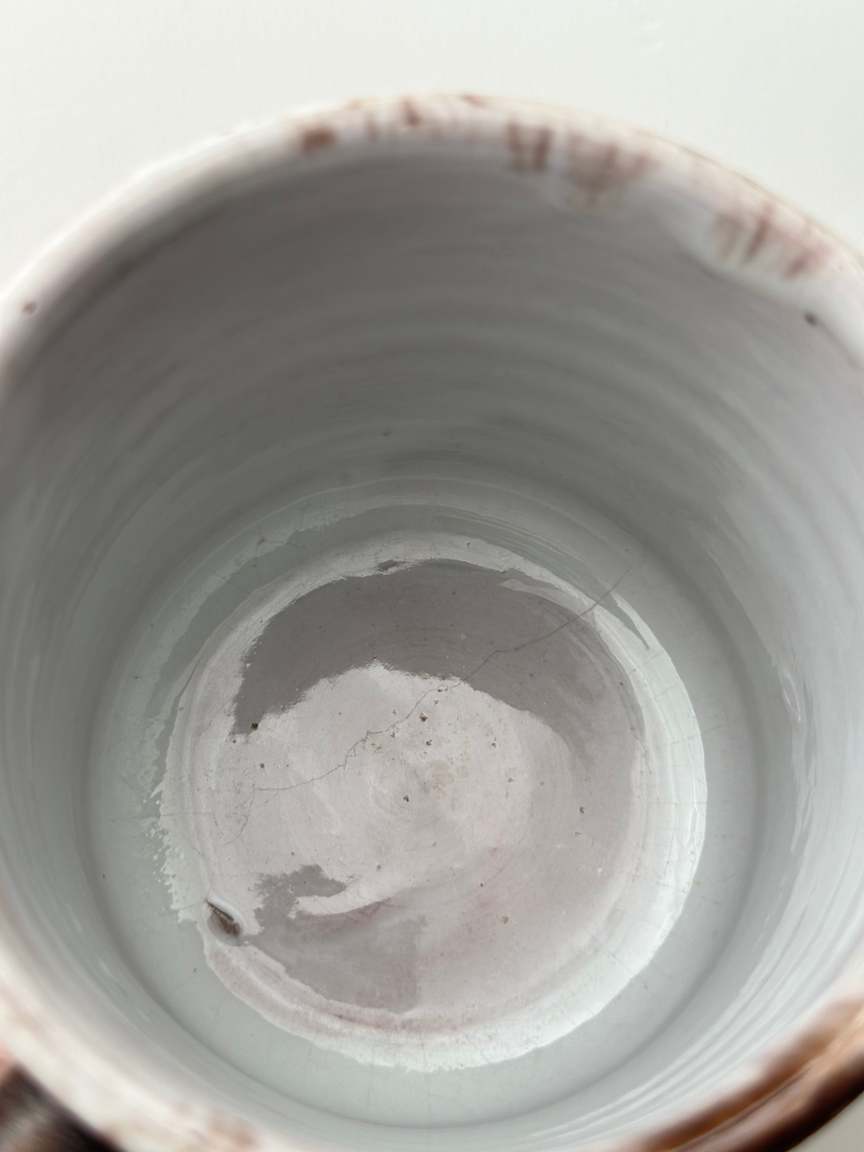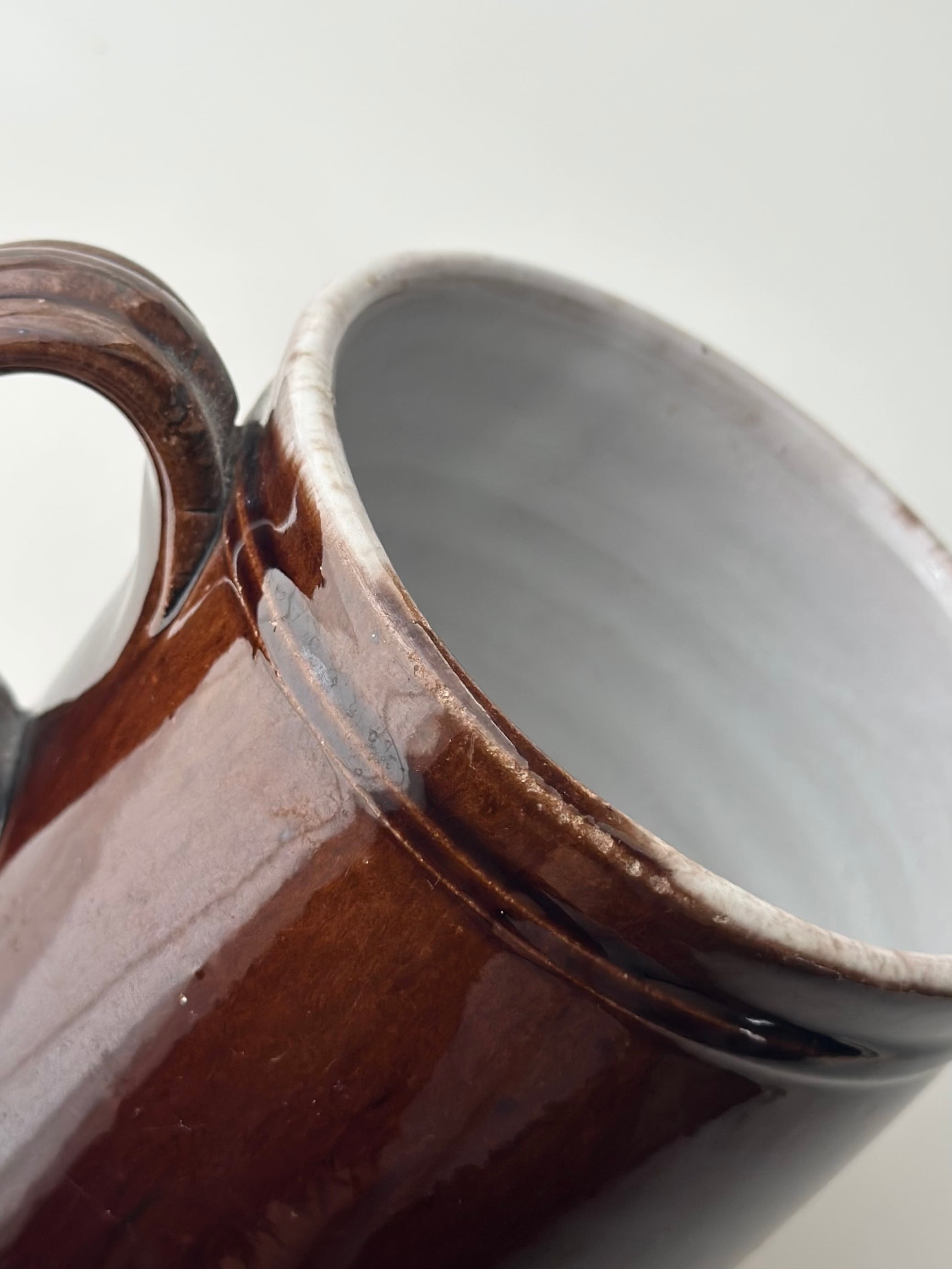 表面はつややかで深みのあるブラウンの釉薬で覆われ、内側には柔らかなホワイトの釉薬が施されています。