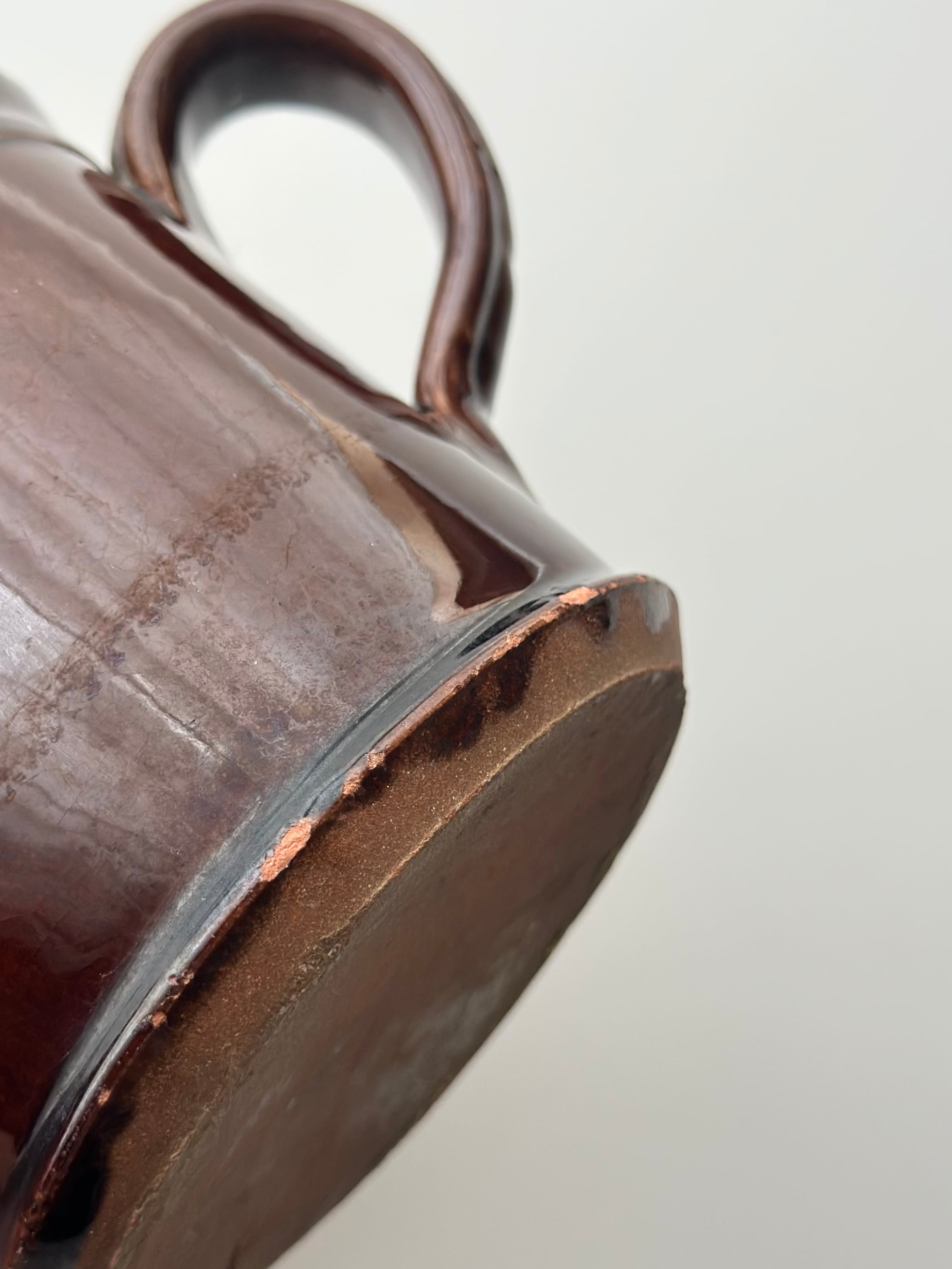 艶やかなチョコレートブラウンの釉薬と、ぽってりと厚みのあるフォルムが印象的です。
