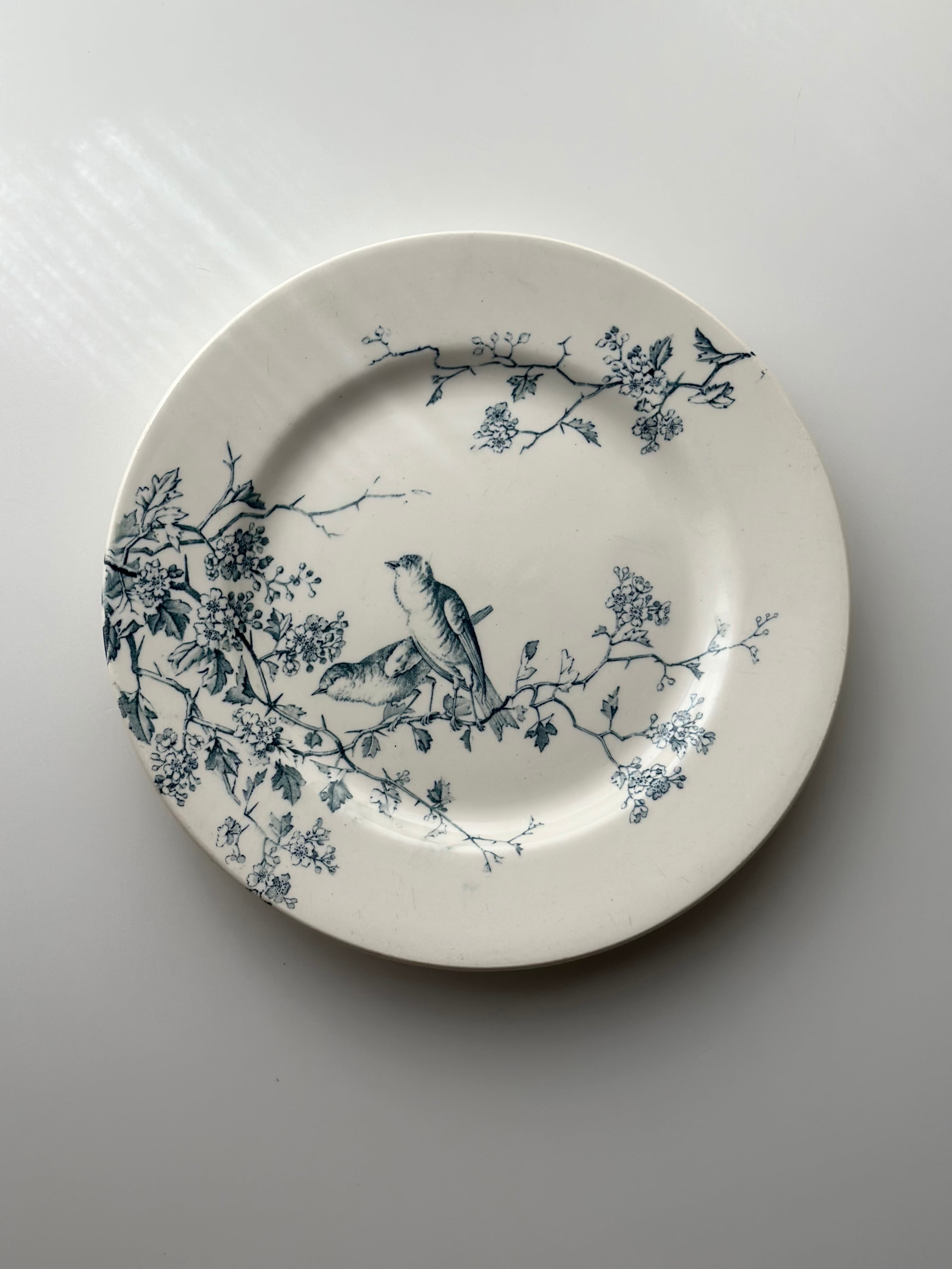 Luneville リュネヴィル / “Fauvette” 桜と鳥の平皿プレート d