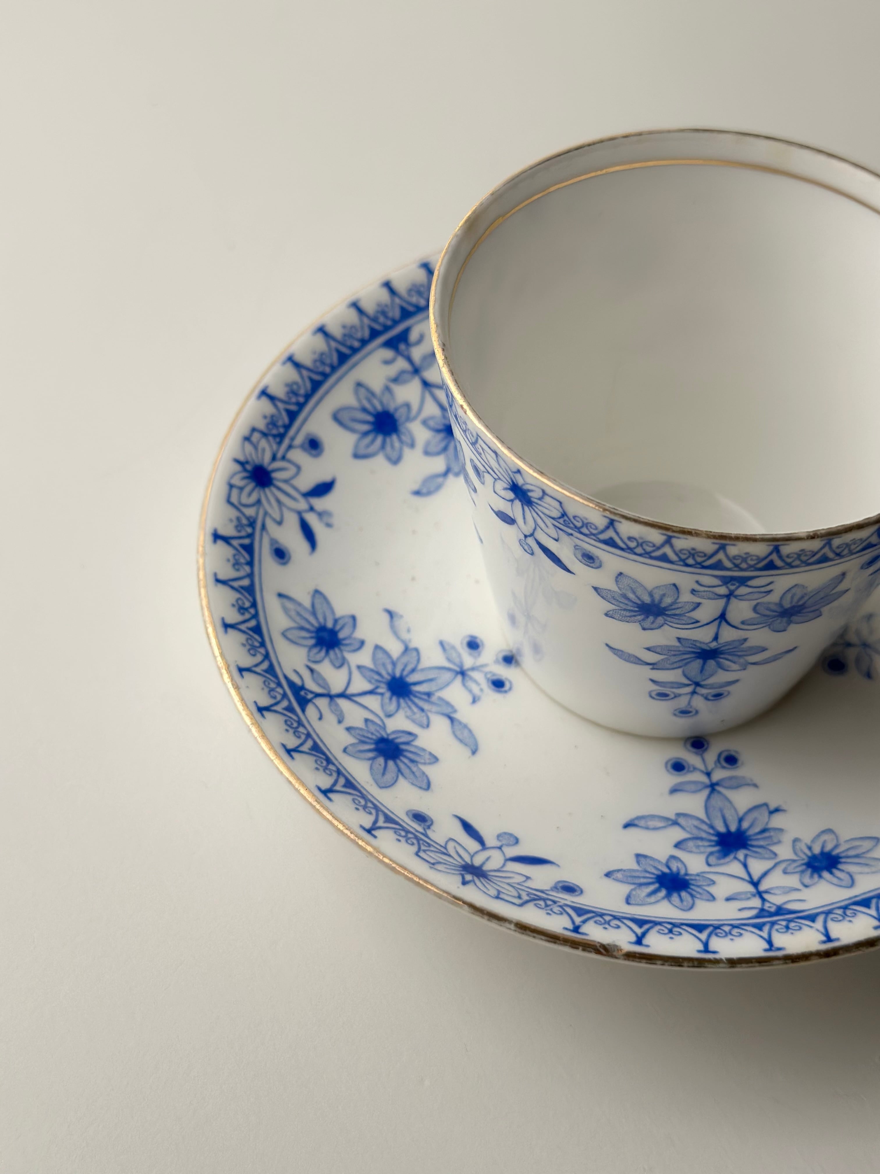 深みのあるコバルトブルーで描かれた花模様が美しいカップ&ソーサー。