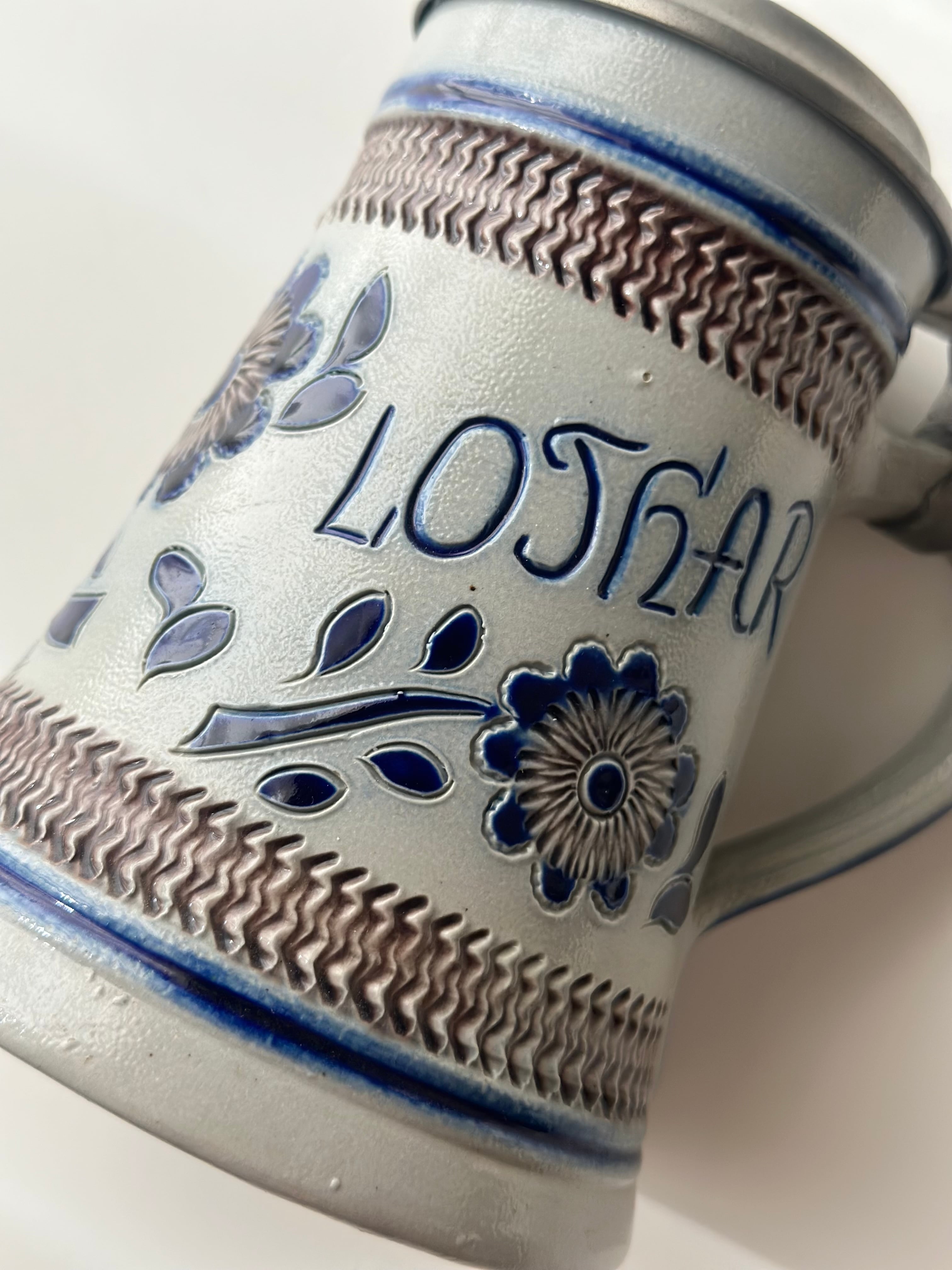 german vintage stoneware mug / ロゴ入りのビアマグ