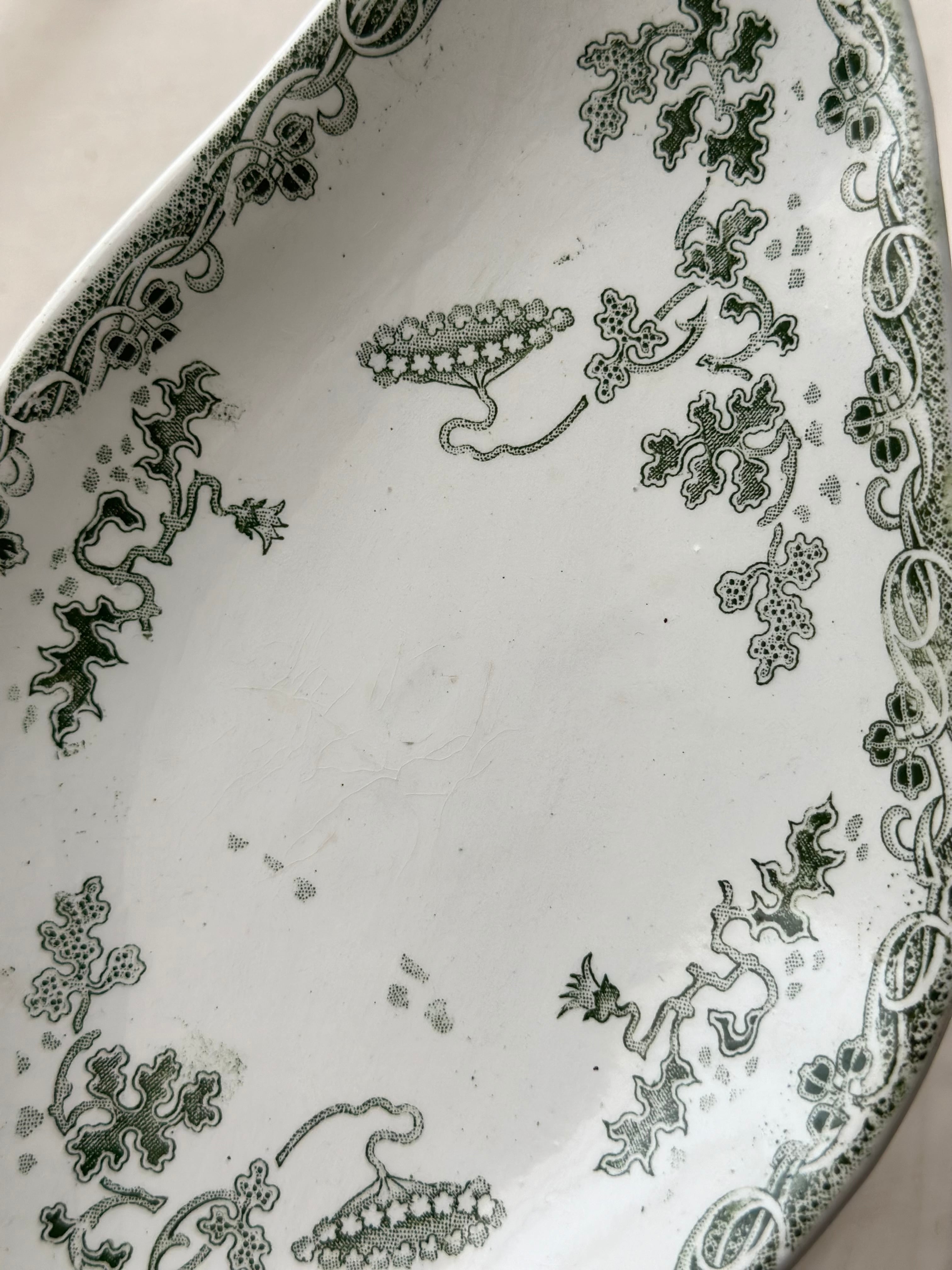 リムにはロカイユの装飾、見込みから植物模様の垂れ下がるデザイン。