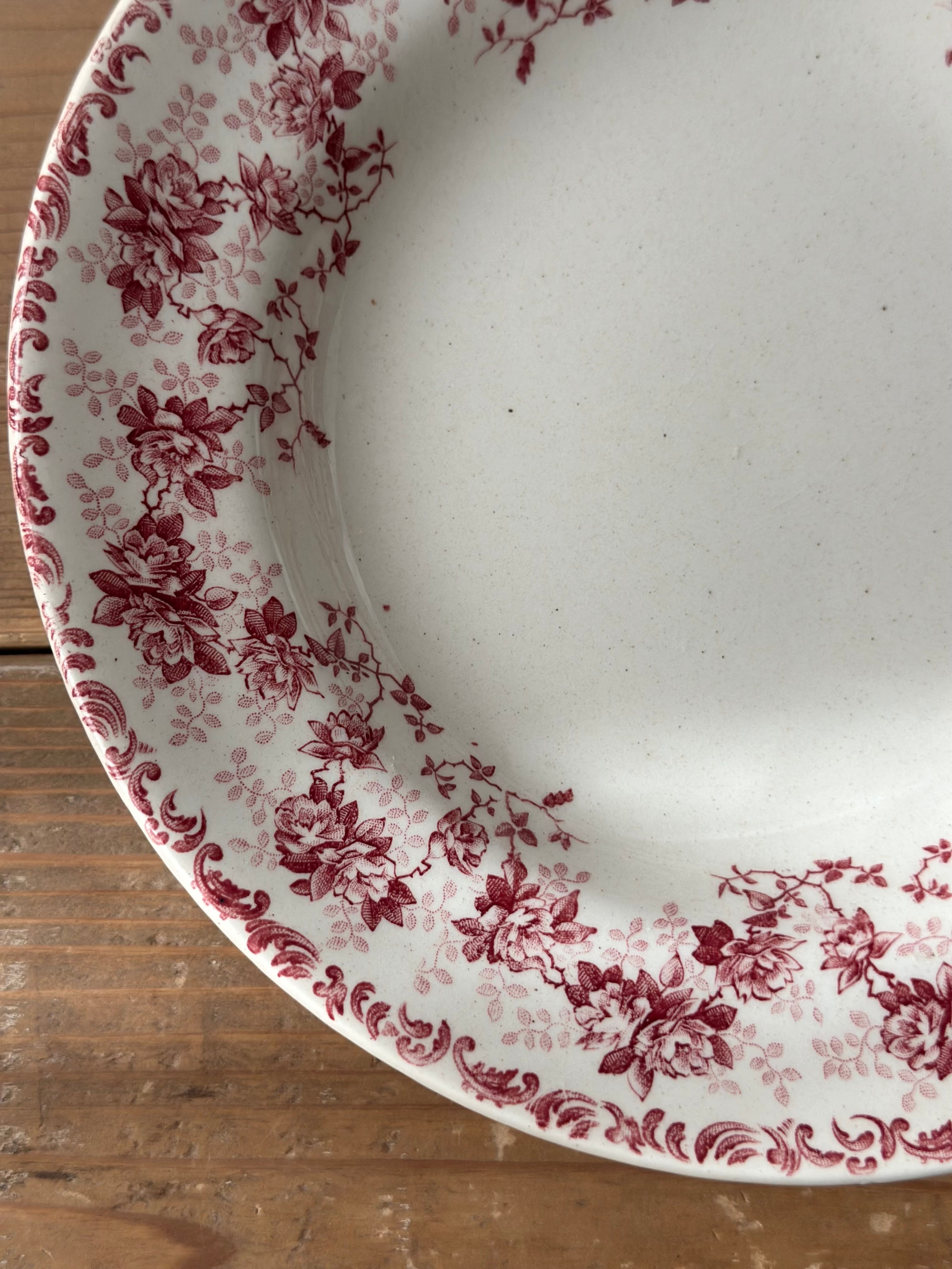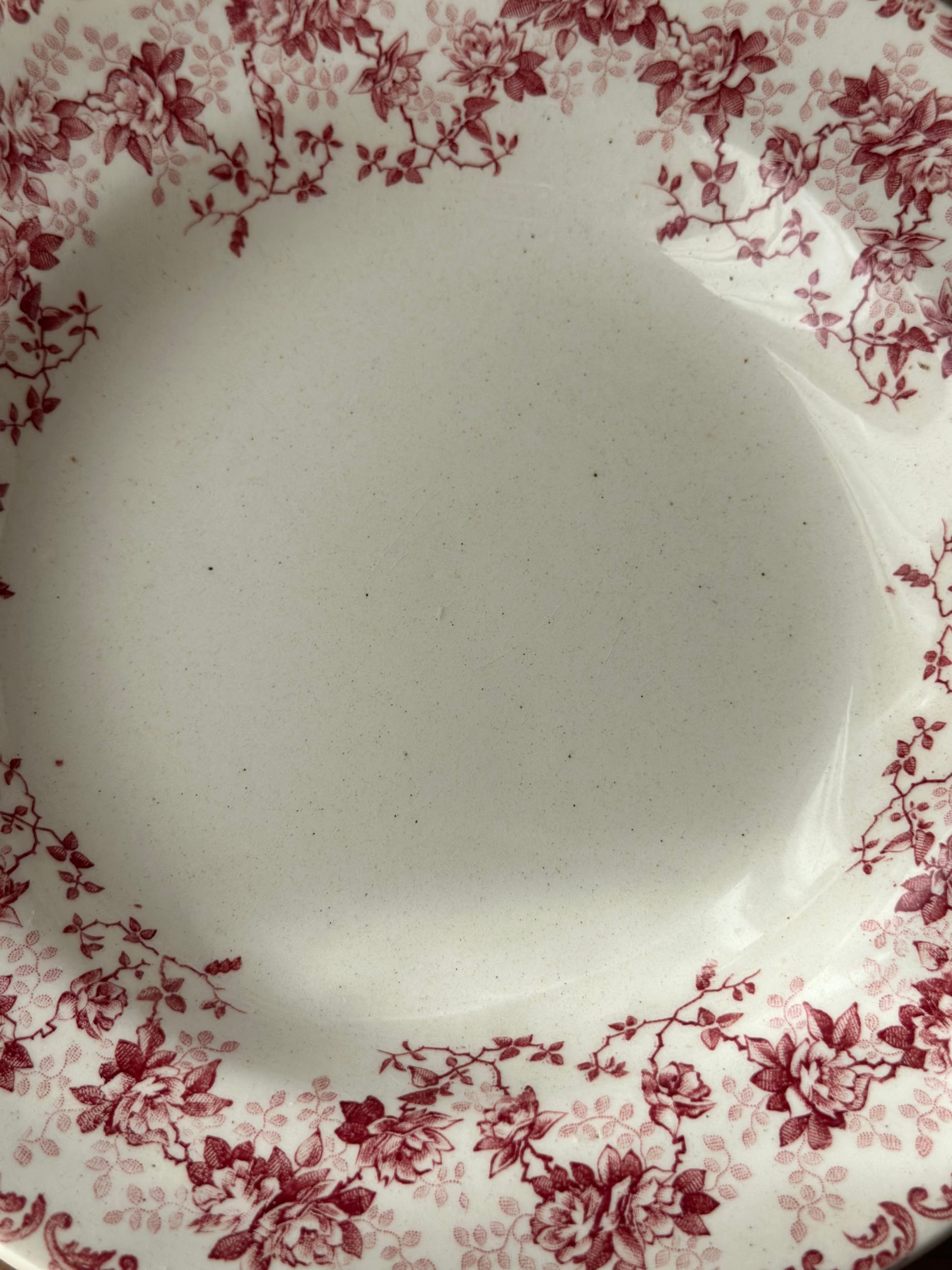 赤みがかったボルドー色で、リムのまわりいっぱいに小花が連なった、