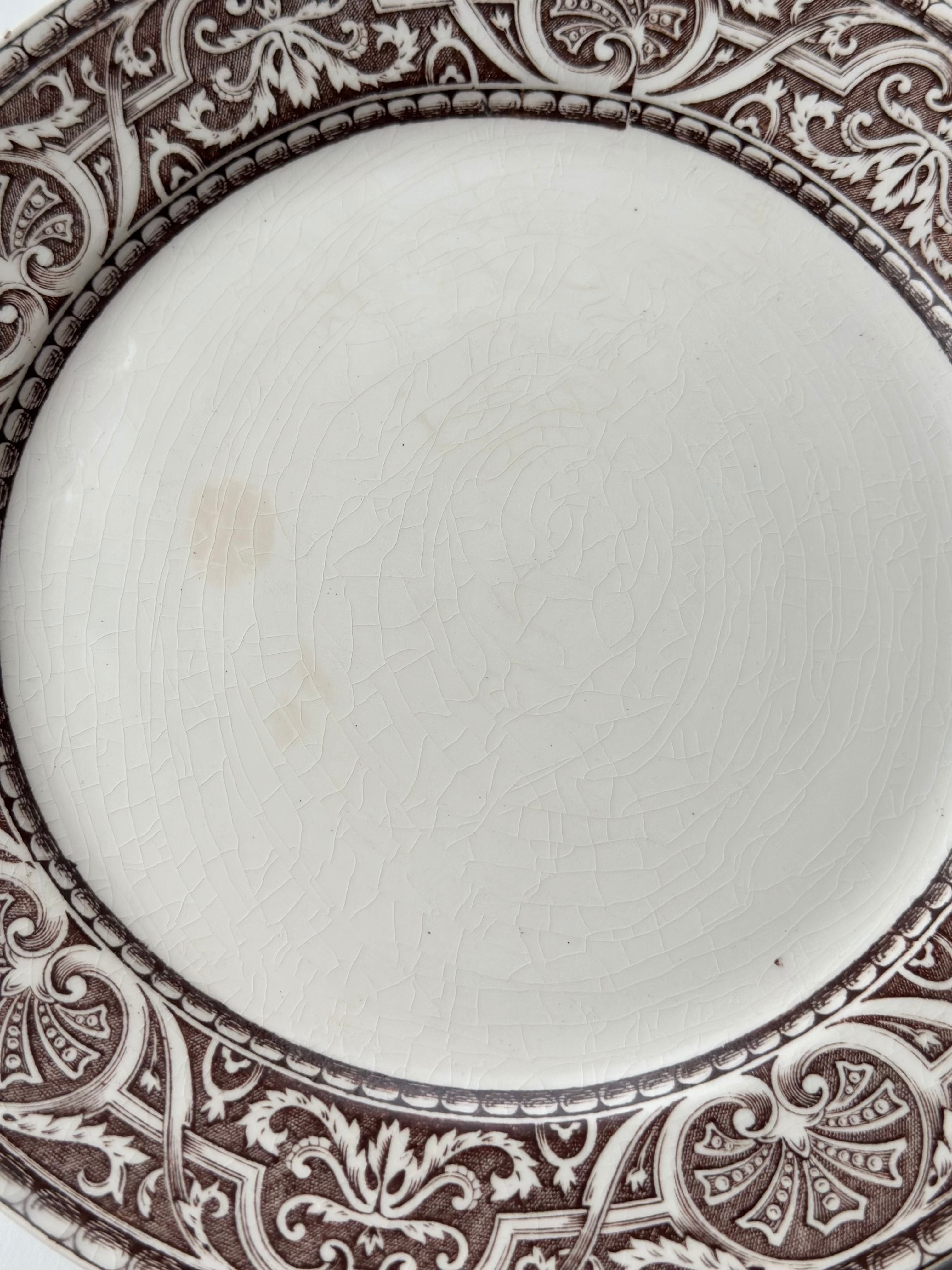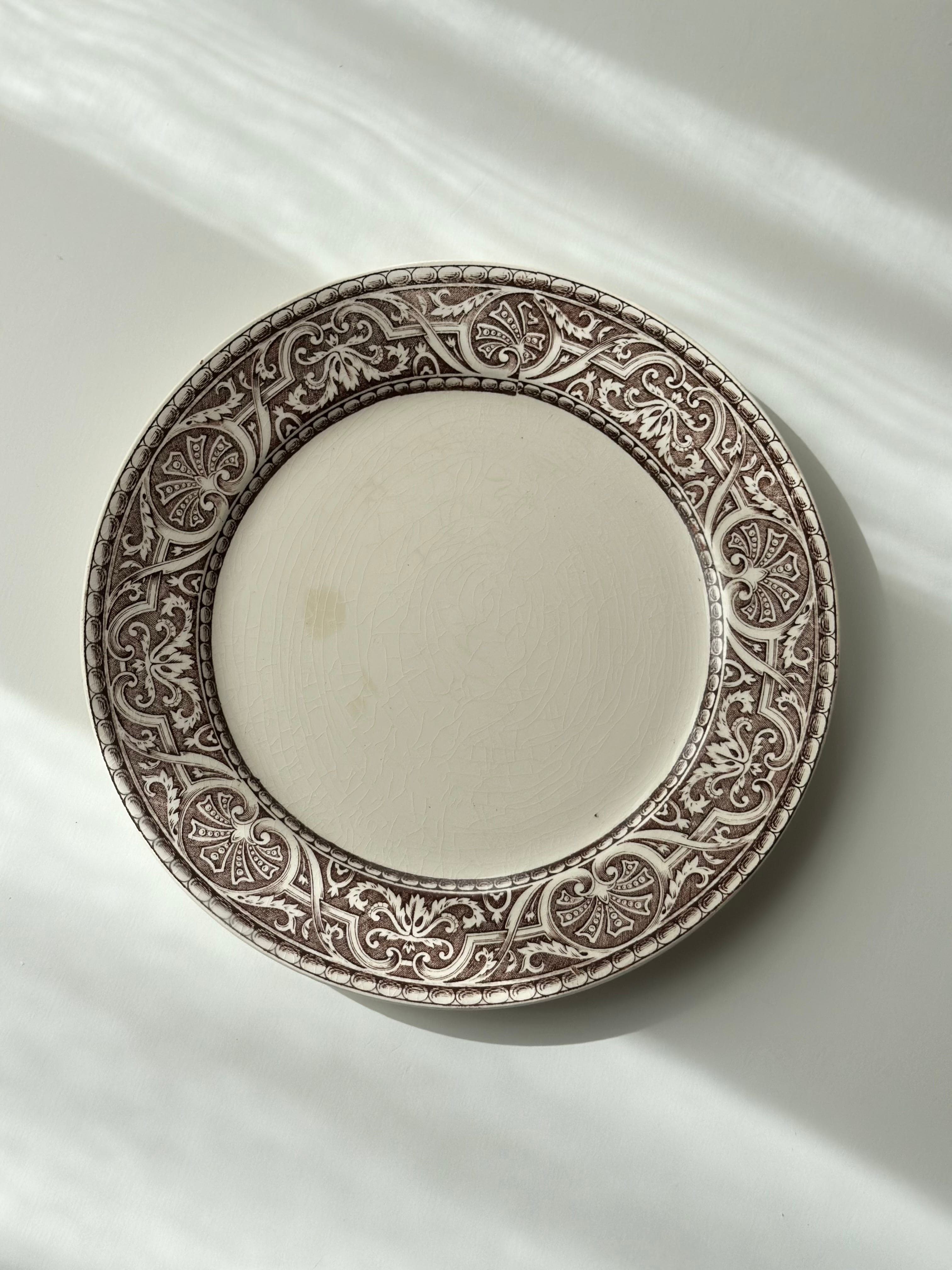 Creil et Montereau クレイユモントロー / “Henri III” brown 平皿プレート e