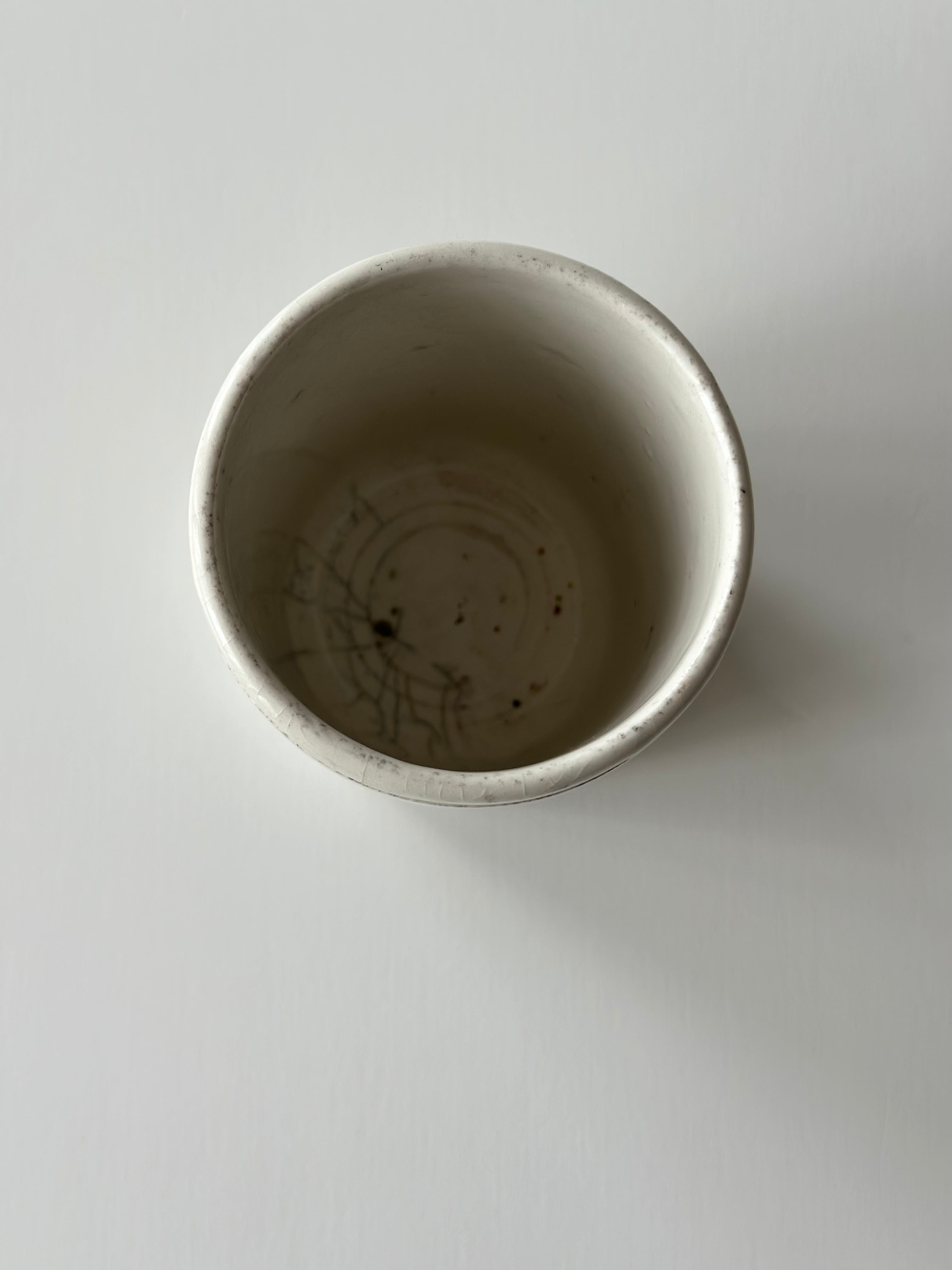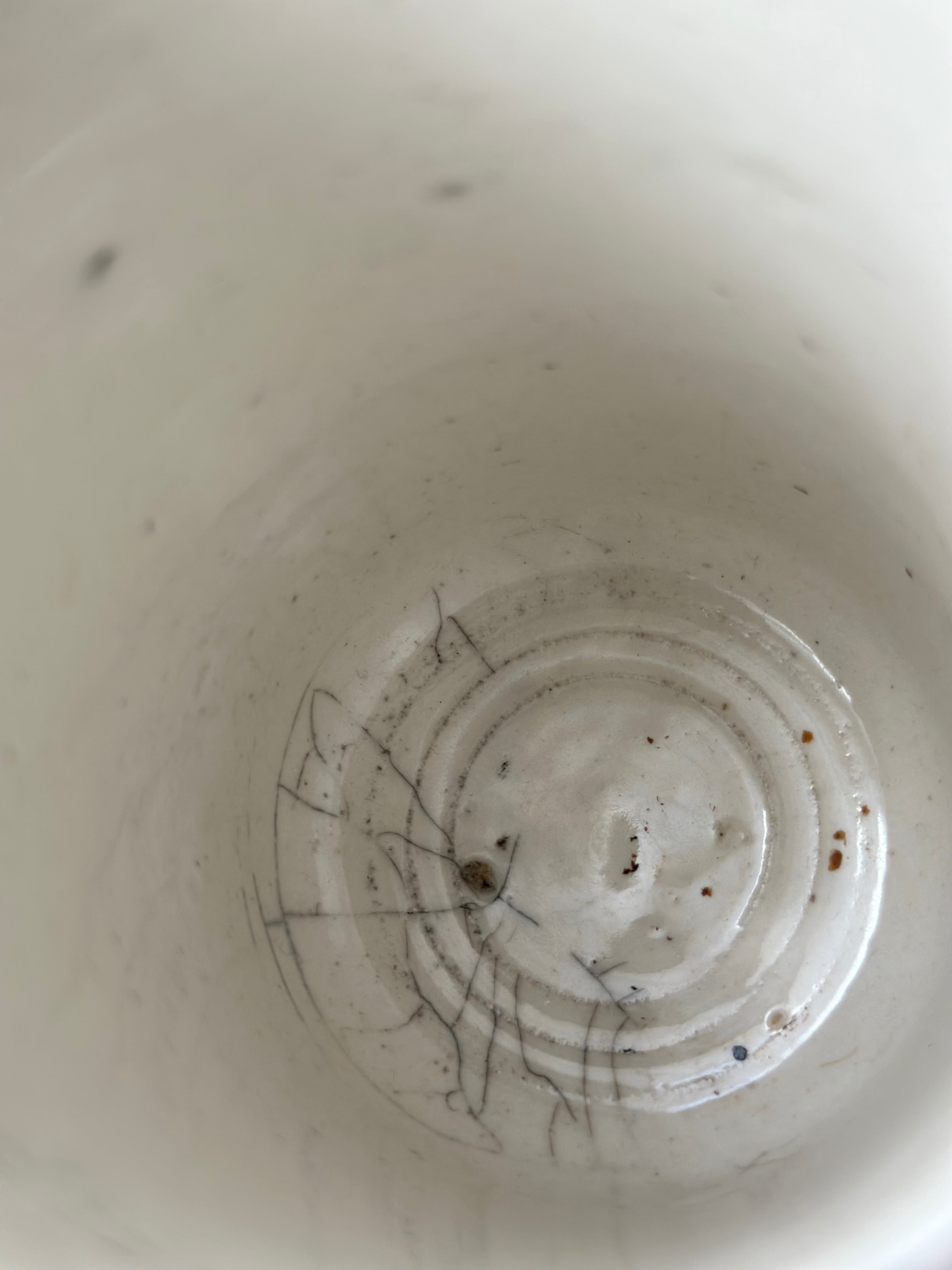 白い陶製のポットに黒インクのロゴが兎に角可愛らしい。