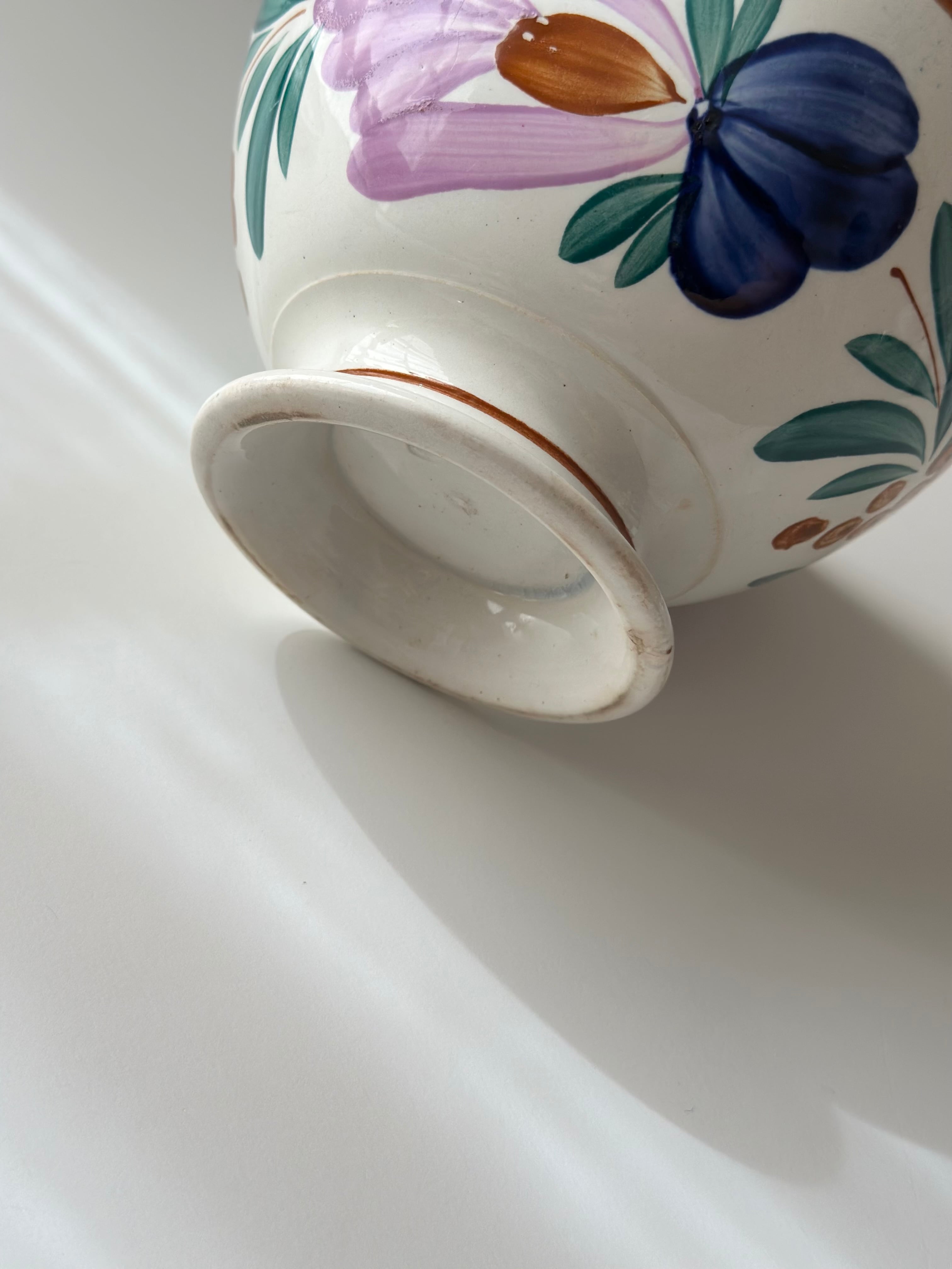 白い陶肌にのびやかに咲くパープルと深い群青の花、