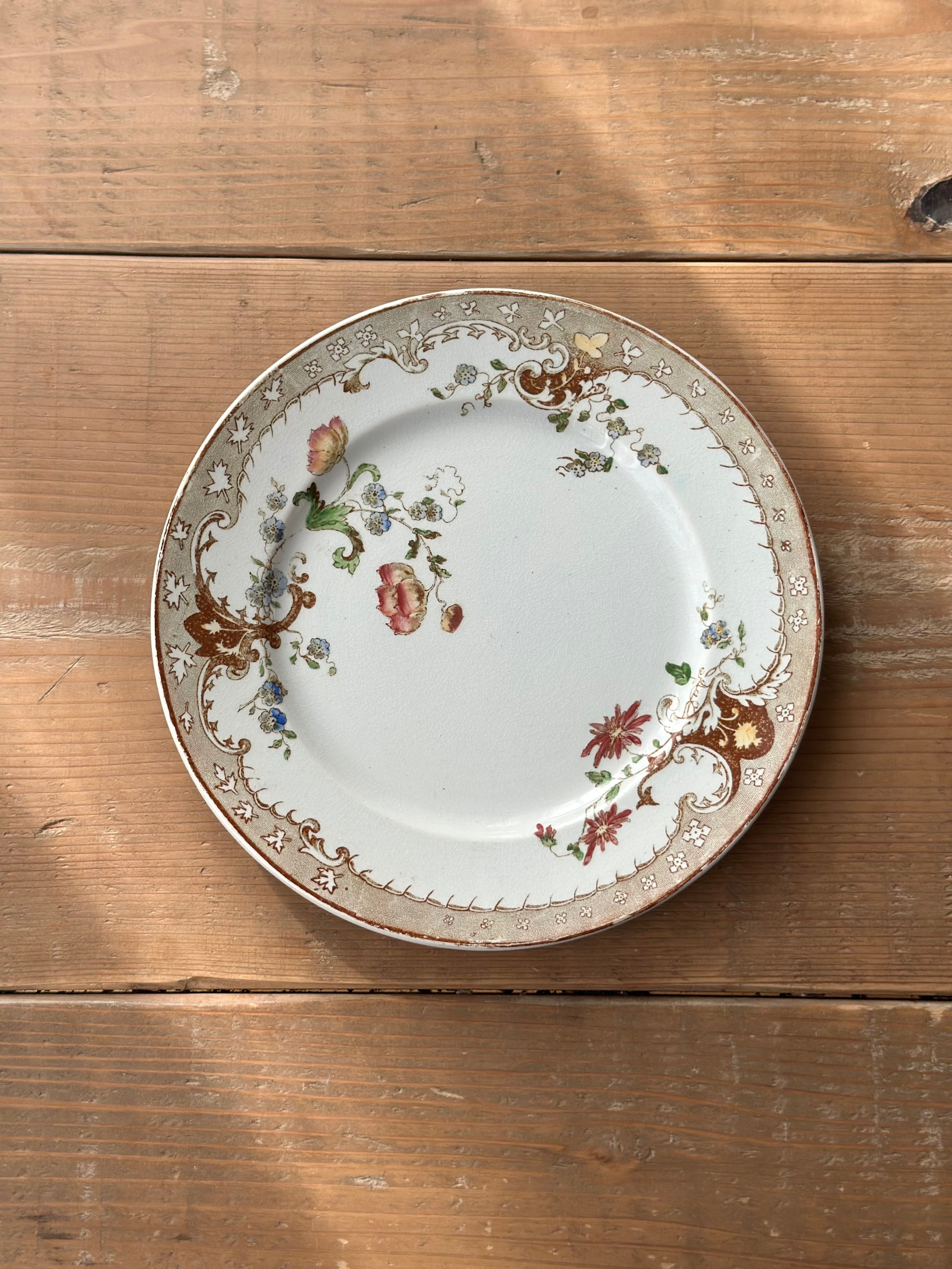 Creil et Montereau クレイユモントロー / “ALEXANDRA” 色付けされた花柄 平皿プレート d