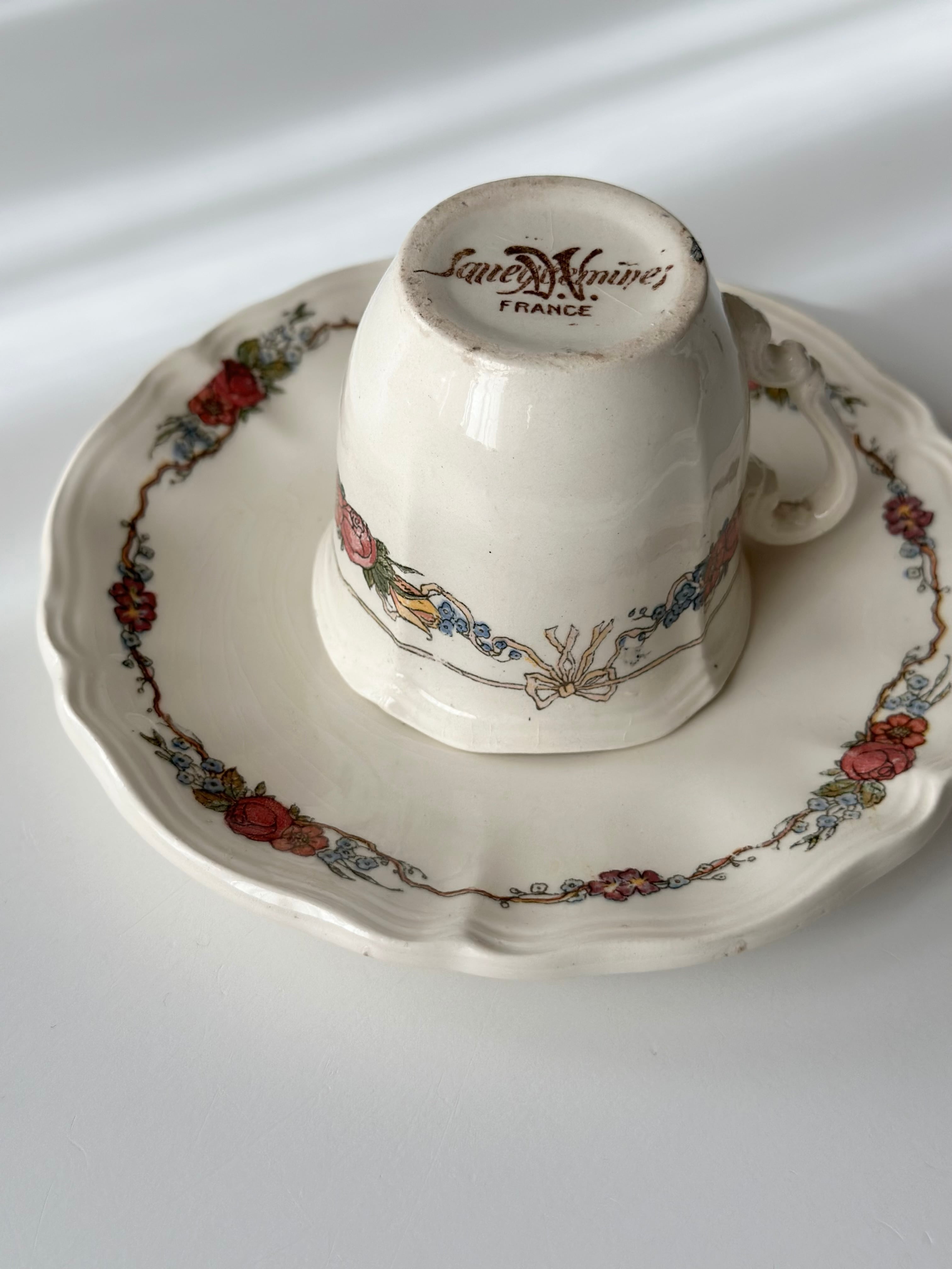 Sarreguemines サルグミンヌ / “OBERNAI” リボンとお花のデミタスカップ&ソーサー