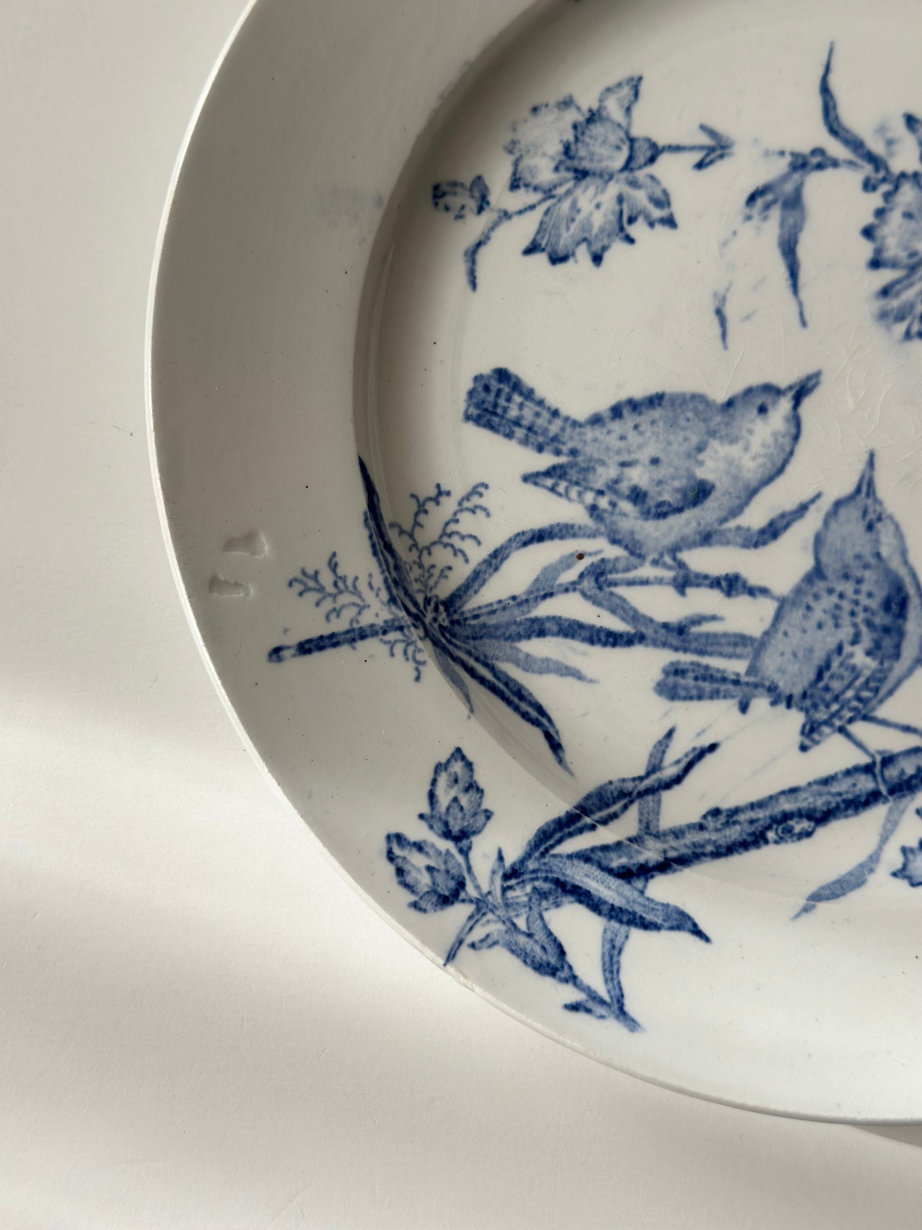 リムの内側に構図を寄せた控えめなデザインは、アンティークらしい落ち着いた佇まい。