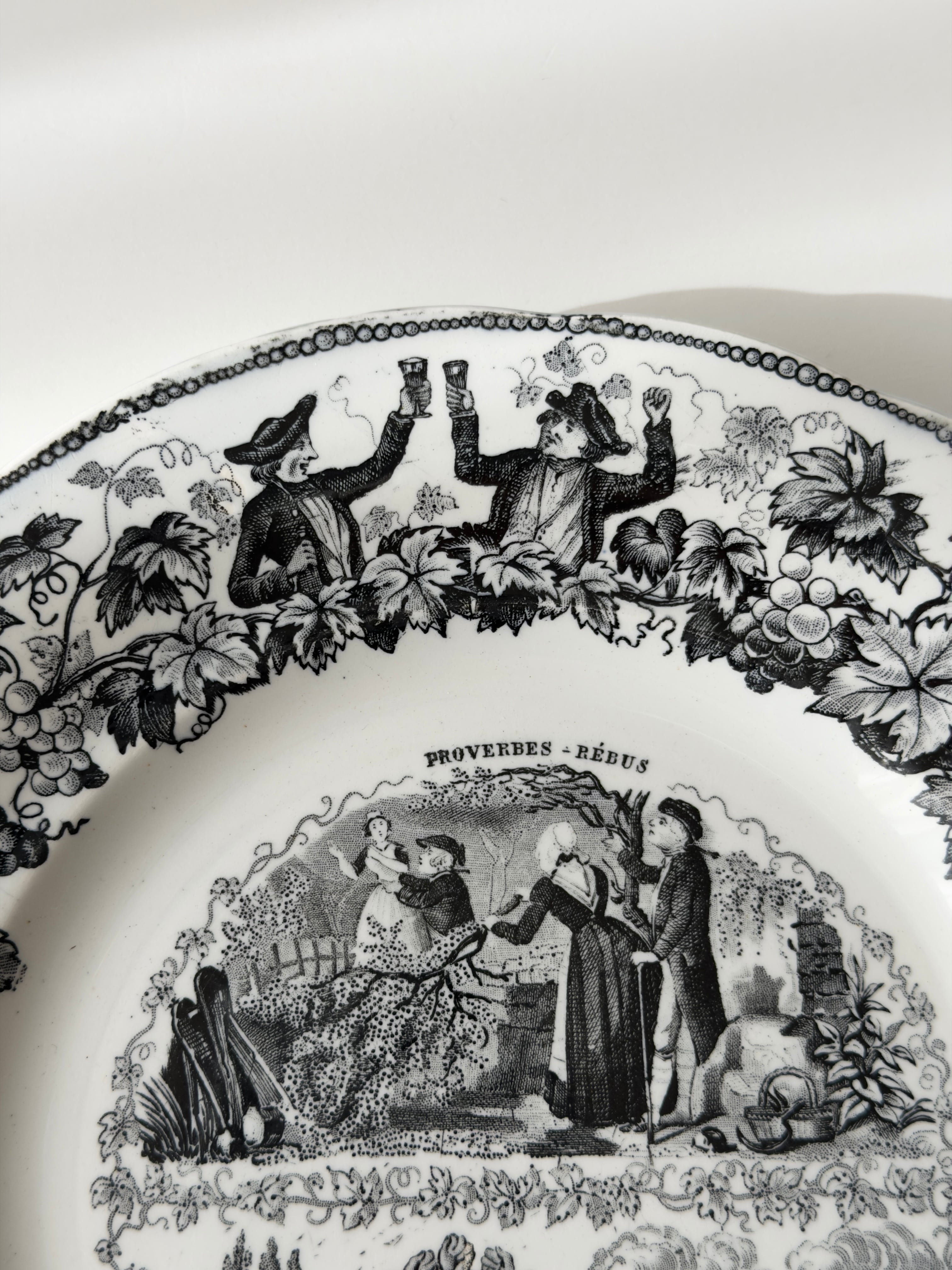 Creil et Montereau クレイユモントロー / “Proverbes Rébus” 謎解き絵皿 グリザイユプレート