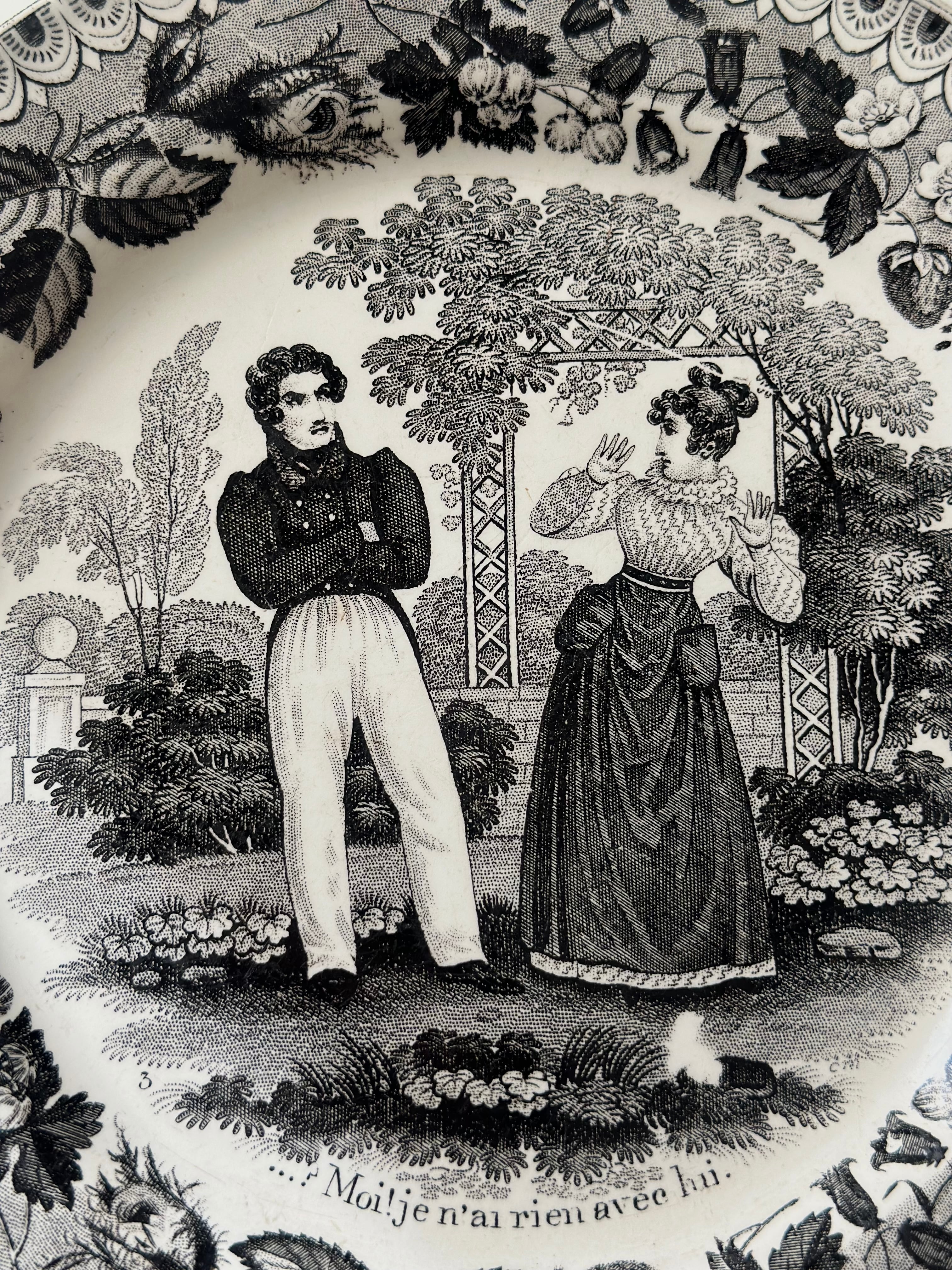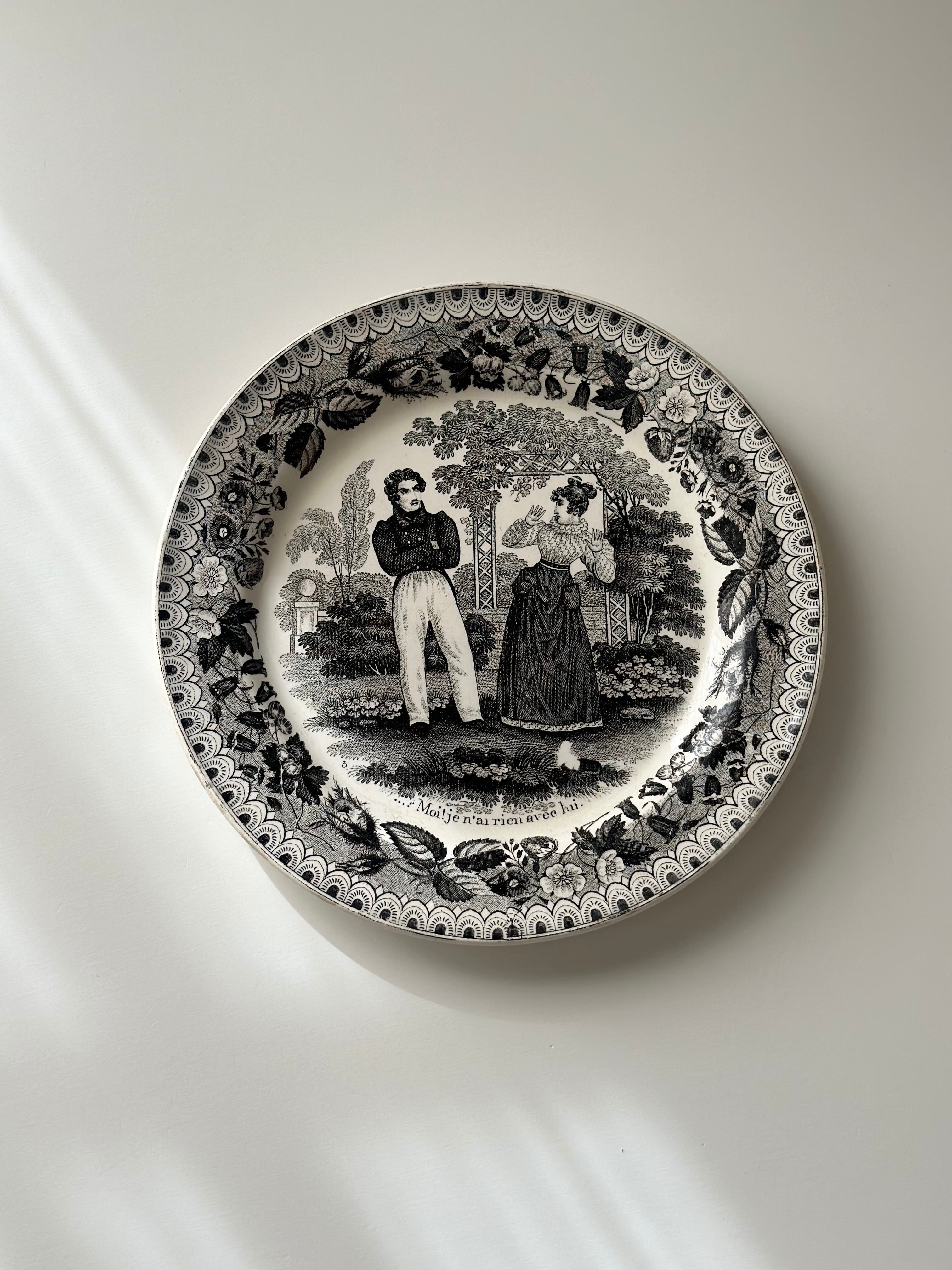 Choisy le roi ショワジールロワ / 男女のグリザイユプレート 1824-1835s