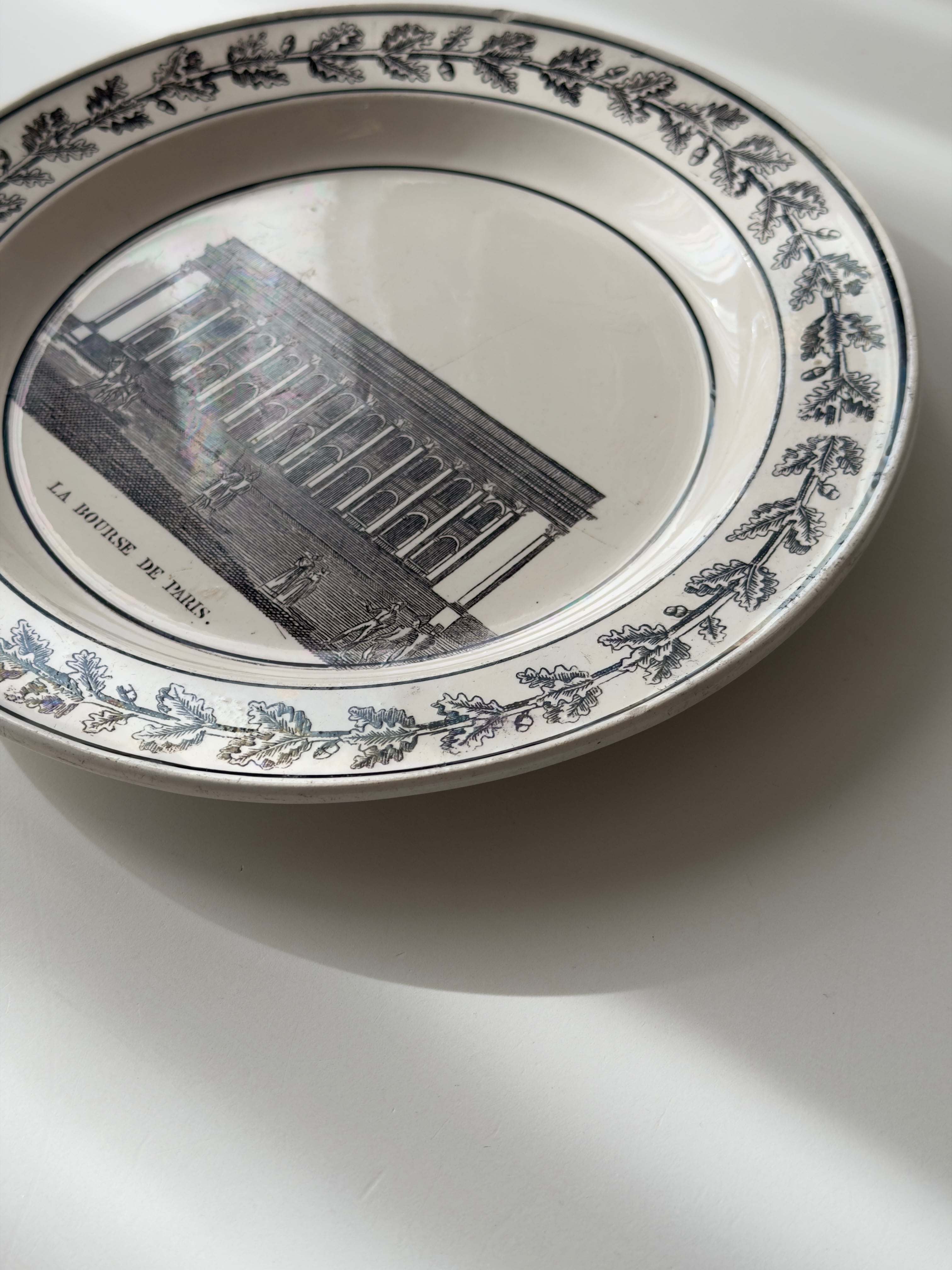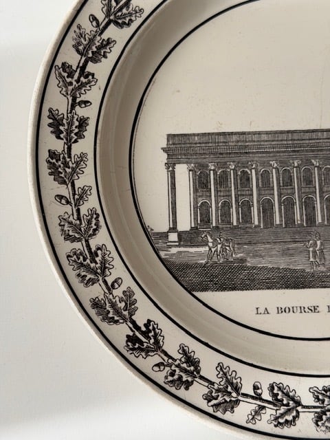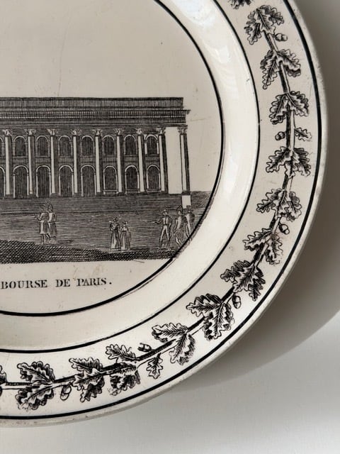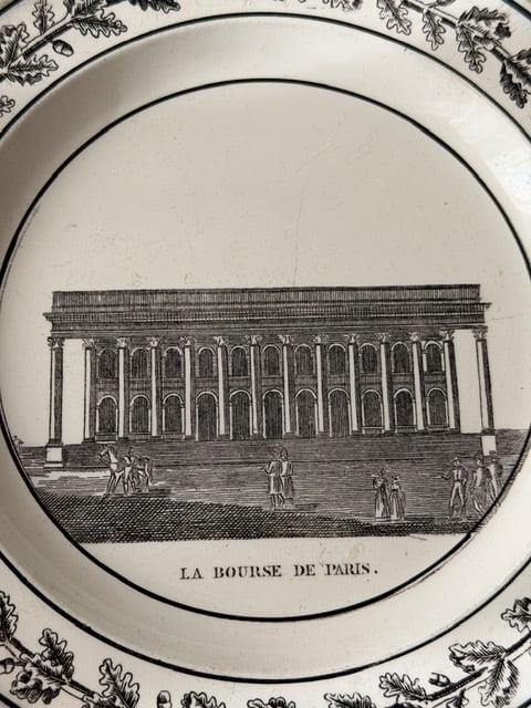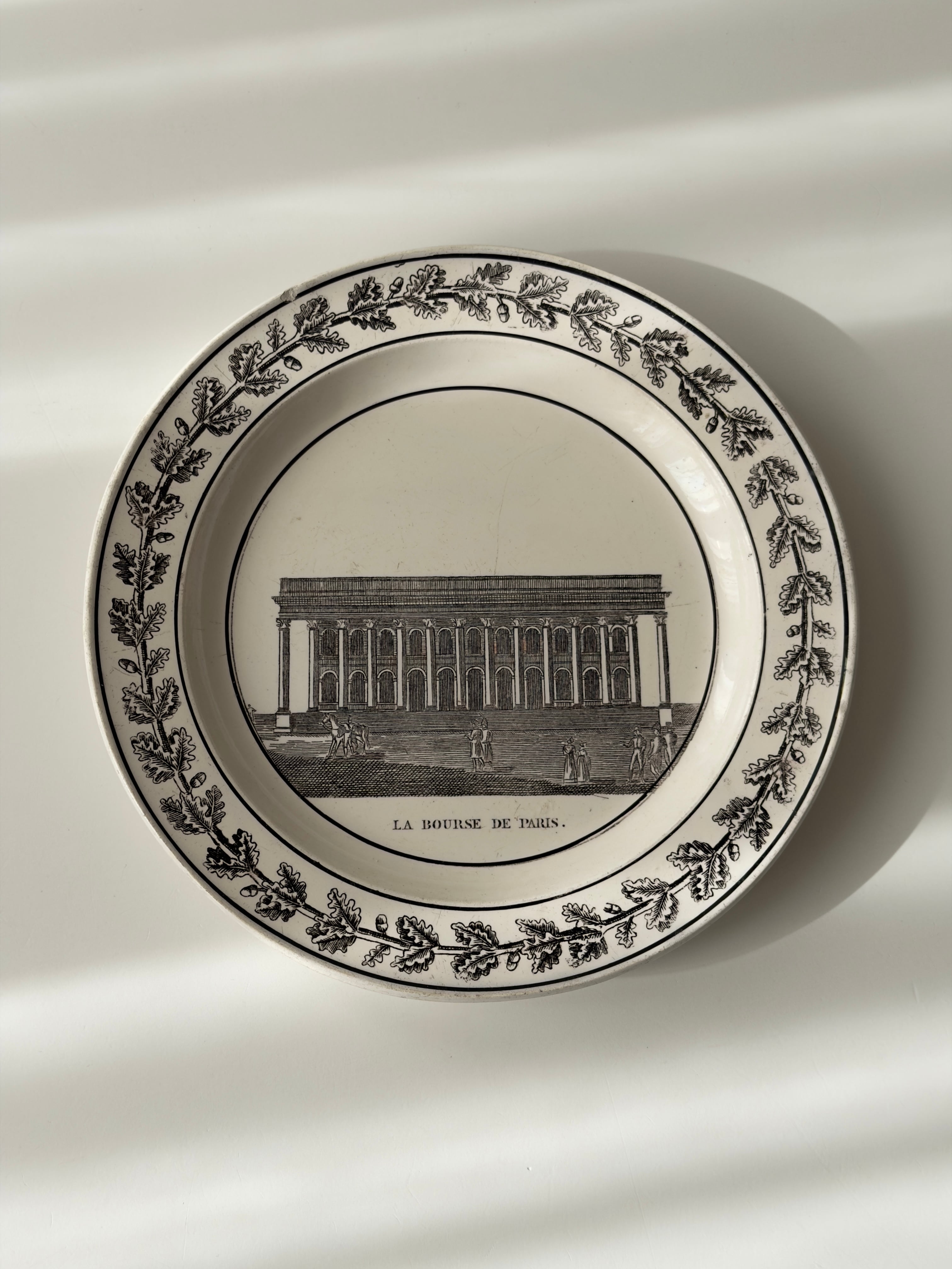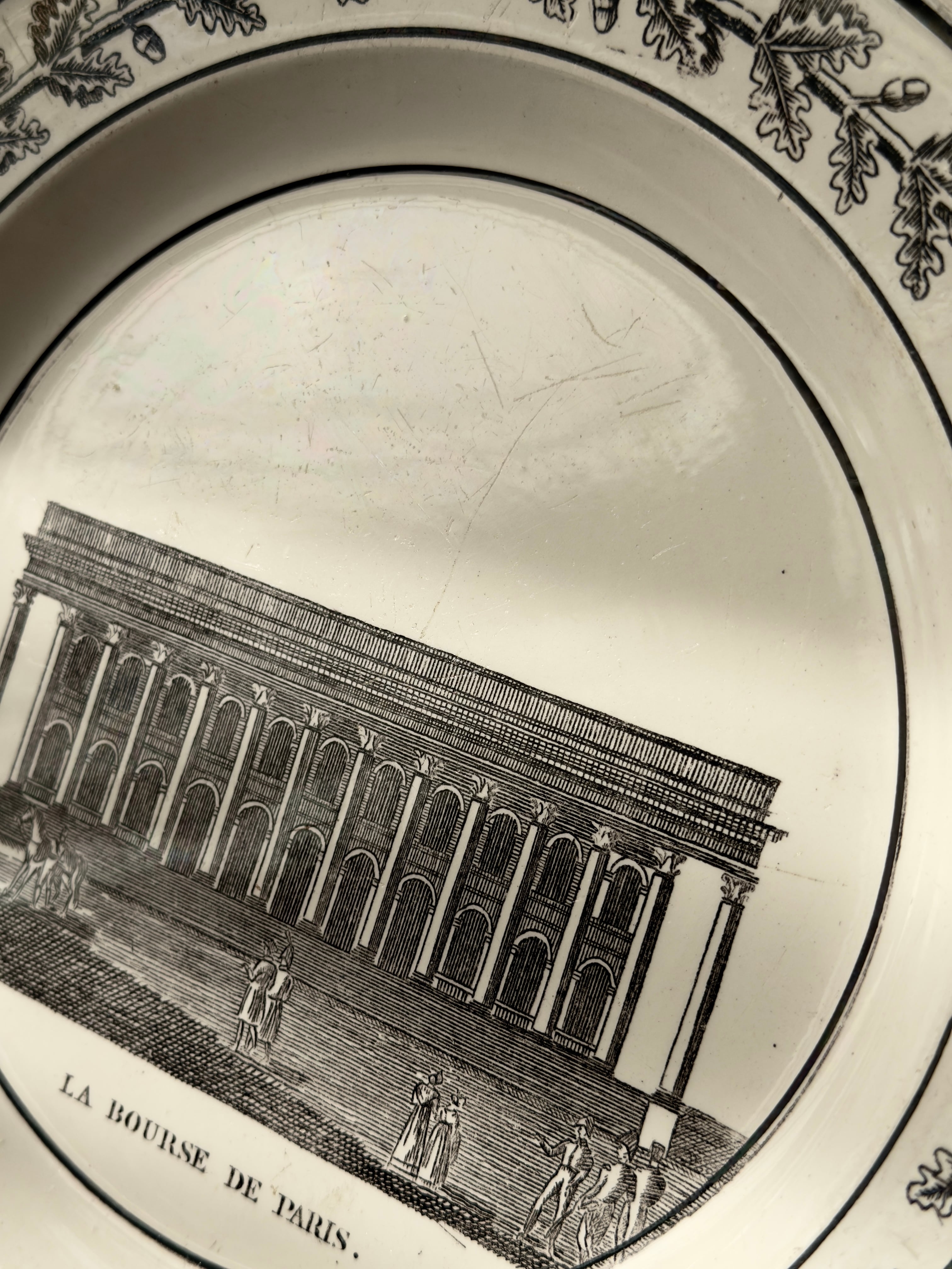 Creil et Montereau クレイユモントロー / “LA BOURSE DE PARIS” グリザイユプレート 1800-1825s