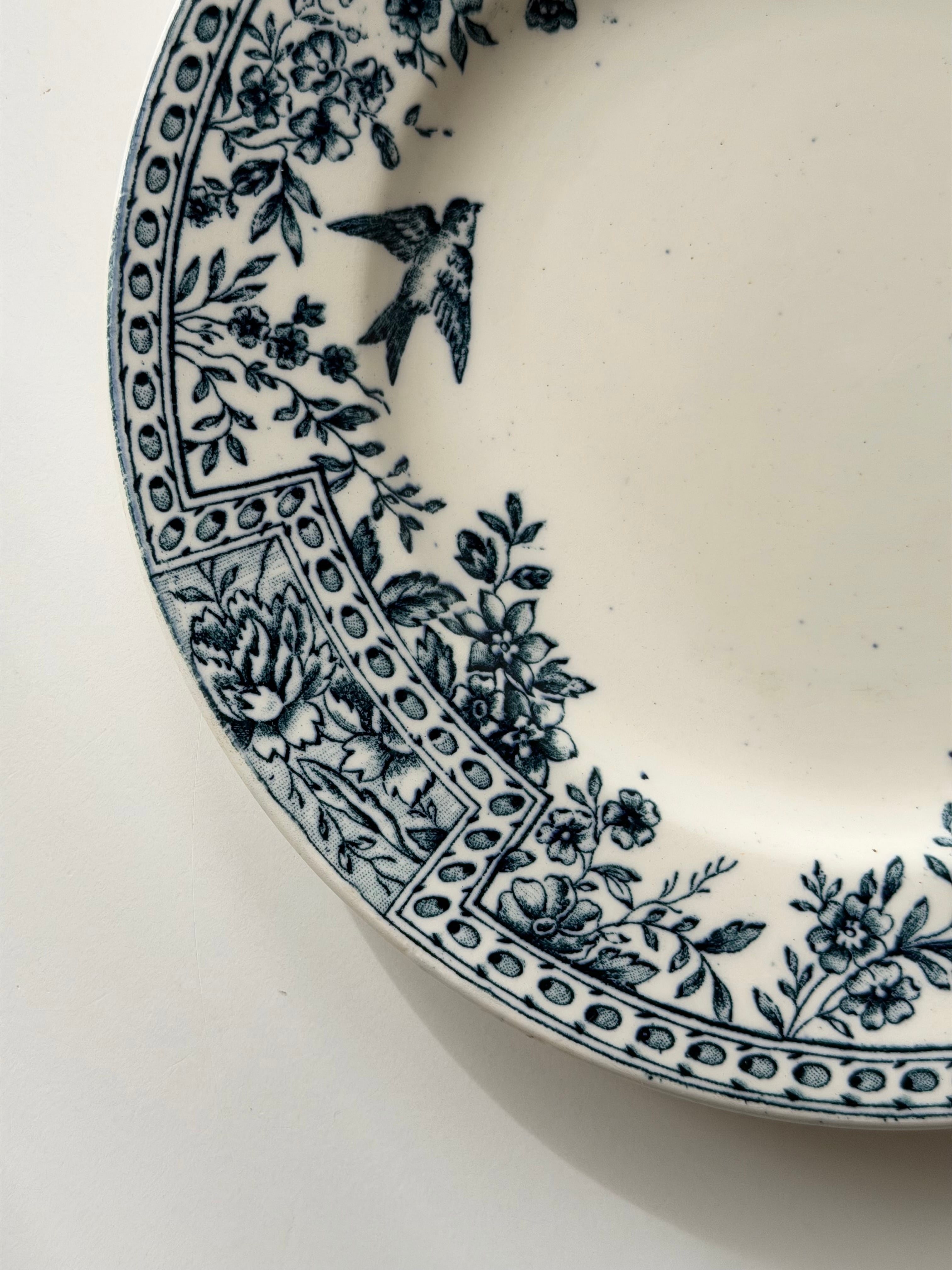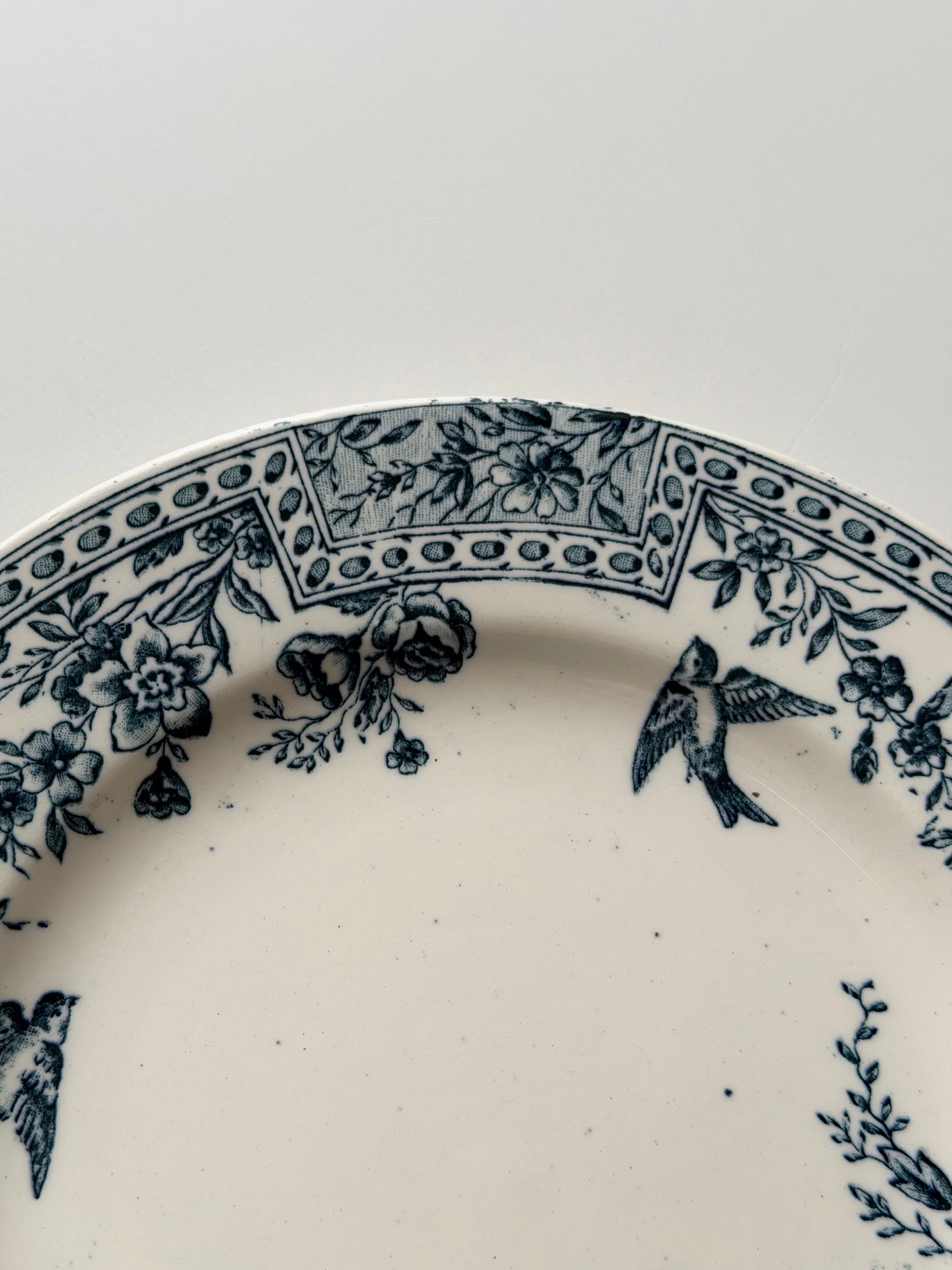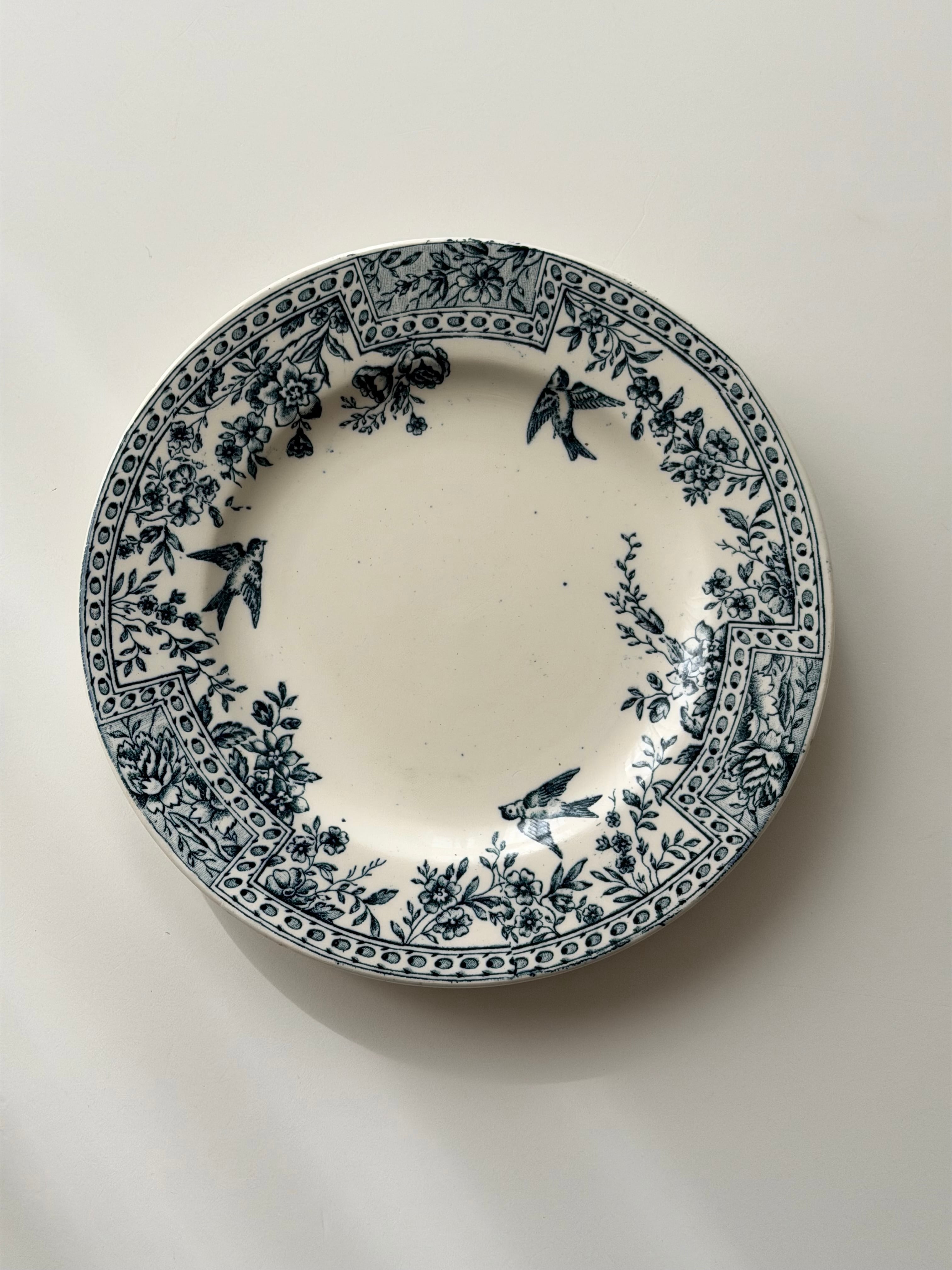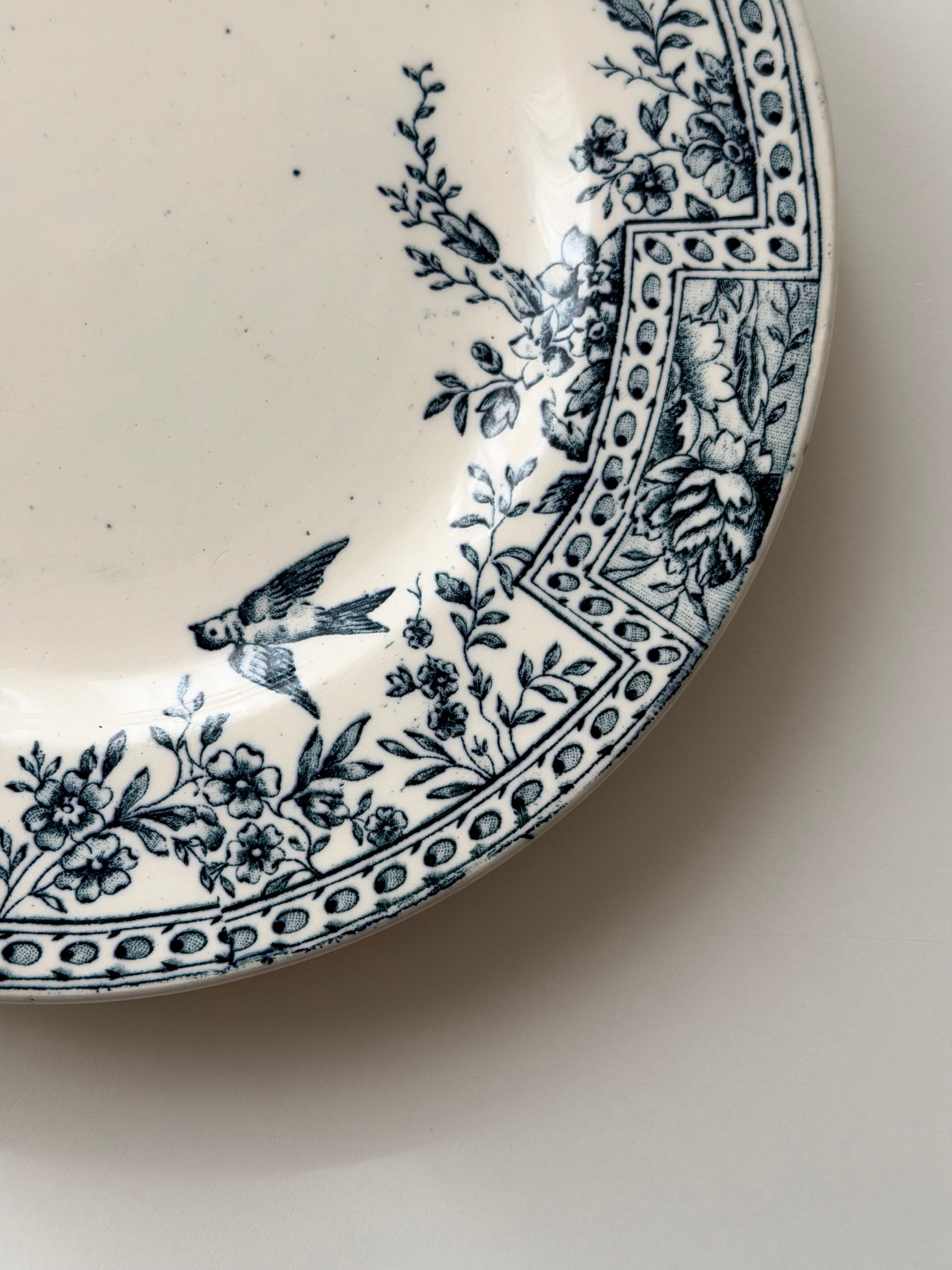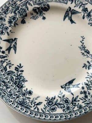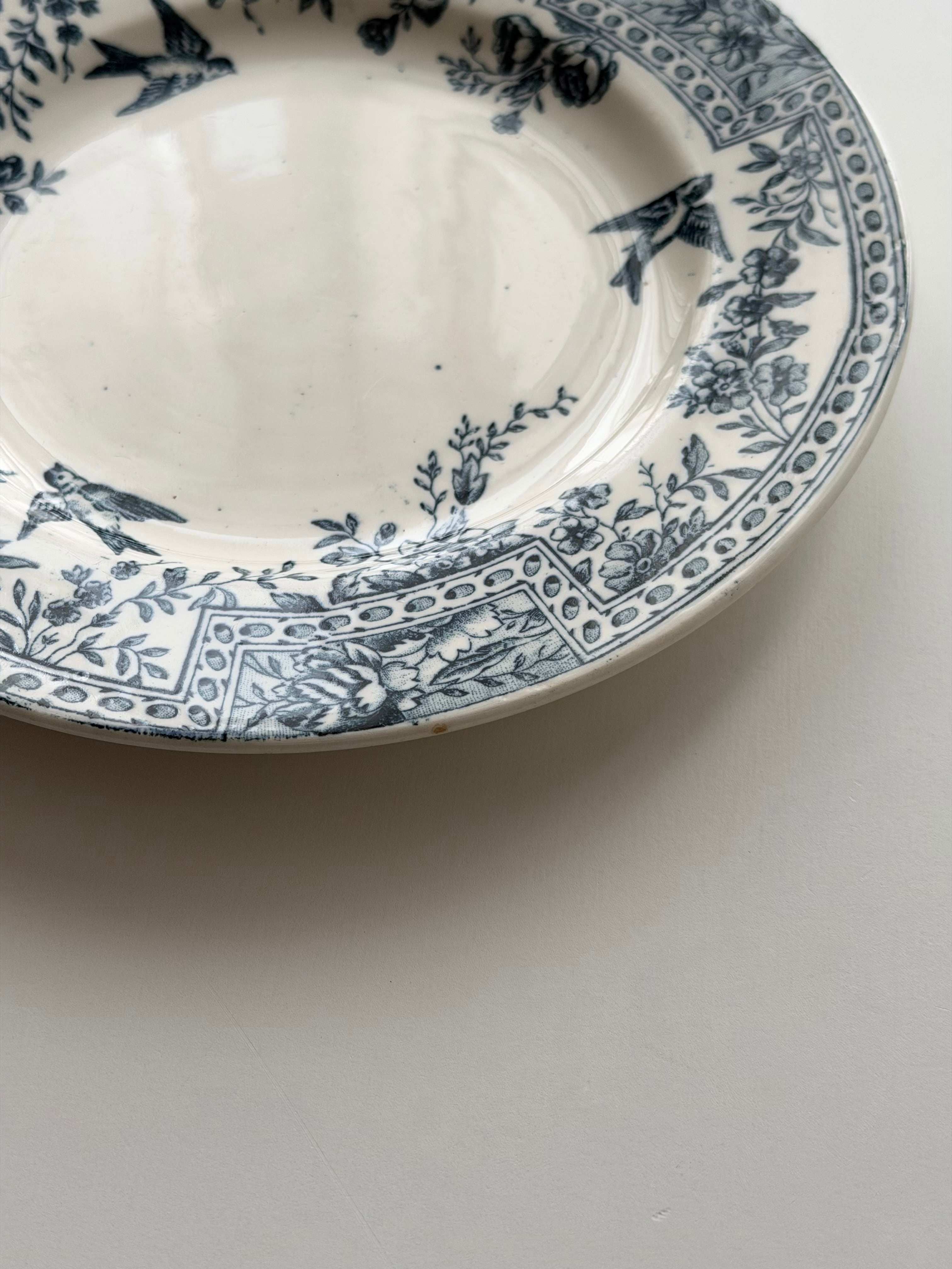 リムには花々と幾何学パターンが丁寧に組み合わされ、クラシックな表情の中にも小鳥の舞う軽やかさもあり、可愛らしさが存分に感じられます。