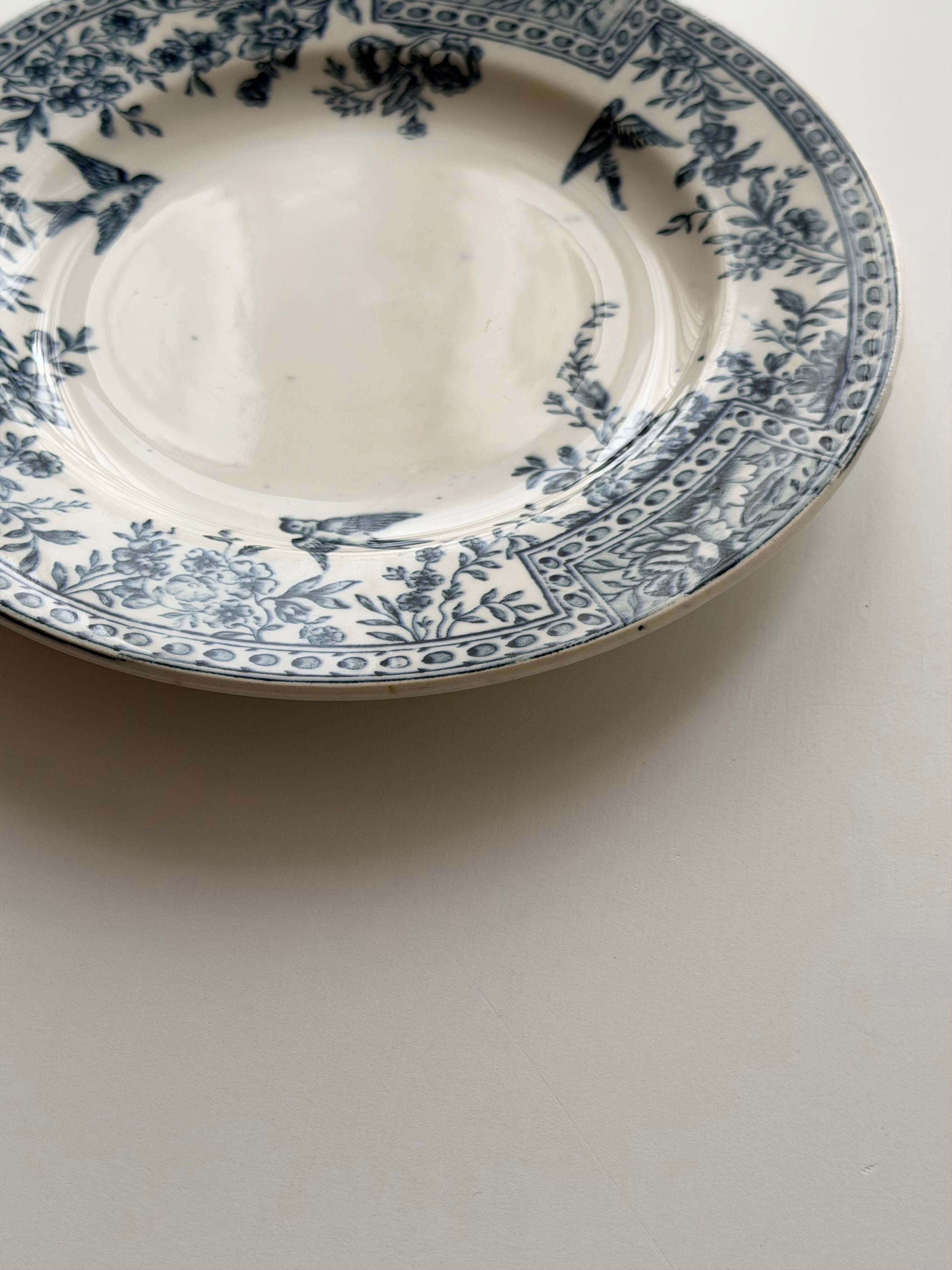 リムには花々と幾何学パターンが丁寧に組み合わされ、クラシックな表情の中にも小鳥の舞う軽やかさもあり、可愛らしさが存分に感じられます。