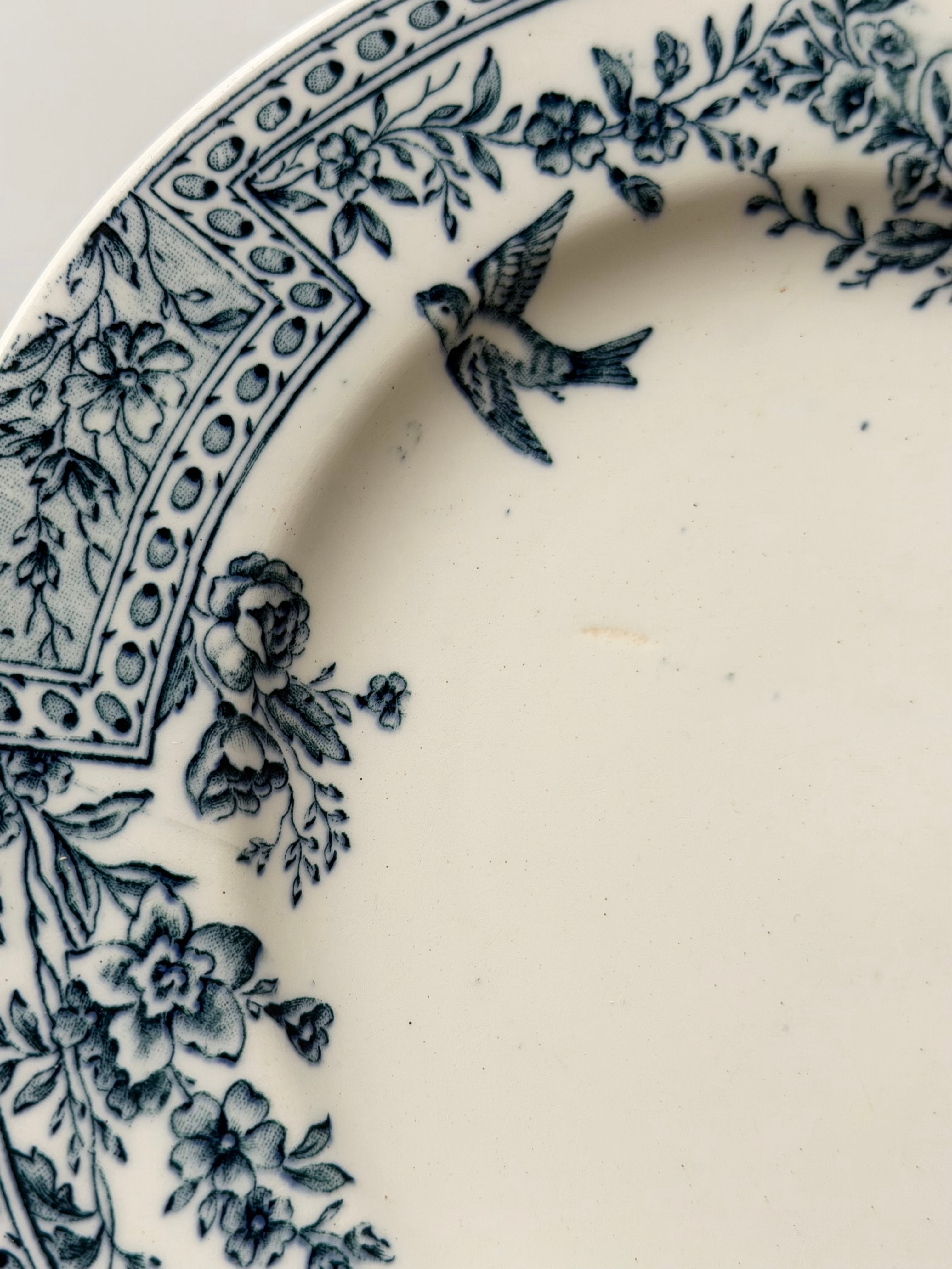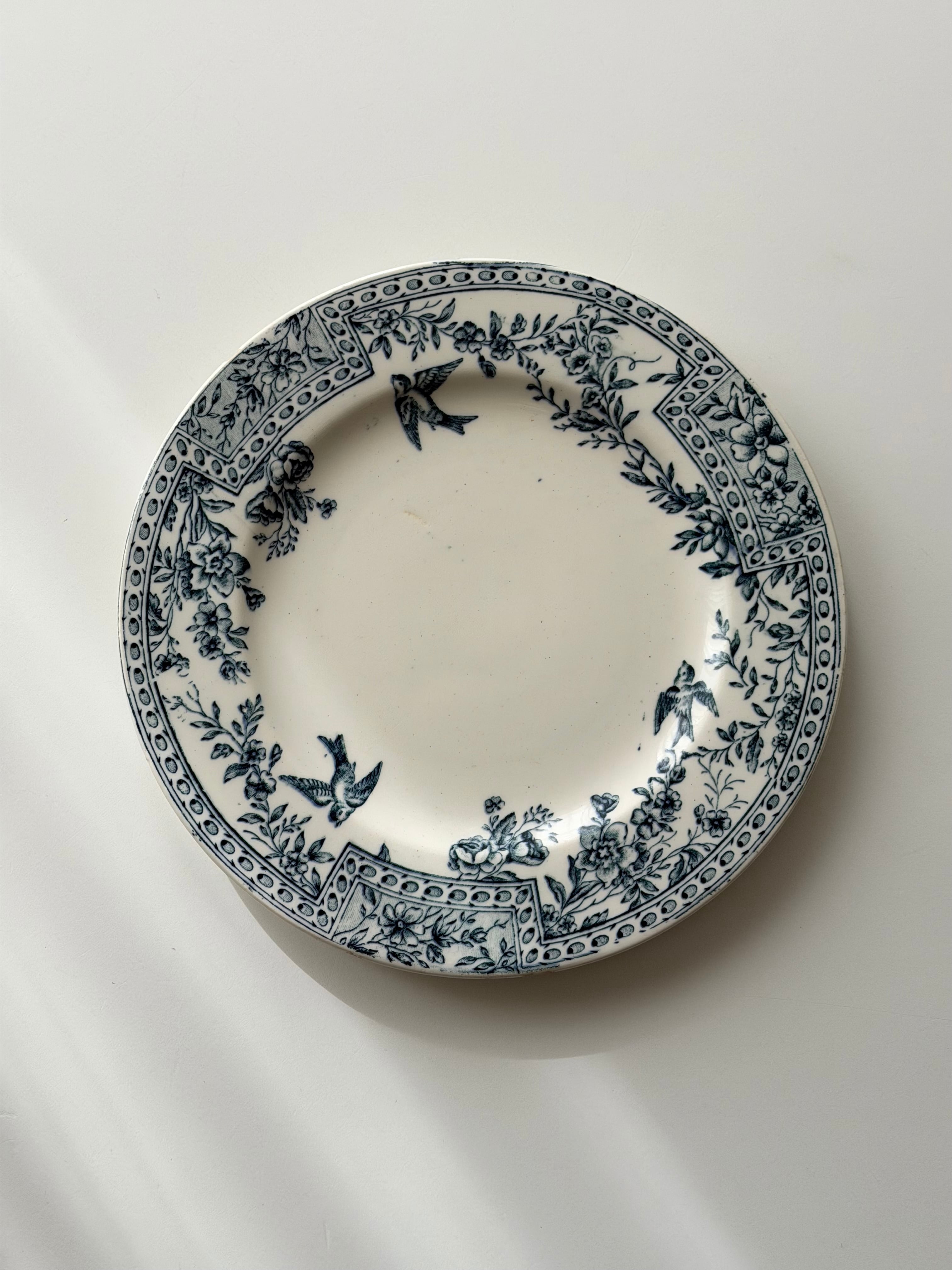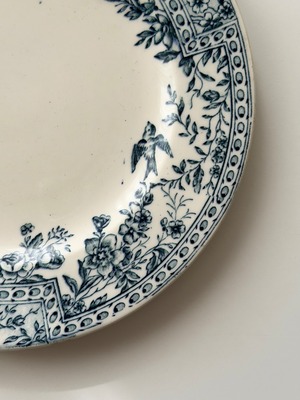 リムには花々と幾何学パターンが丁寧に組み合わされ、クラシックな表情の中にも小鳥の舞う軽やかさもあり、可愛らしさが存分に感じられます。