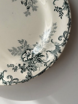 こちらも ショワジールロワ窯《Floreal》図案の作行きに、販売店刻印のみが押されたものと見られます。