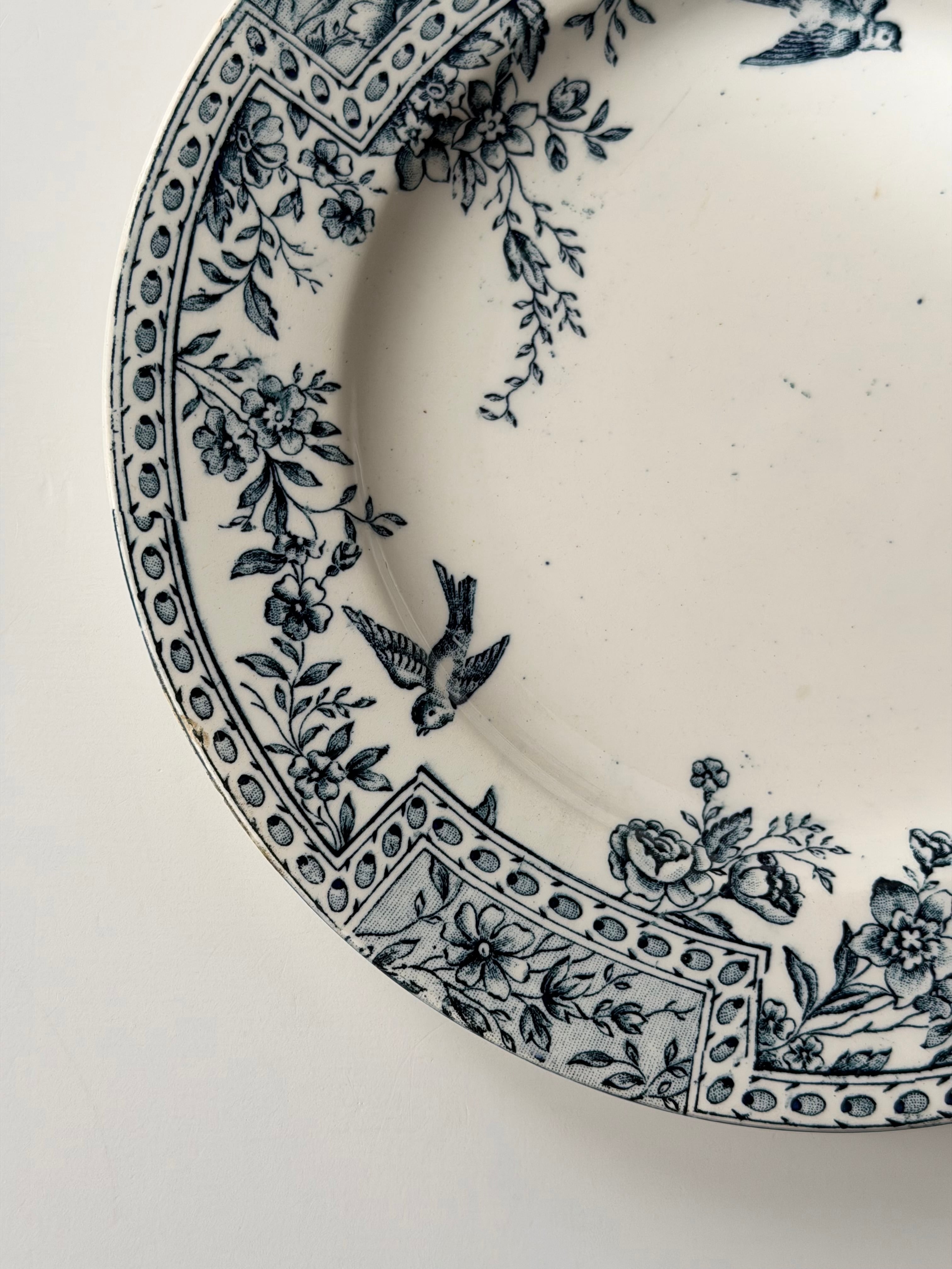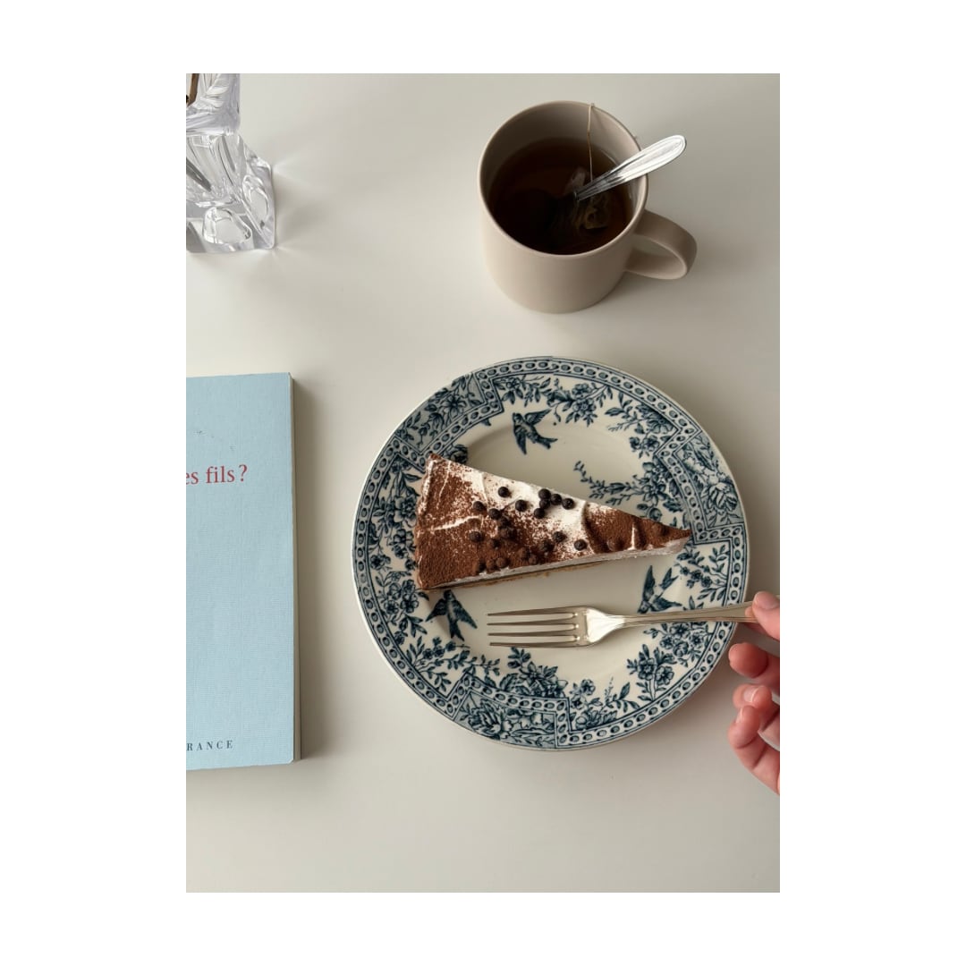 リムには花々と幾何学パターンが丁寧に組み合わされ、クラシックな表情の中にも小鳥の舞う軽やかさもあり、可愛らしさが存分に感じられます。