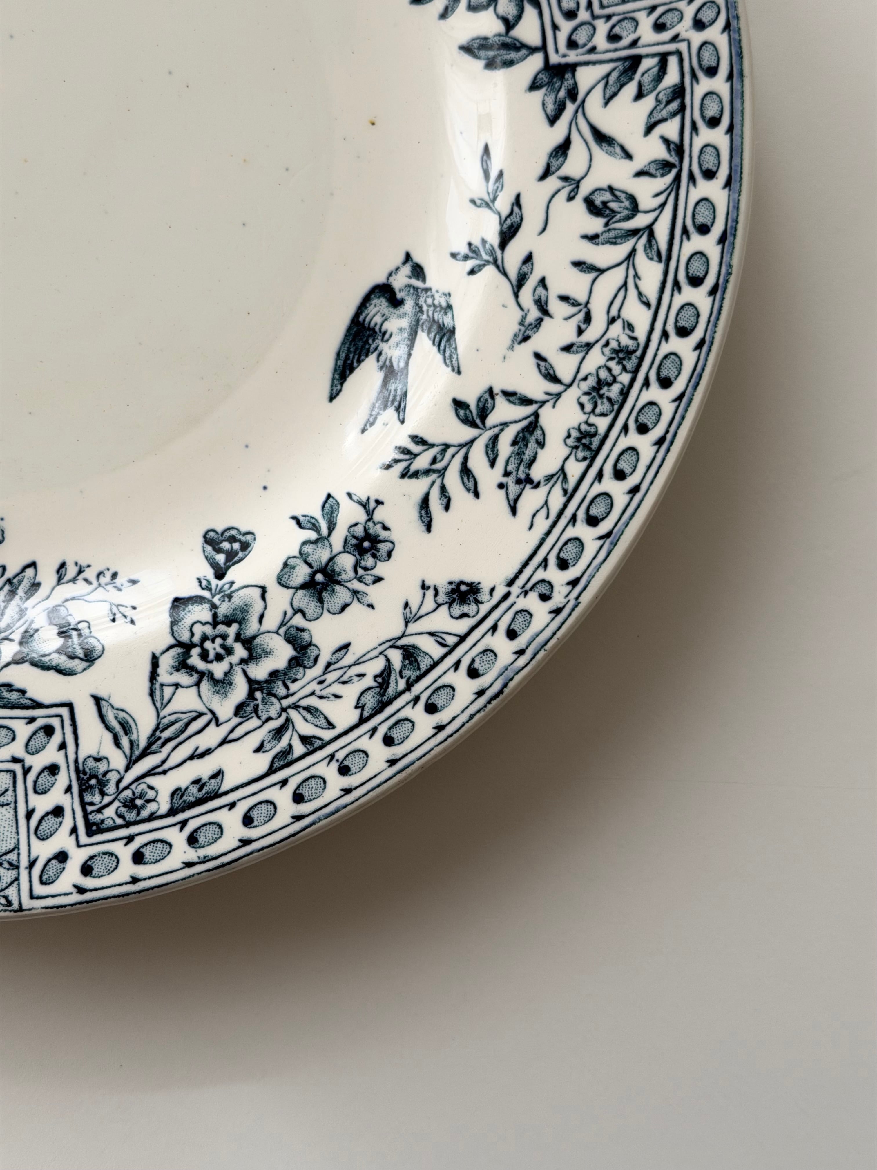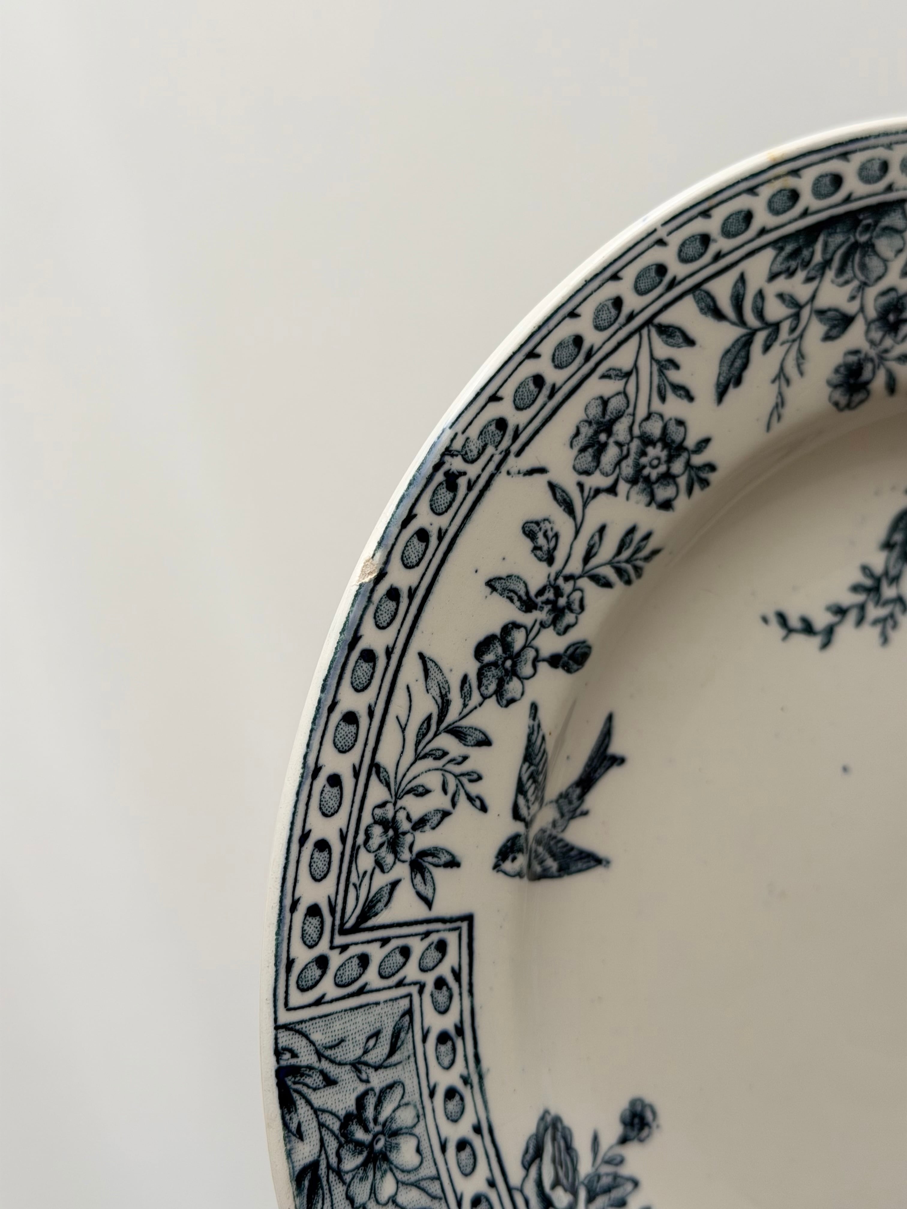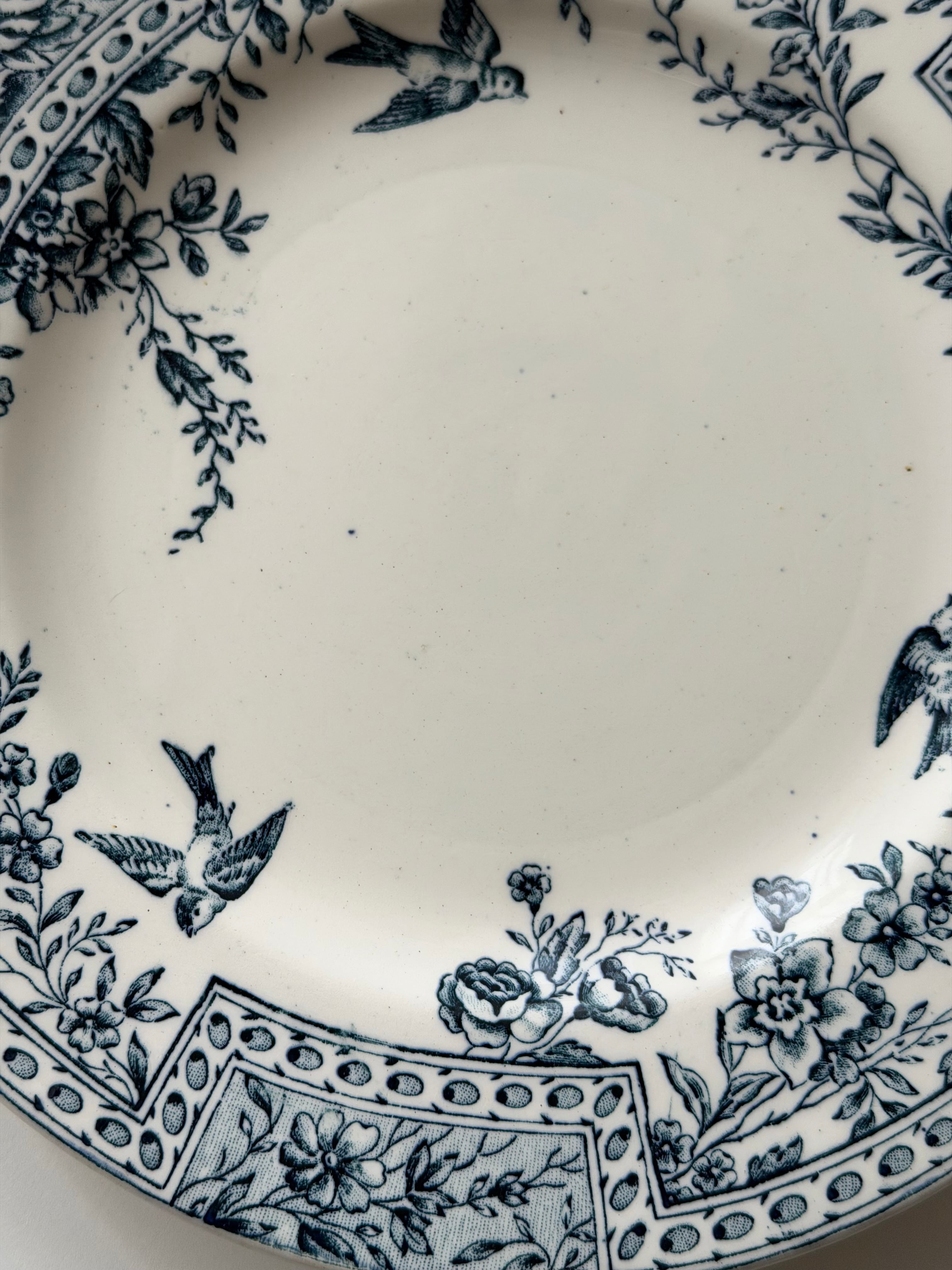 リムには花々と幾何学パターンが丁寧に組み合わされ、クラシックな表情の中にも小鳥の舞う軽やかさもあり、可愛らしさが存分に感じられます。