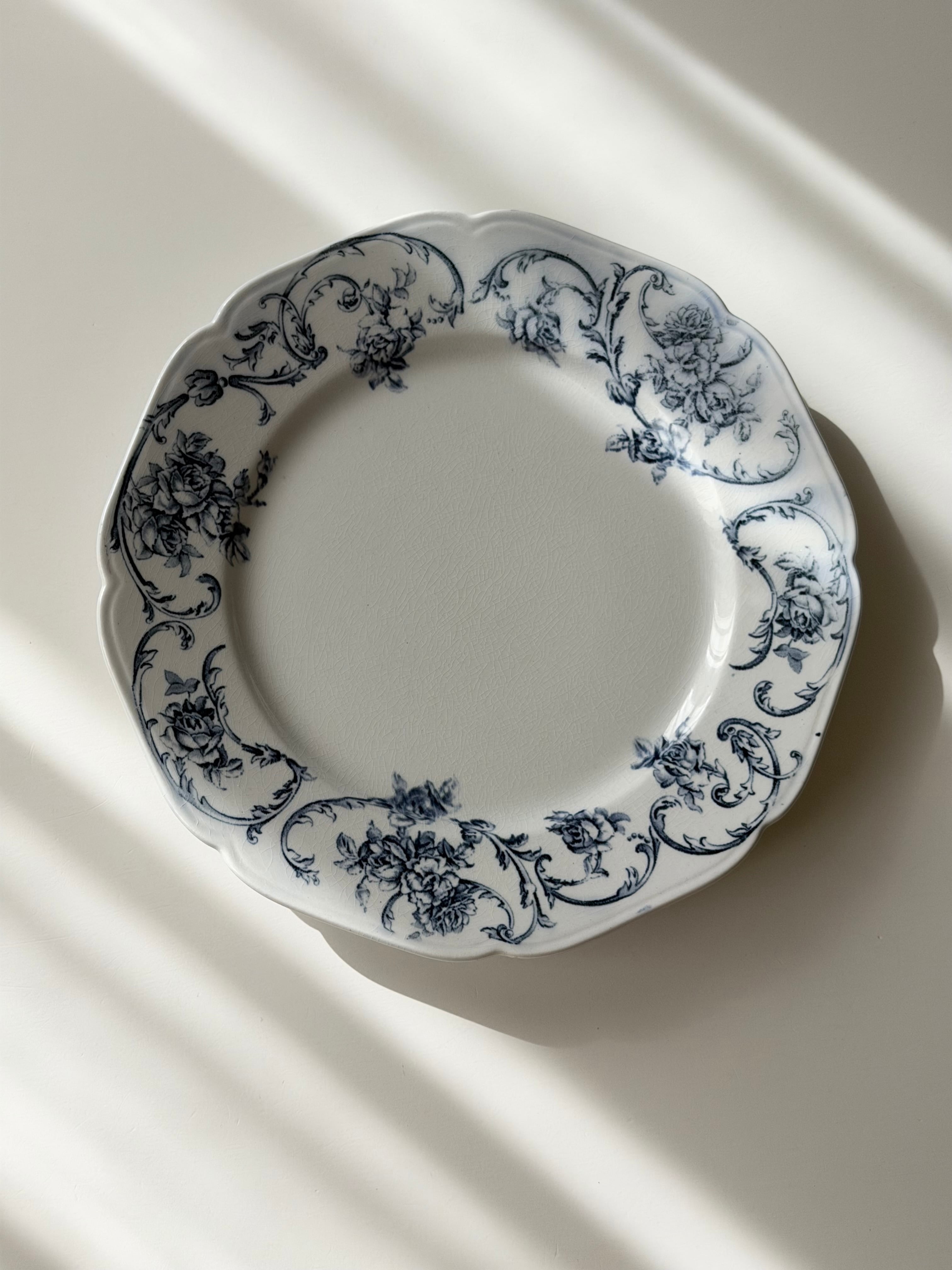 Petrus Regout / “ORTUS” 美しい薔薇とロカイユ柄の平皿プレート c