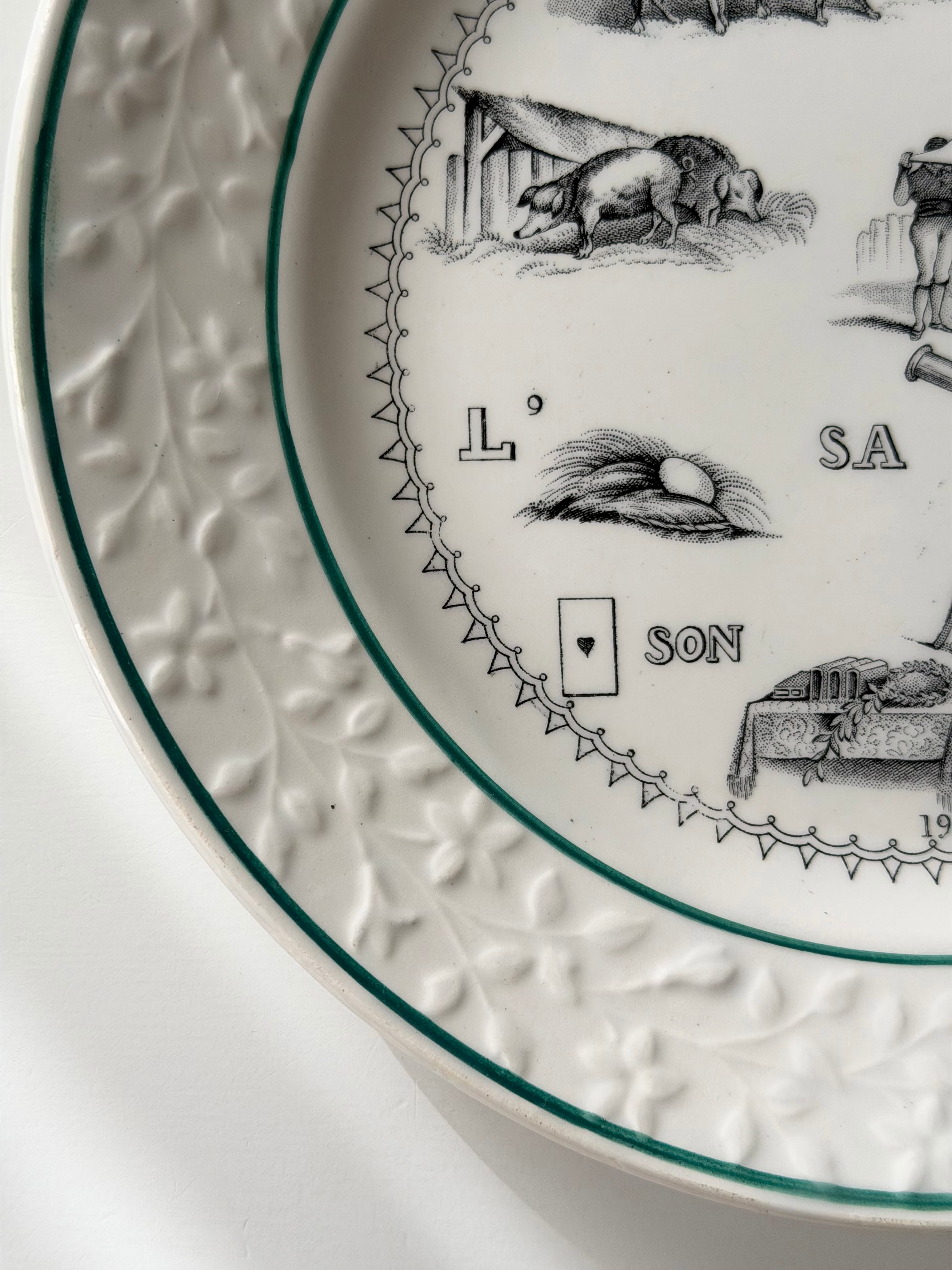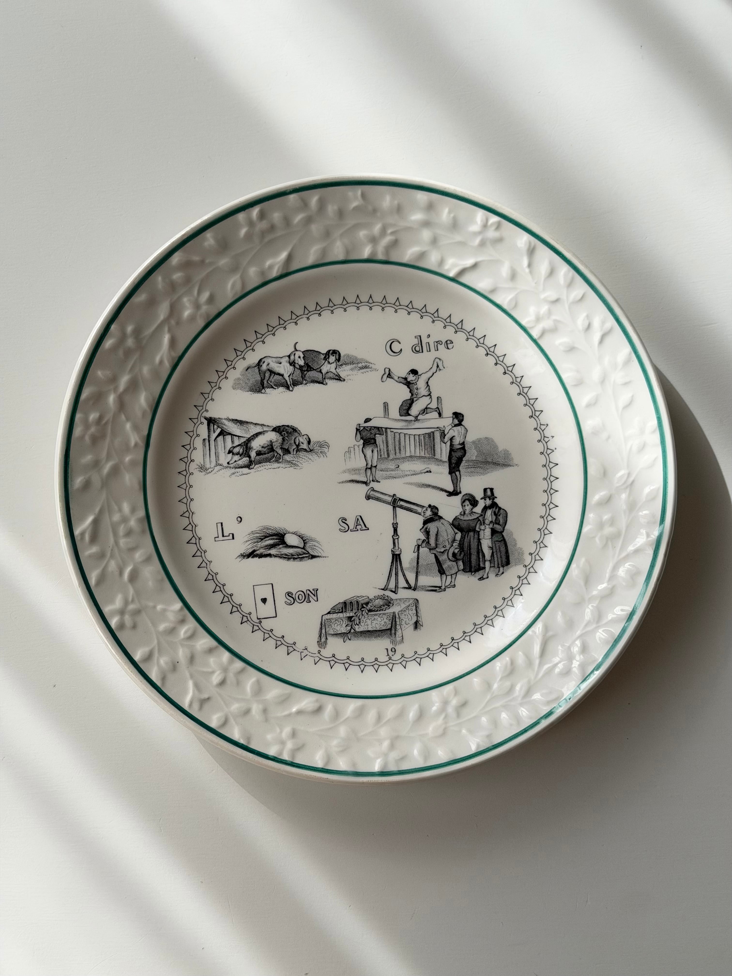 フランス ショワジールロワ窯より、古いrebus (謎解き皿)。