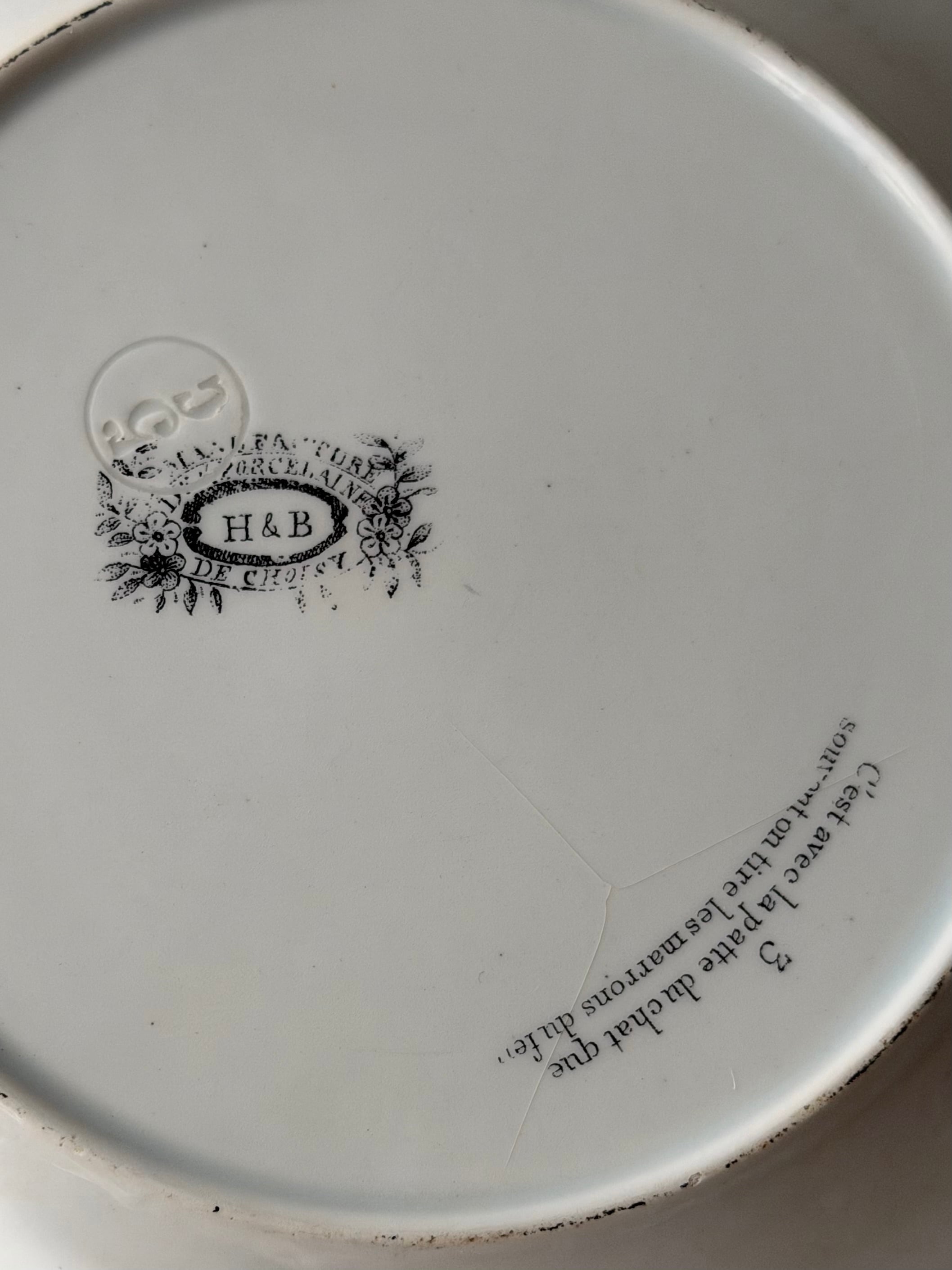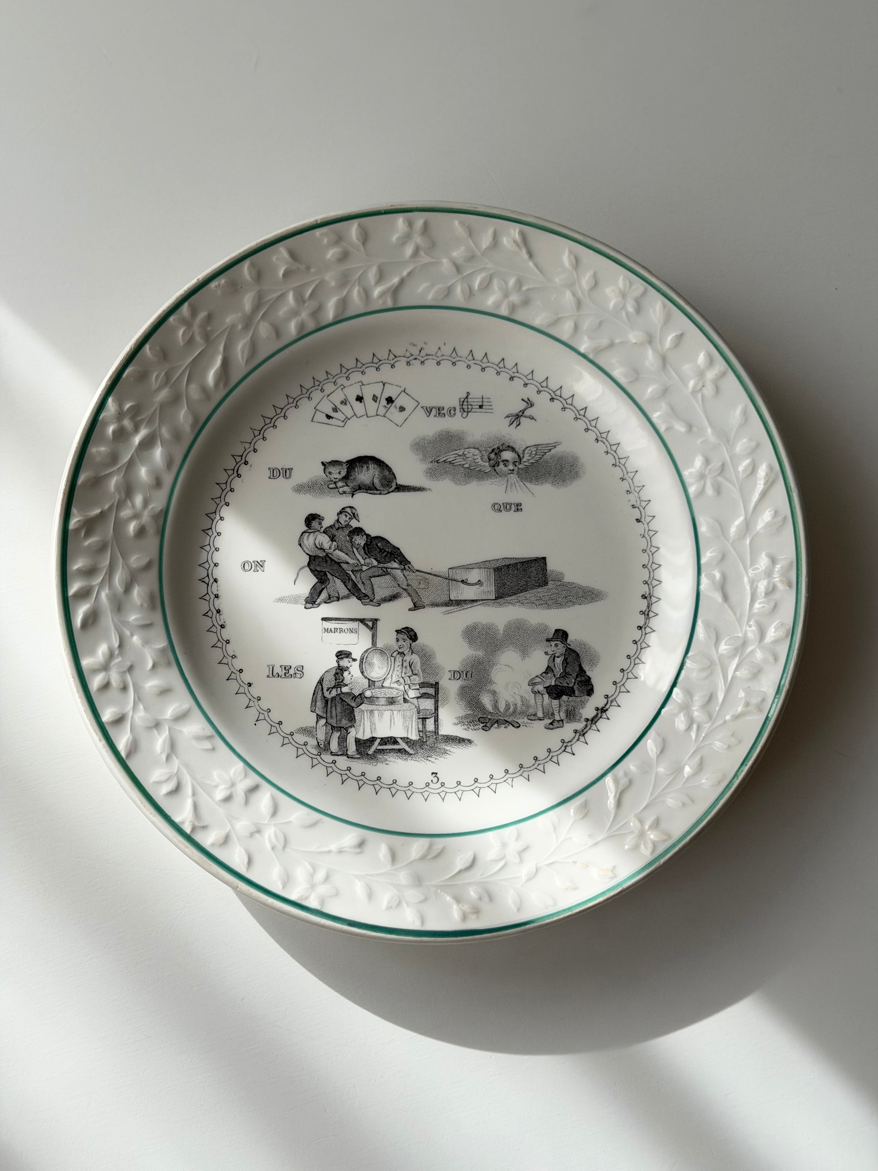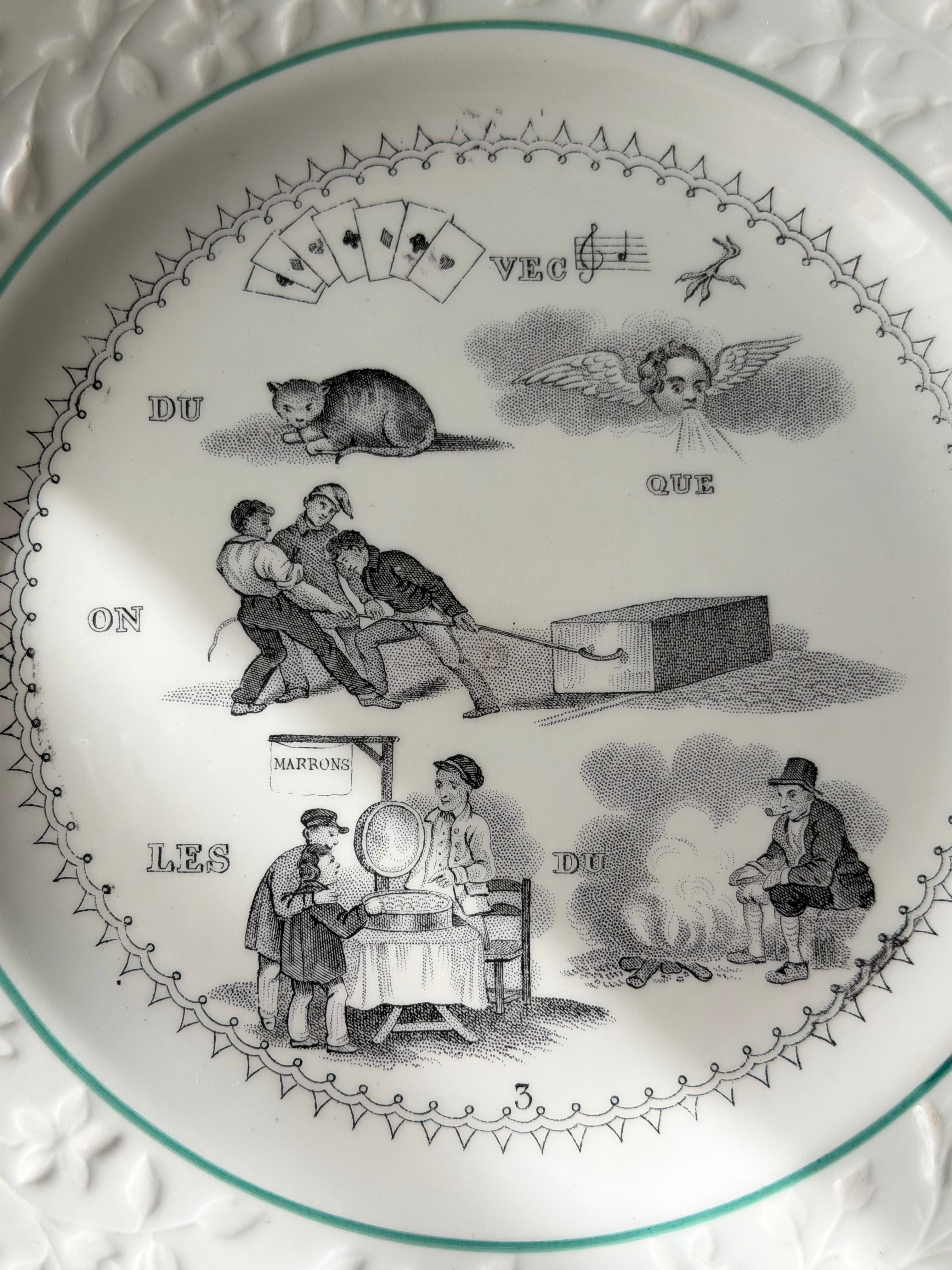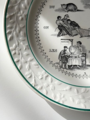 フランス ショワジールロワ窯より、古いrebus (謎解き皿)。