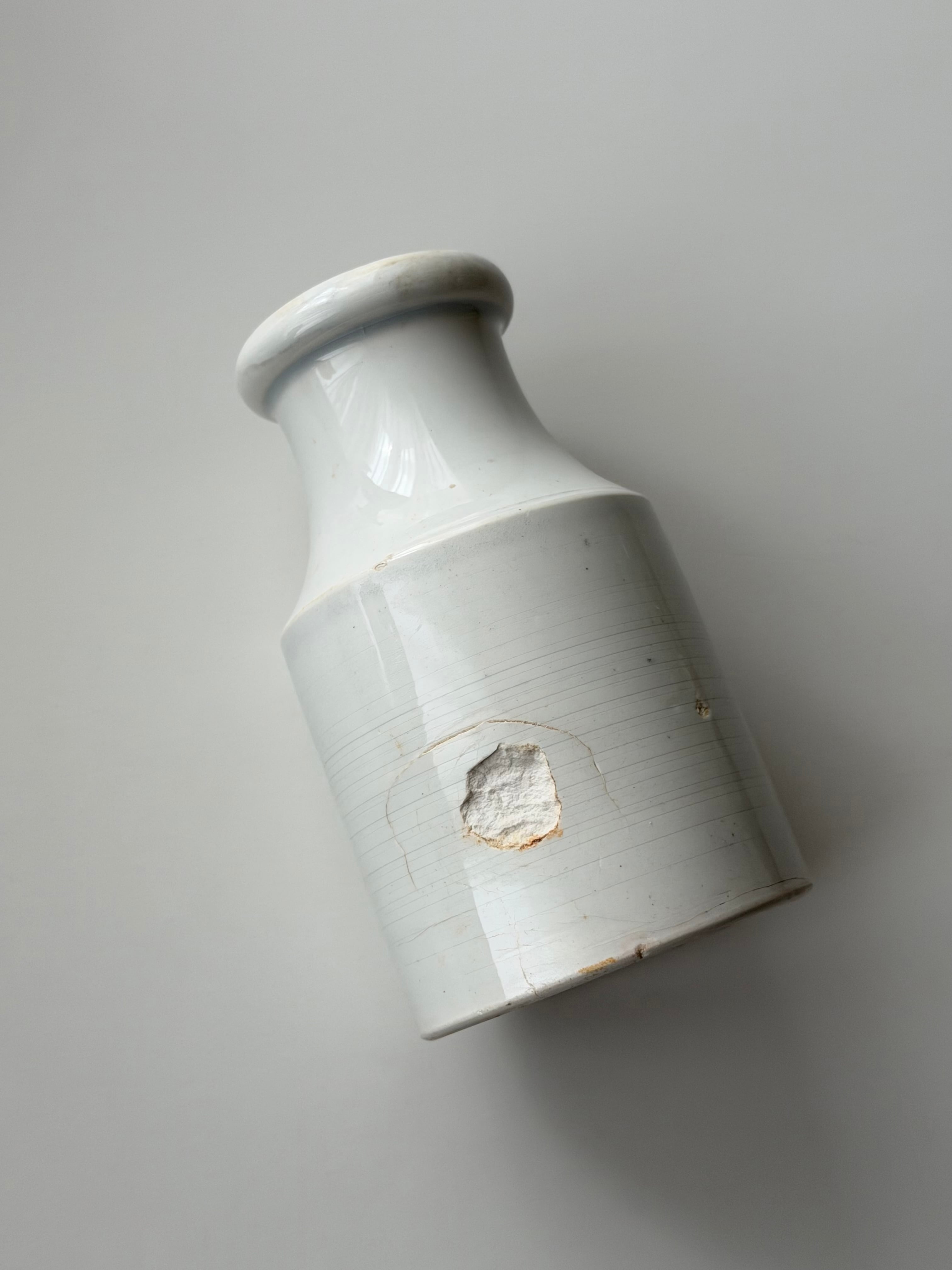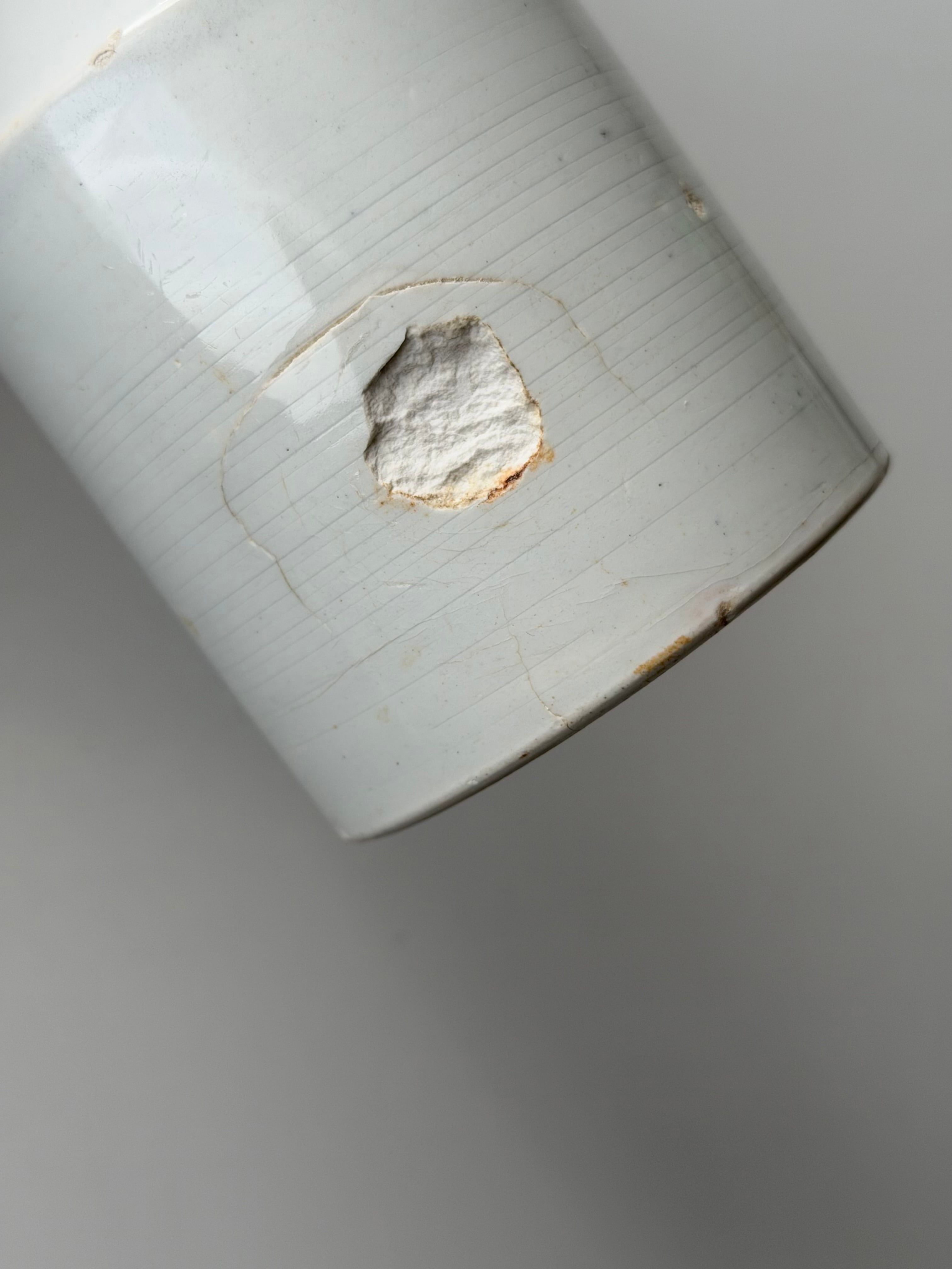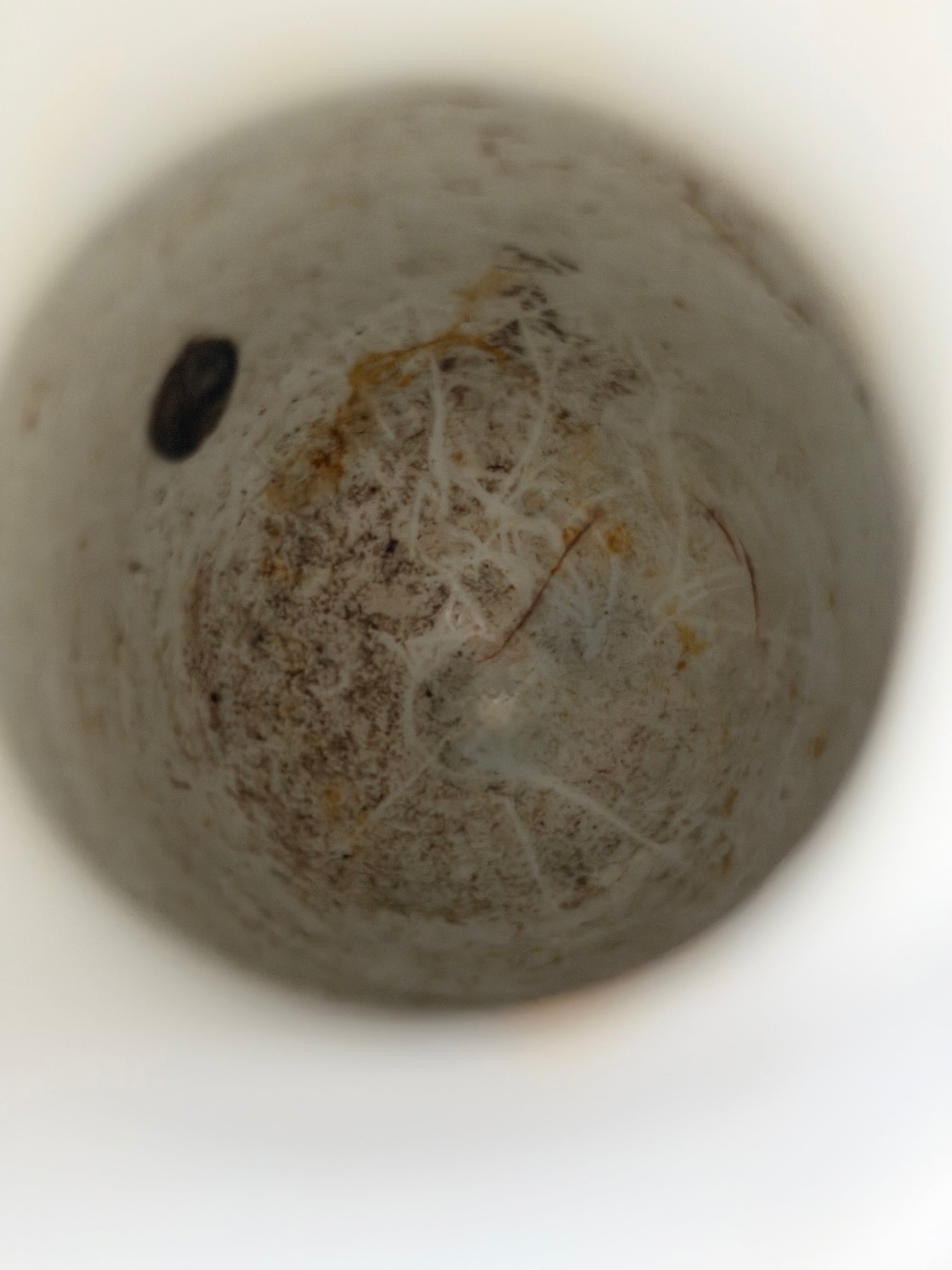 condition: ポット底にカケた釉薬の剥げあり。ポット口から1か所ラインが入っています。ボディ側面にキズ/カケあり。古手の味わいのあるヴィンテージです。