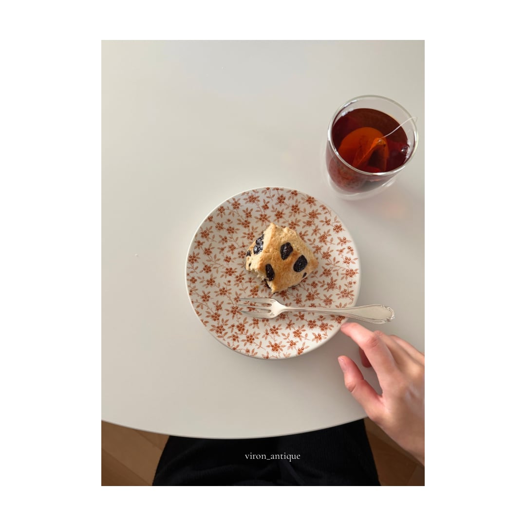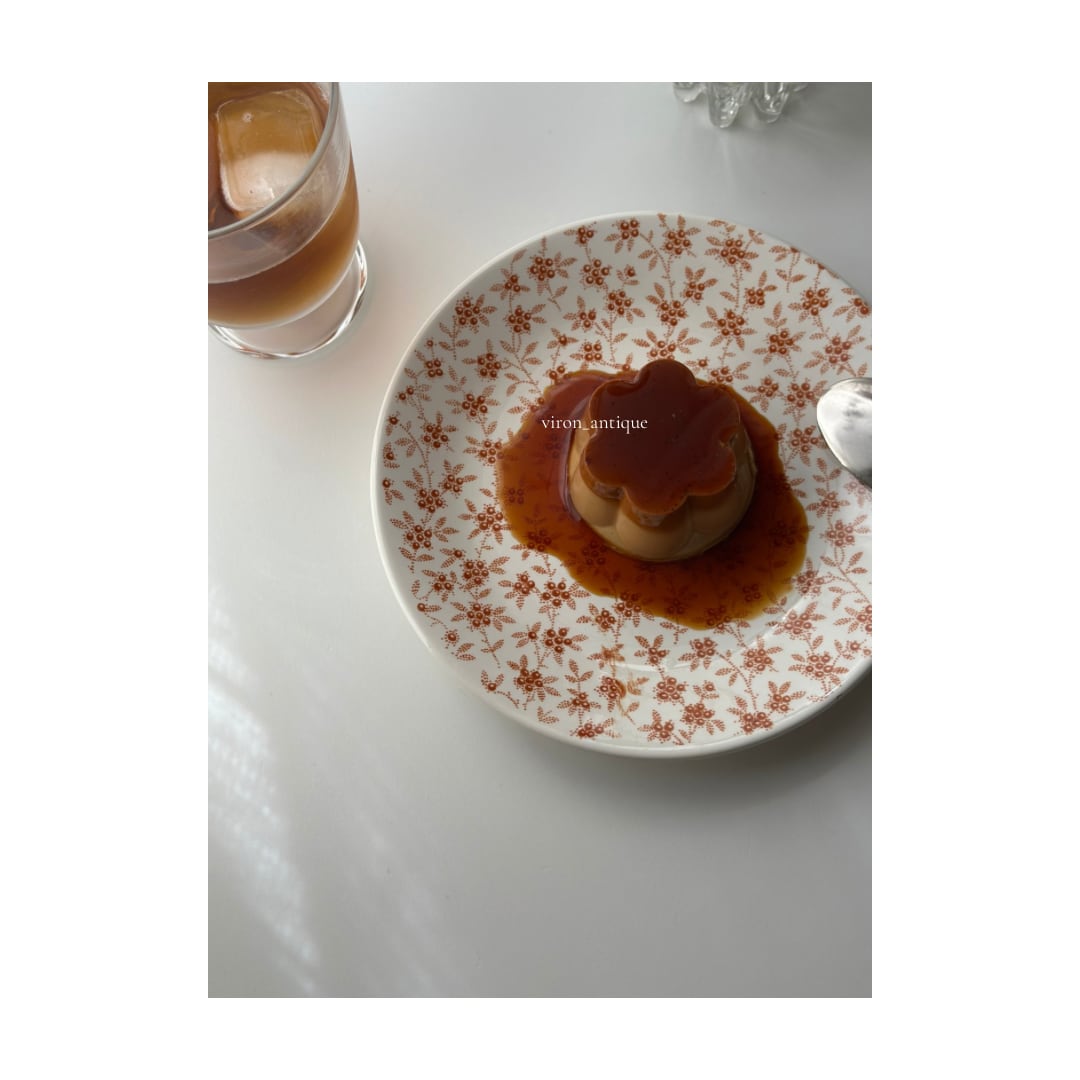 Sarreguemines サルグミンヌ / orangebrown チンツ柄のデザートプレート a