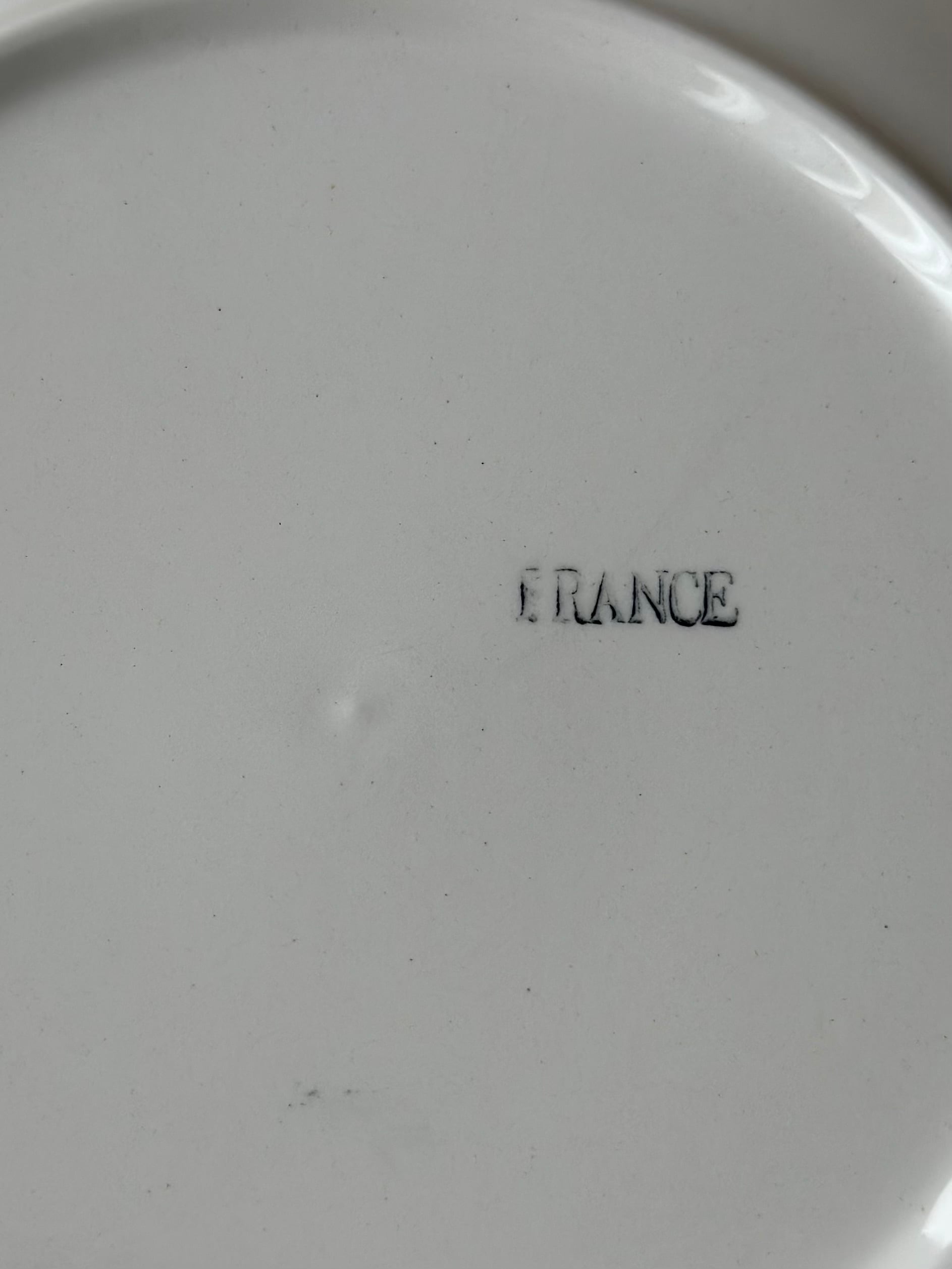 フランス サルグミンヌ窯によるチンツ柄のデザート皿です。