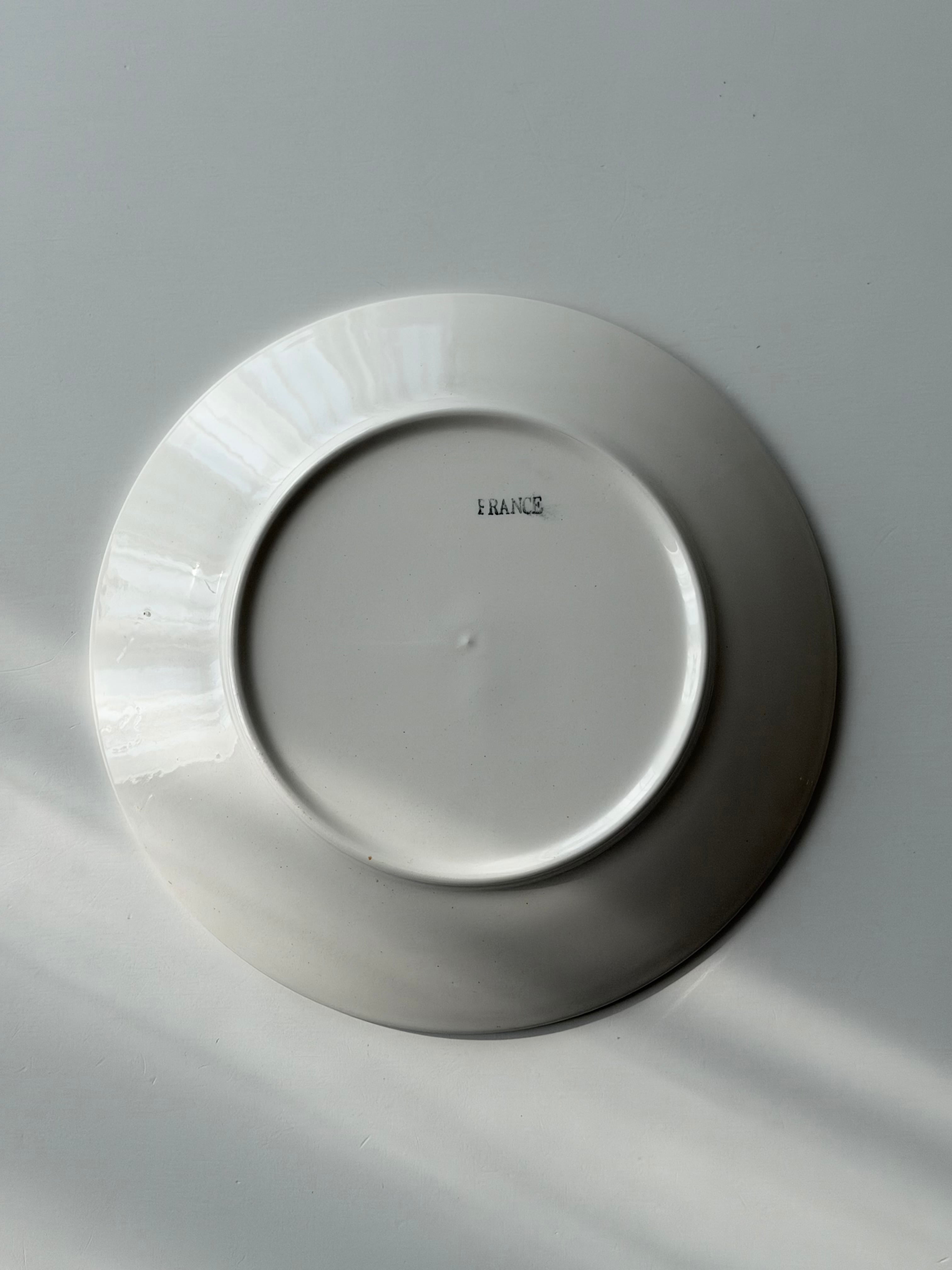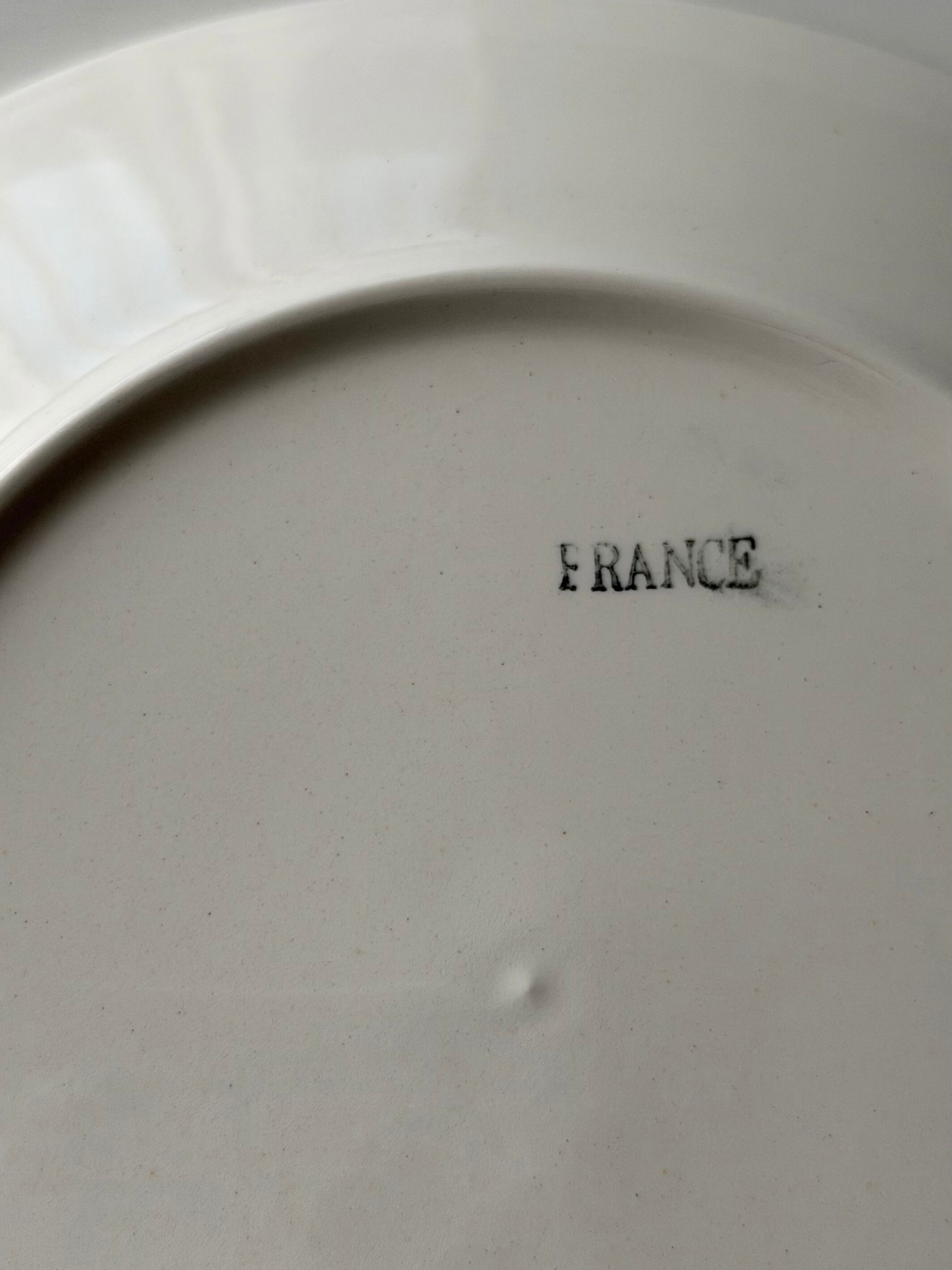 フランス サルグミンヌ窯によるチンツ柄のデザート皿です。