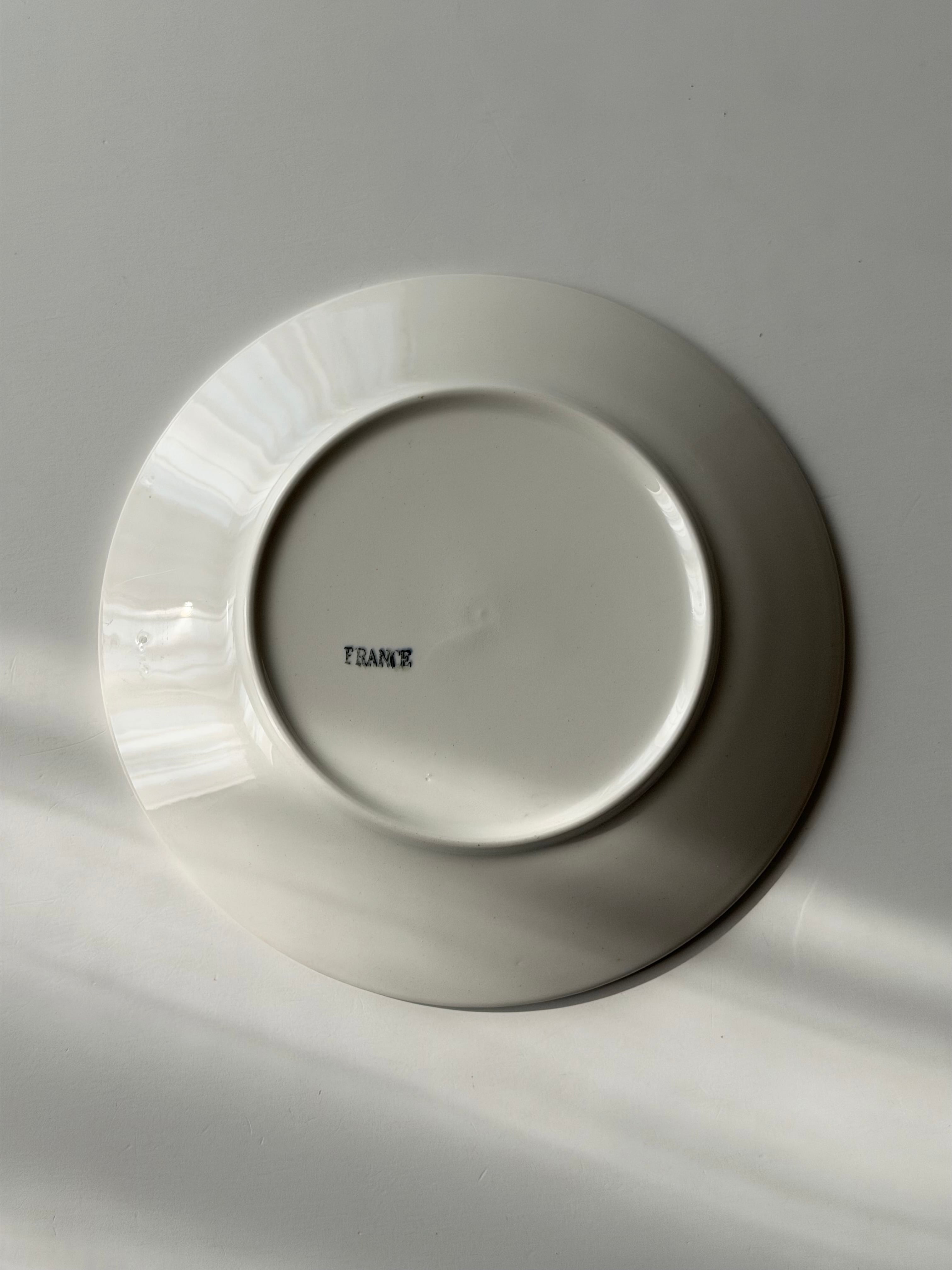 フランス サルグミンヌ窯によるチンツ柄のデザート皿です。