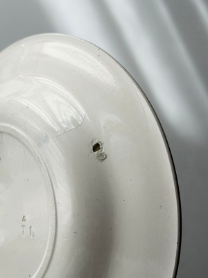 condition: 表面縁に1点チップあり。全体的に艶やかな美品です。裏面リムに製造時に生じた陥没穴あり。