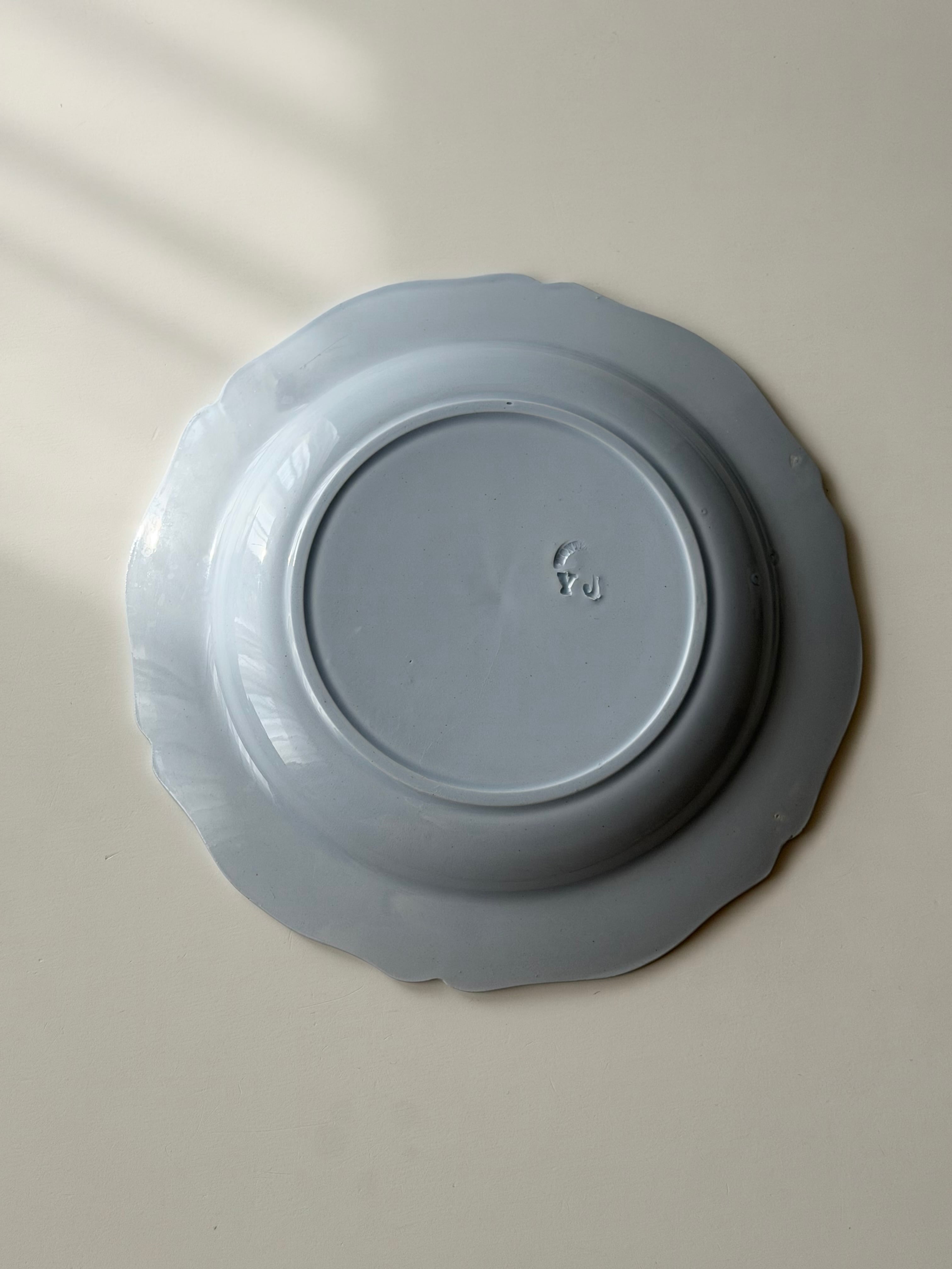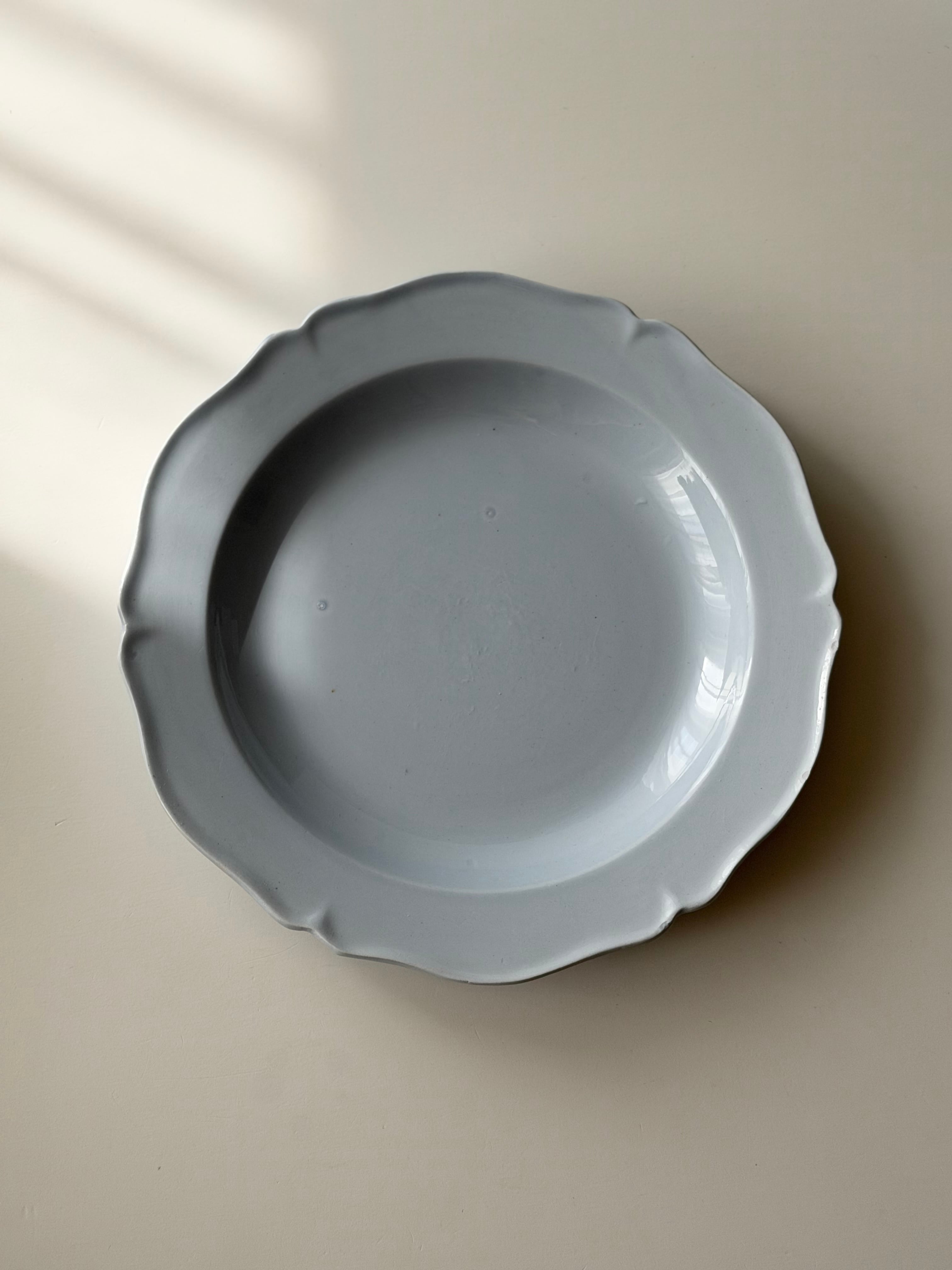 Creil et Montereau クレイユモントロー / ペールブルーの花リムプレート φ24cm (c)